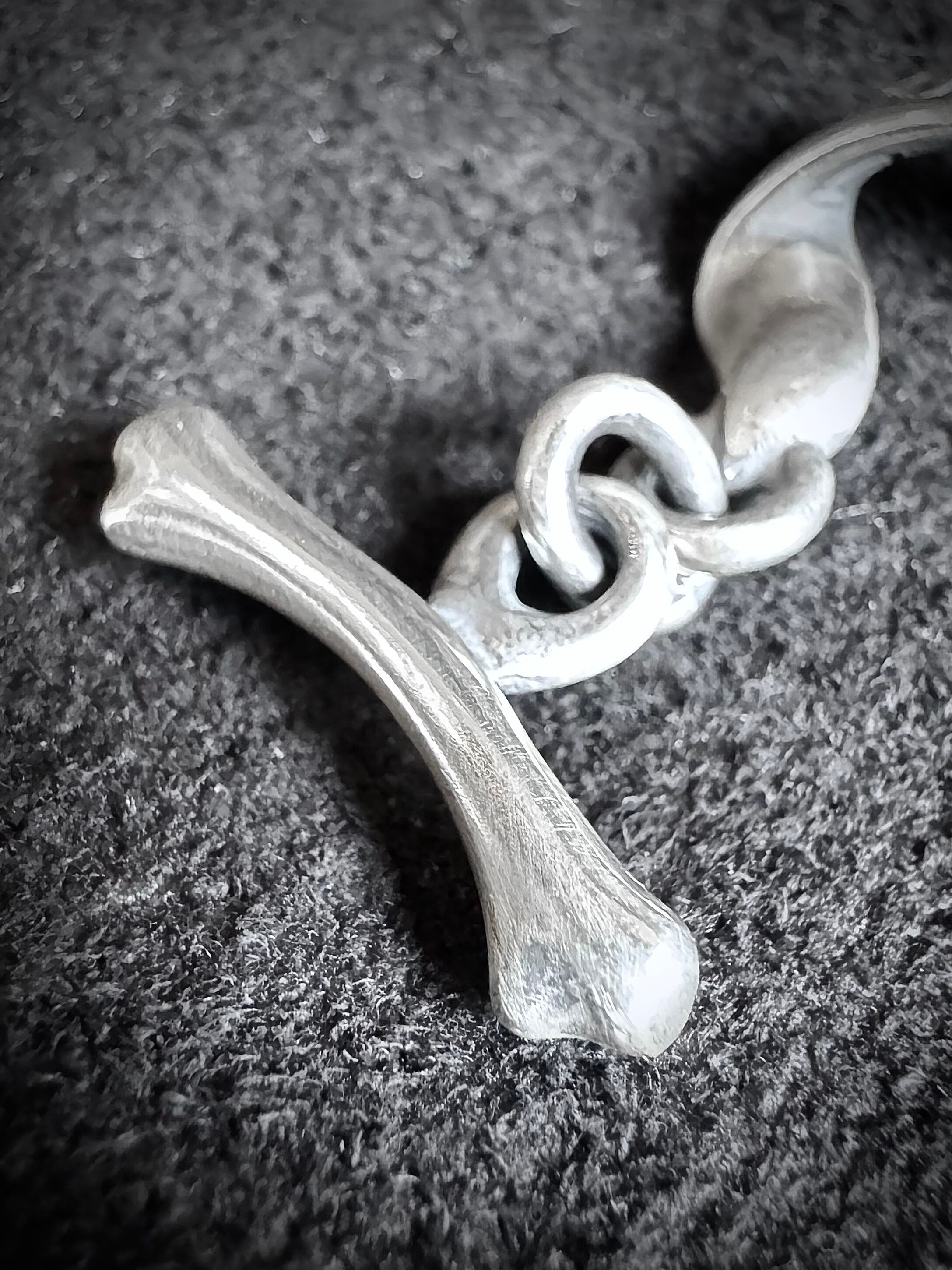 リボンが風にひらめく様を表現したパーツを連結させた細身のブレスレット。