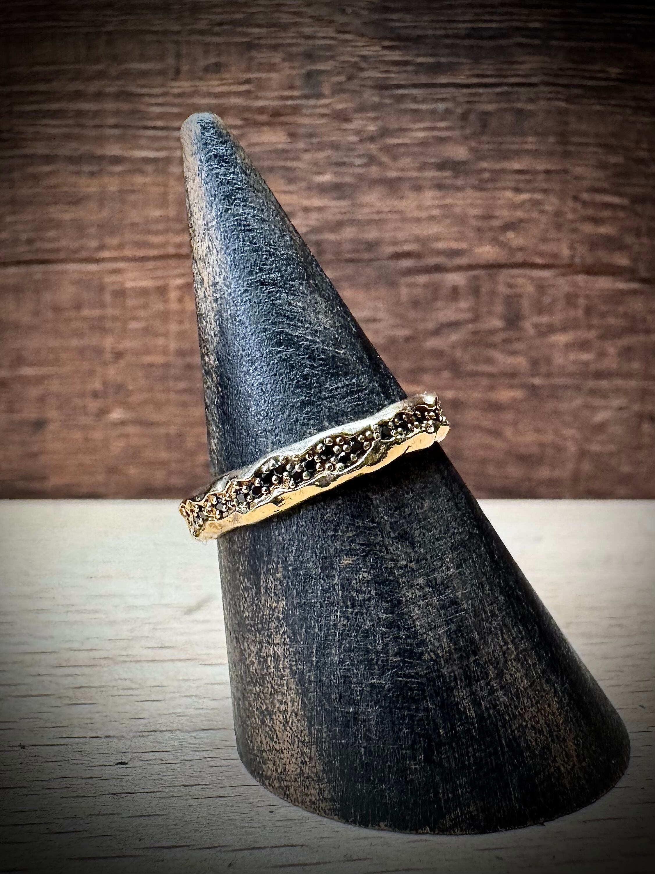 地表から神秘的に芽生える宝石の粒にイメージされたリングは、ゴールドとブラックストーンの