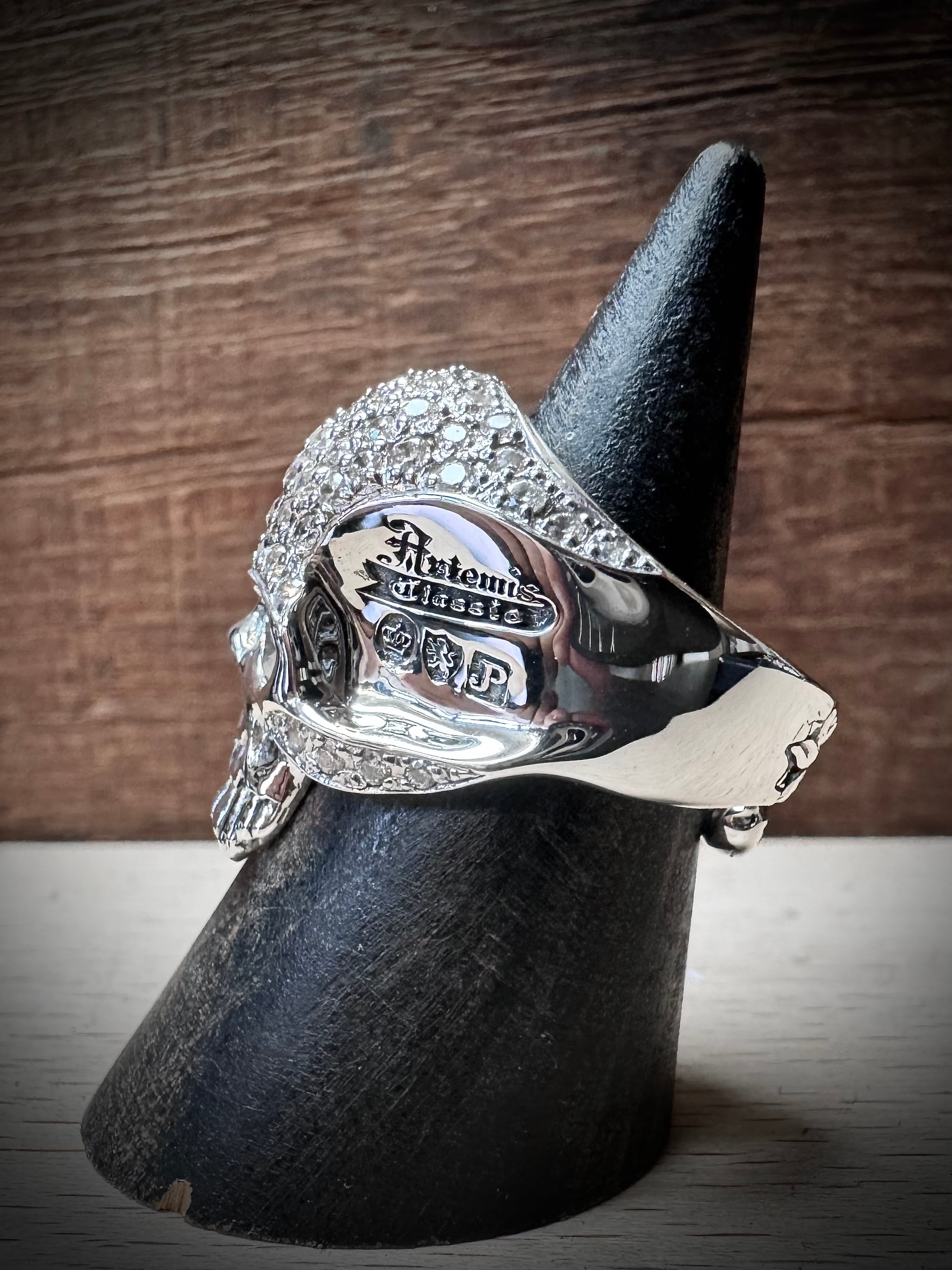 両目に大粒Cz、額にも細かいCzクリアを敷き詰めたパヴェ仕様の豪華なリング。
