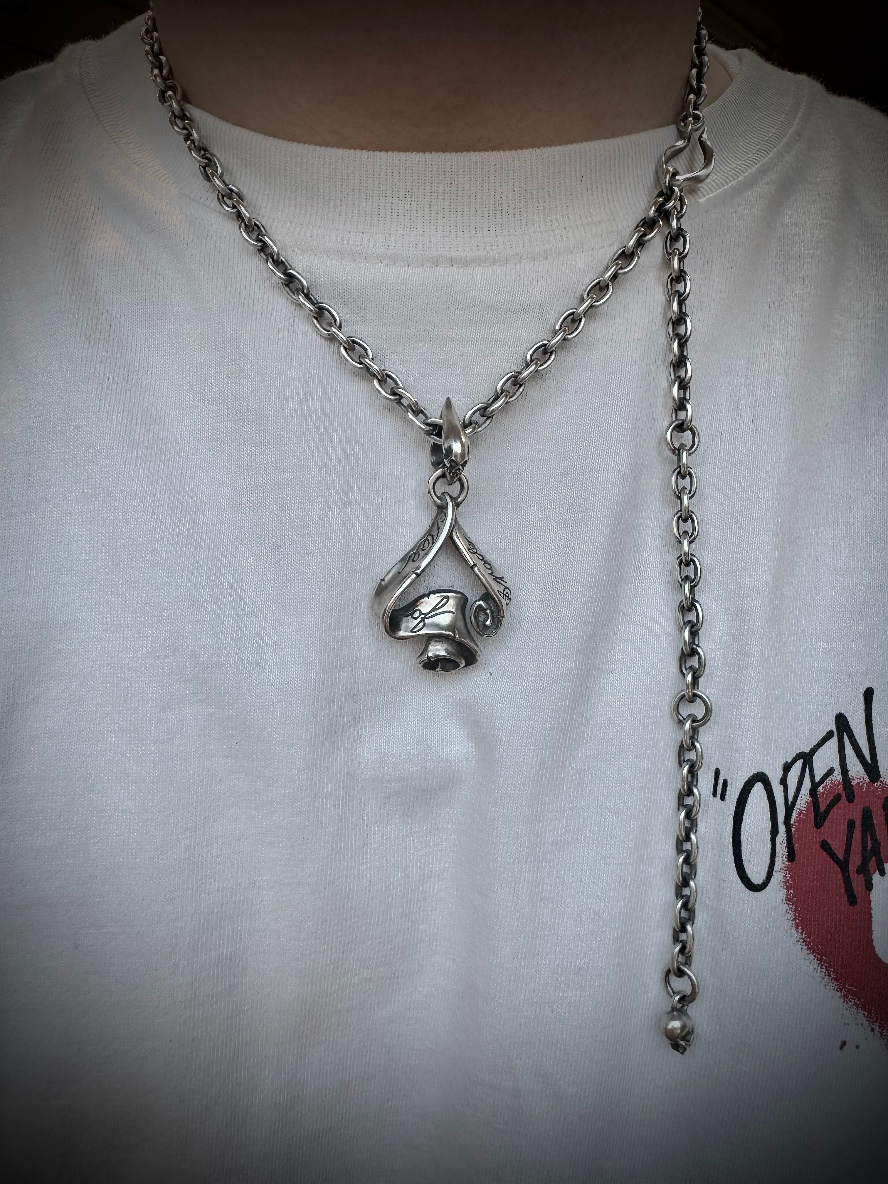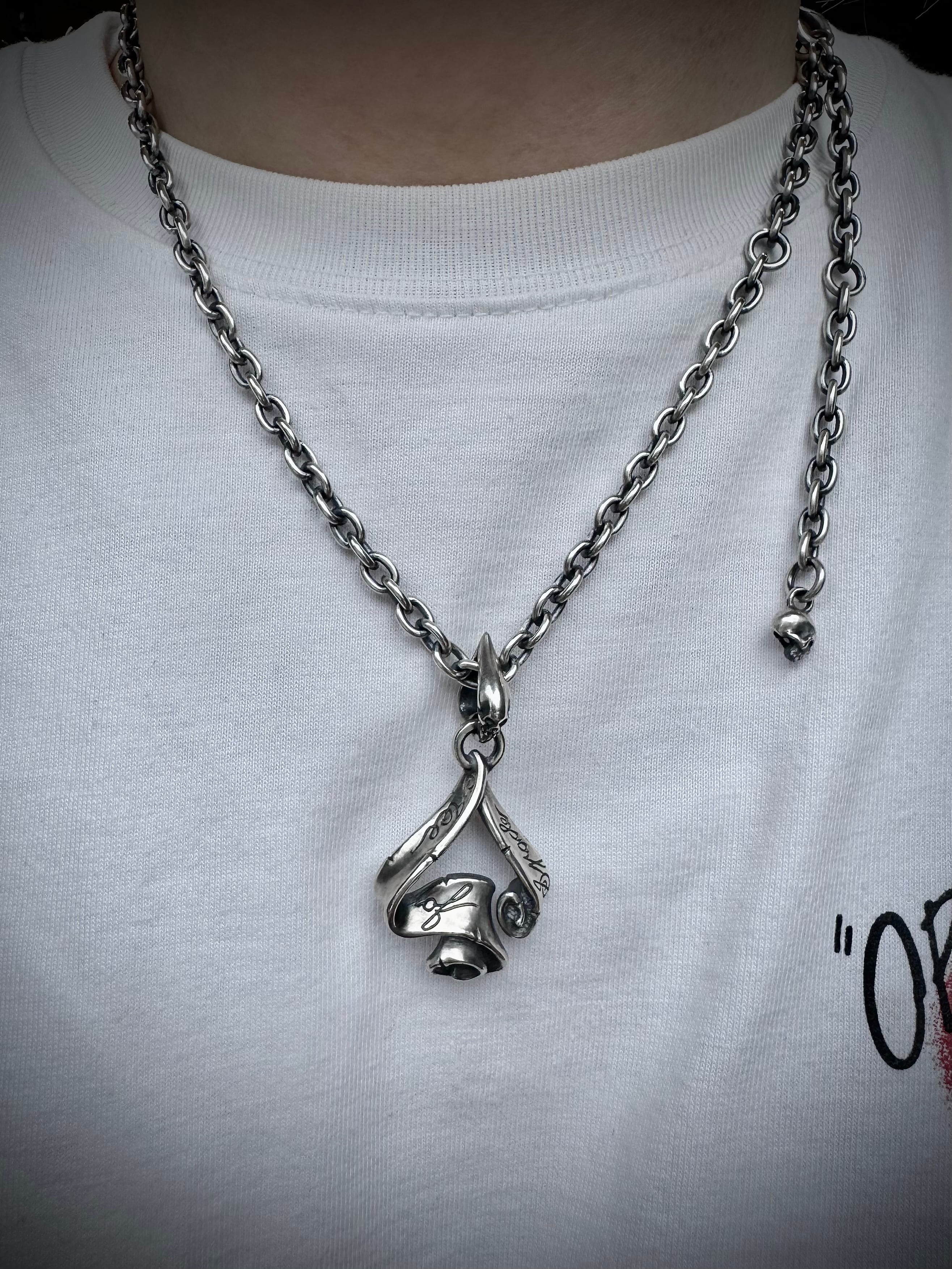エンドパーツにスカルとフレアモチーフを用いたネックレスチェーン。