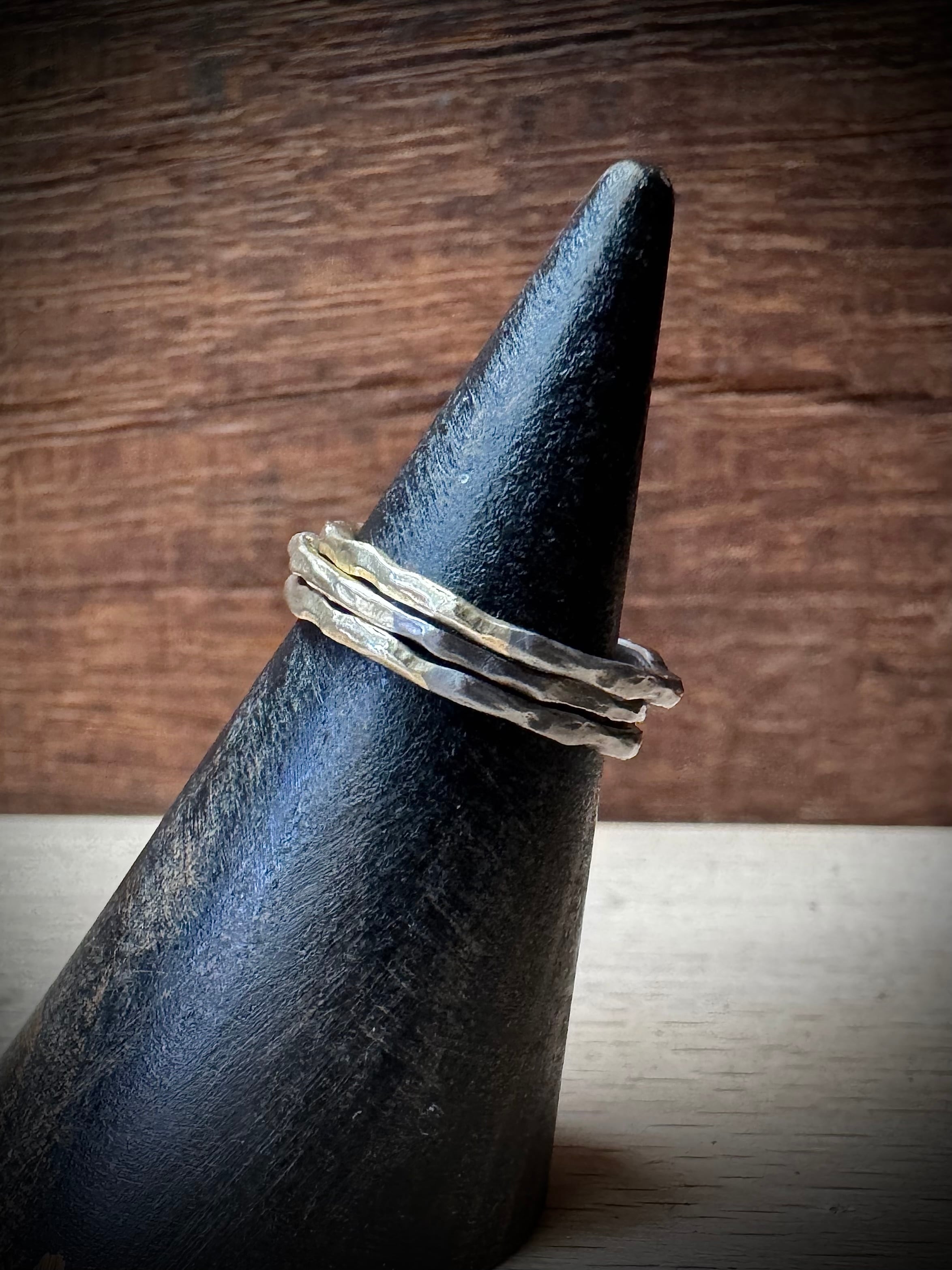 テクスチャーとフォルムの違いにこだわった3連リング。