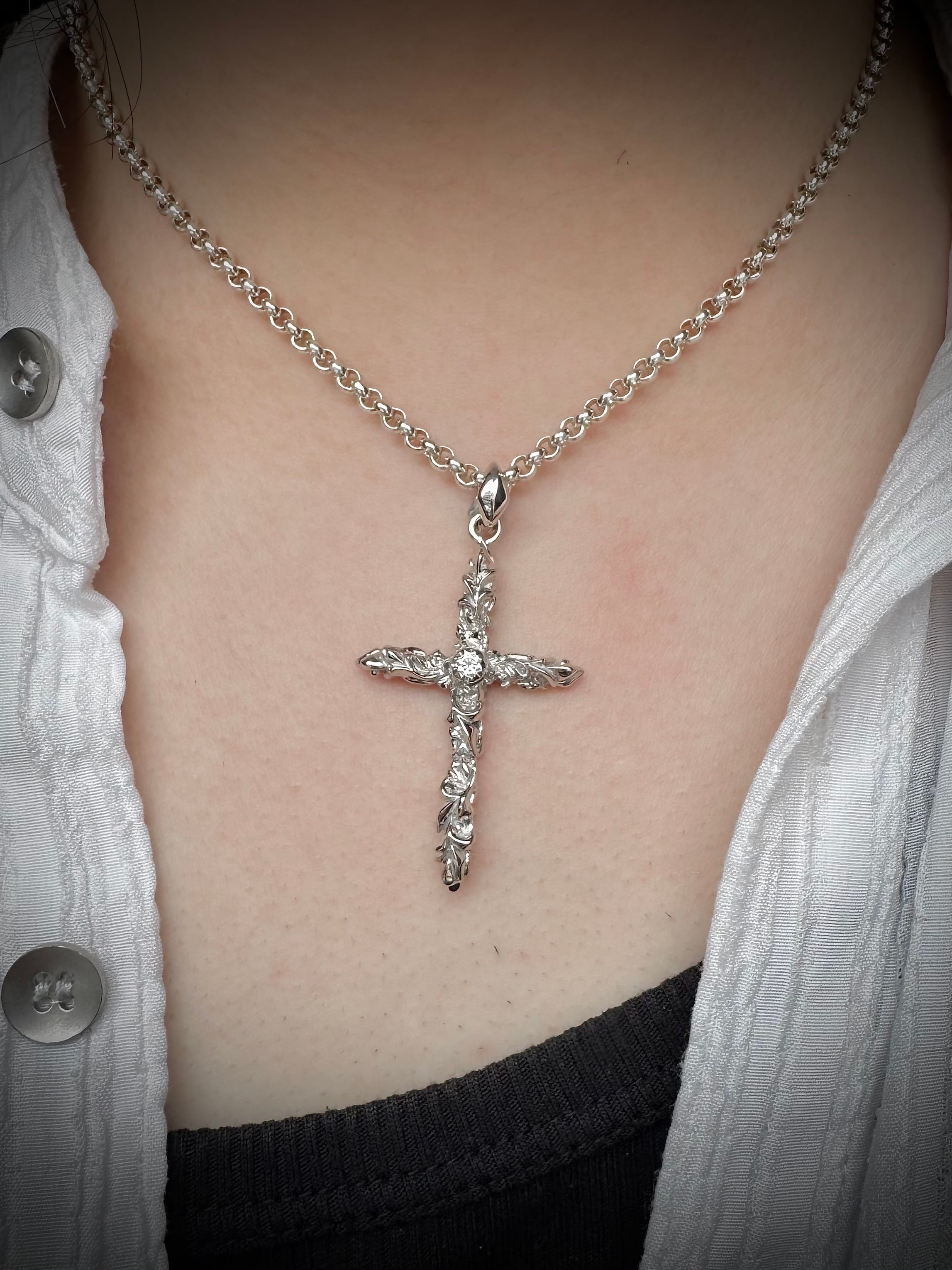 チェーンだけで着用されてもおしゃれに首元を飾ってくれ、トップと合わせるなら大きめのトップや肉厚なトップに合わせていただくのがおすすめです。