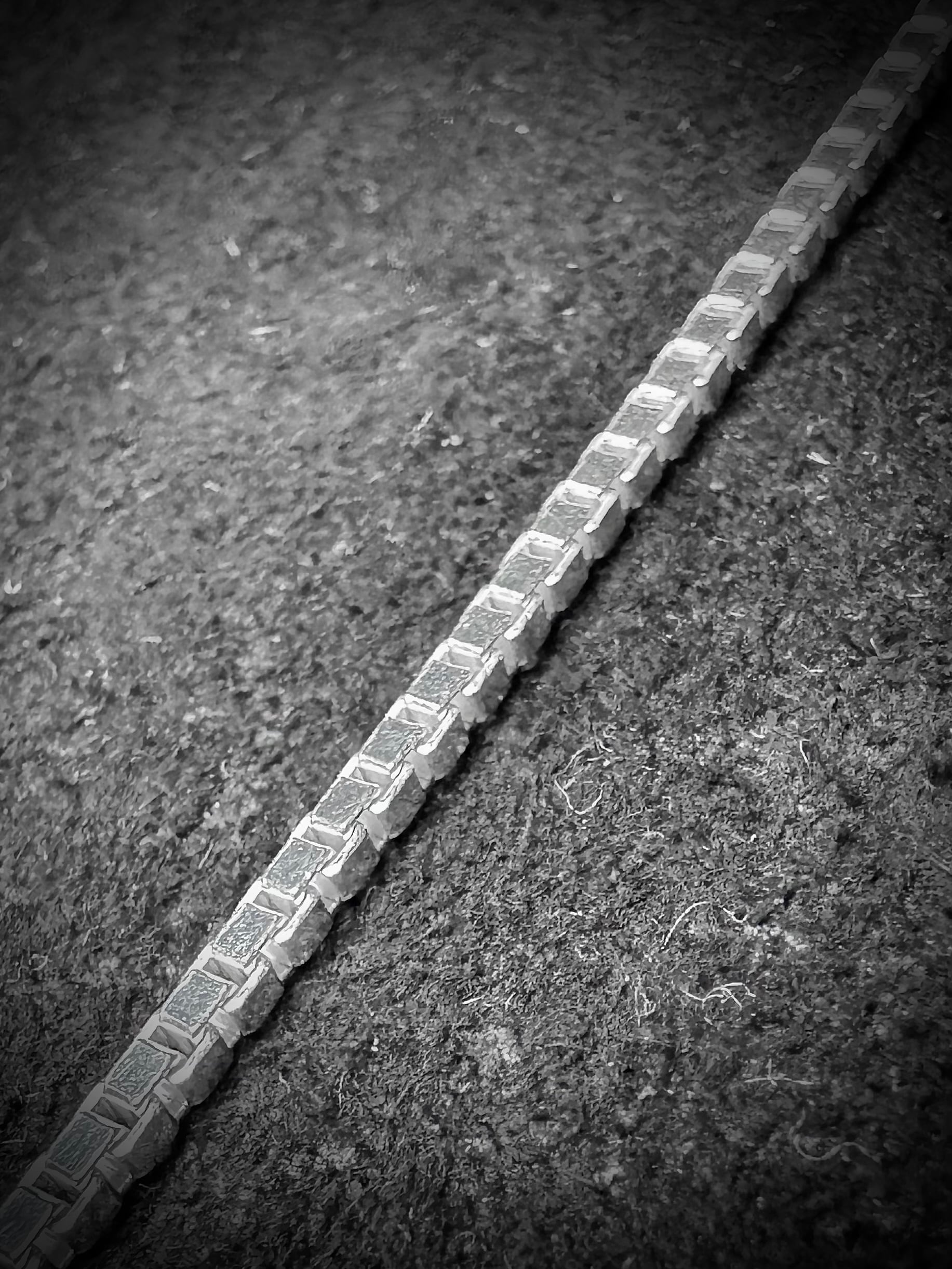 こちらは1.8mm幅なので少し肉厚でシンプルなトップと合わせていただくのがおすすめです。