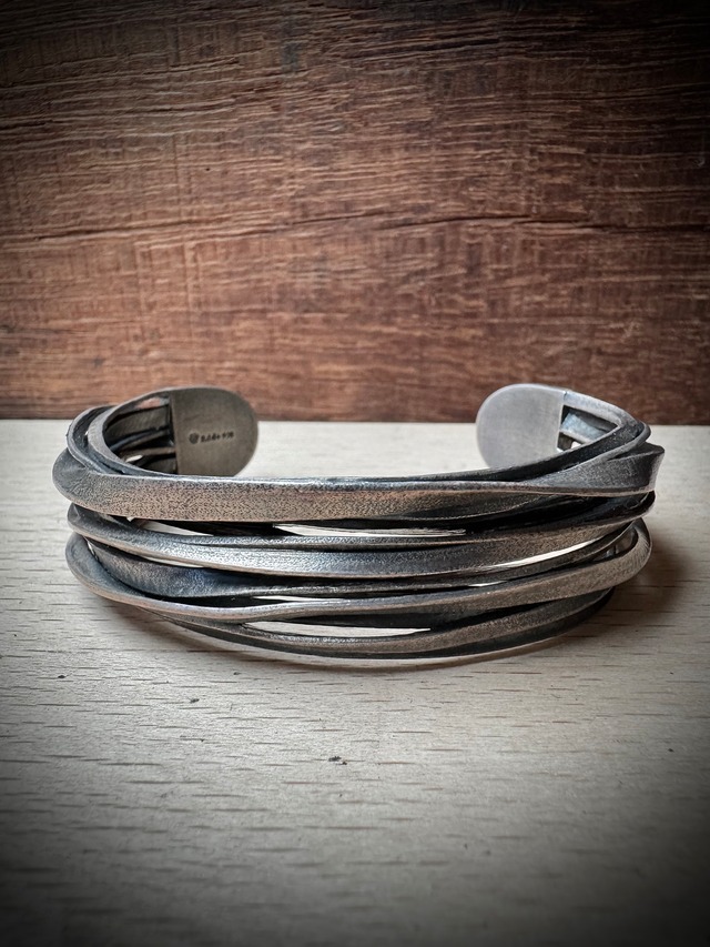 シルバーとゴールドのコントラストが美しいボリュームのあるバングル。