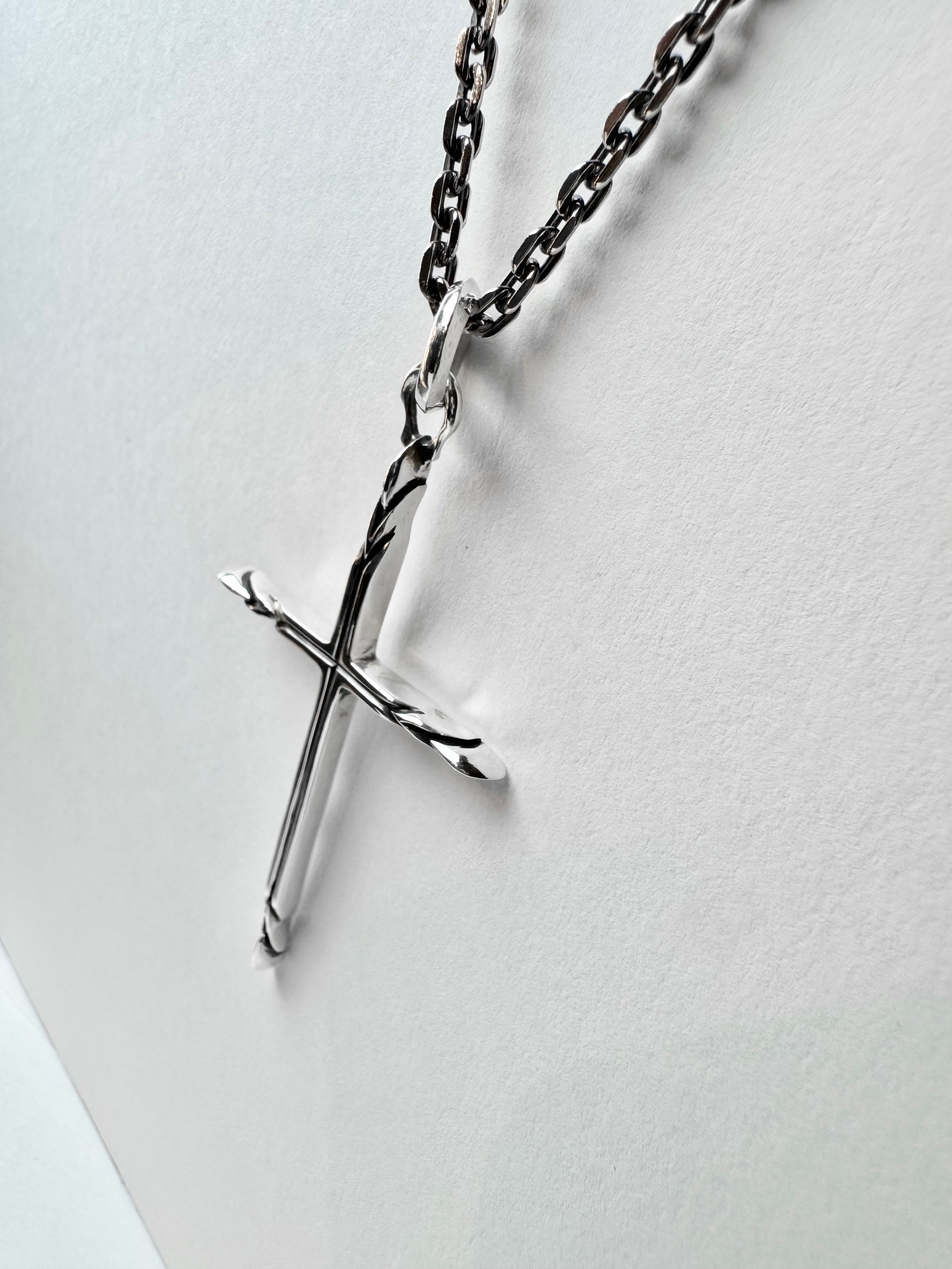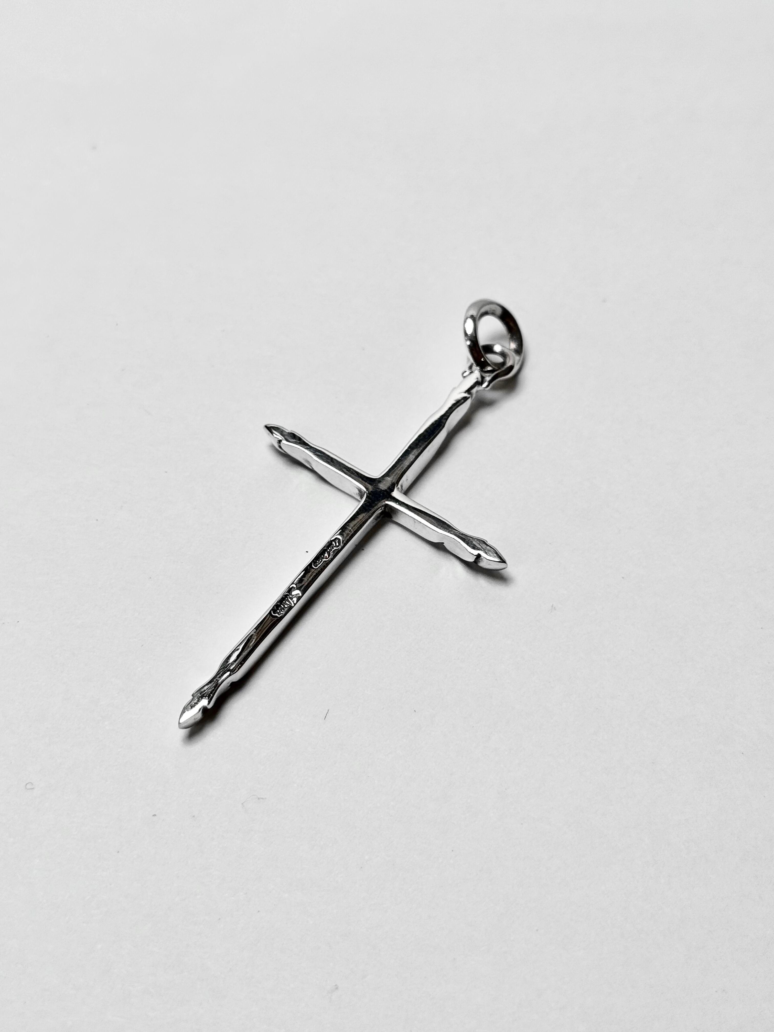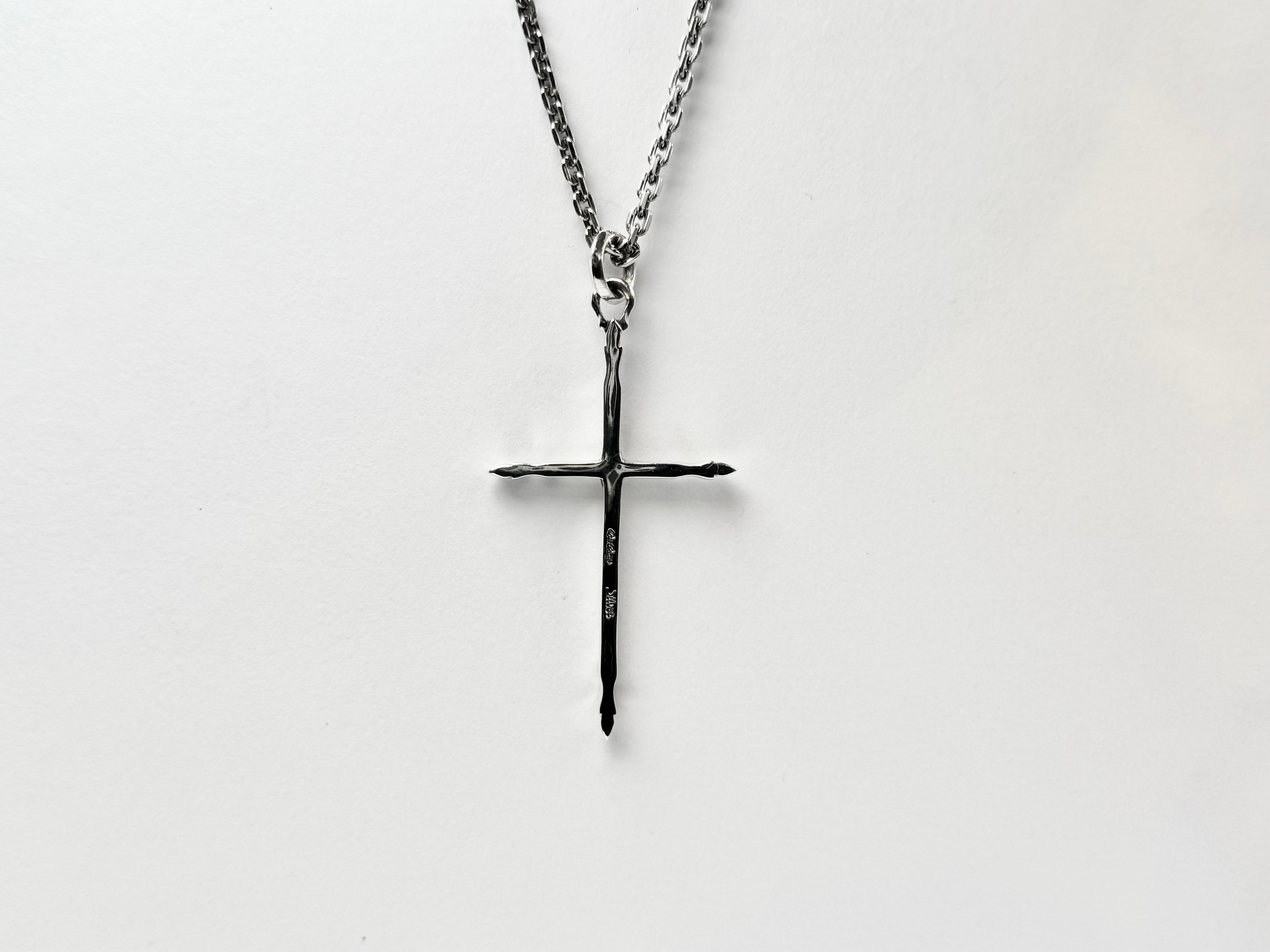 スリムでシンプルながらも肉厚で全長が長いため確かな存在感を放つQue Craveのクロスペンダント。