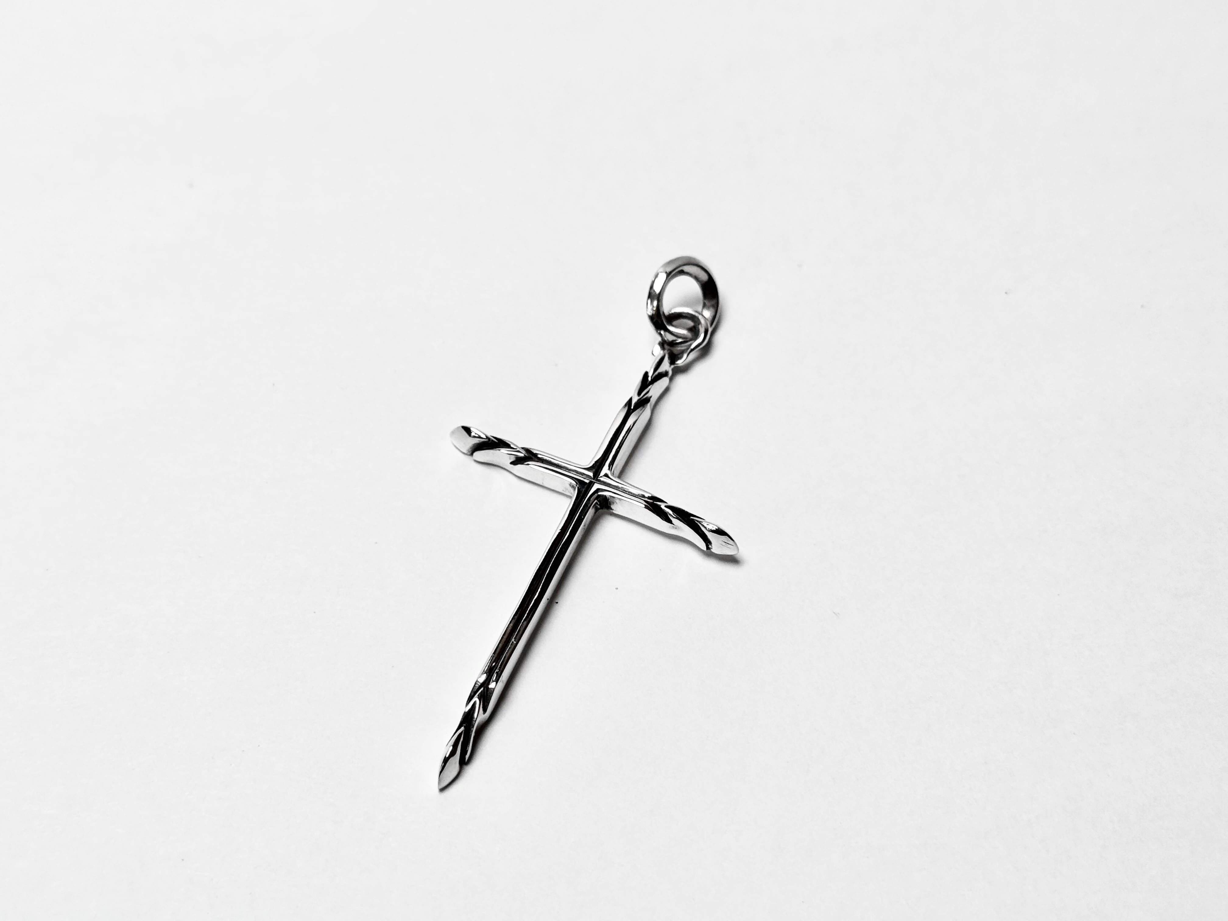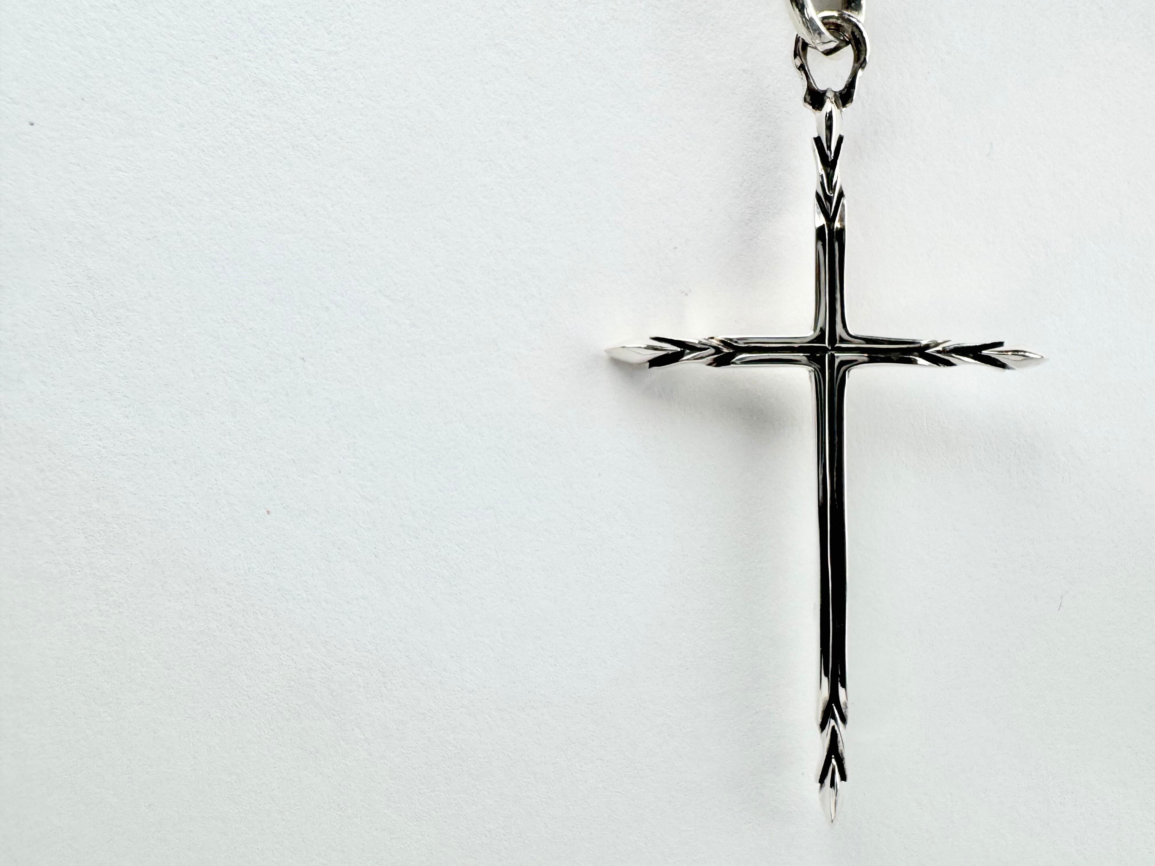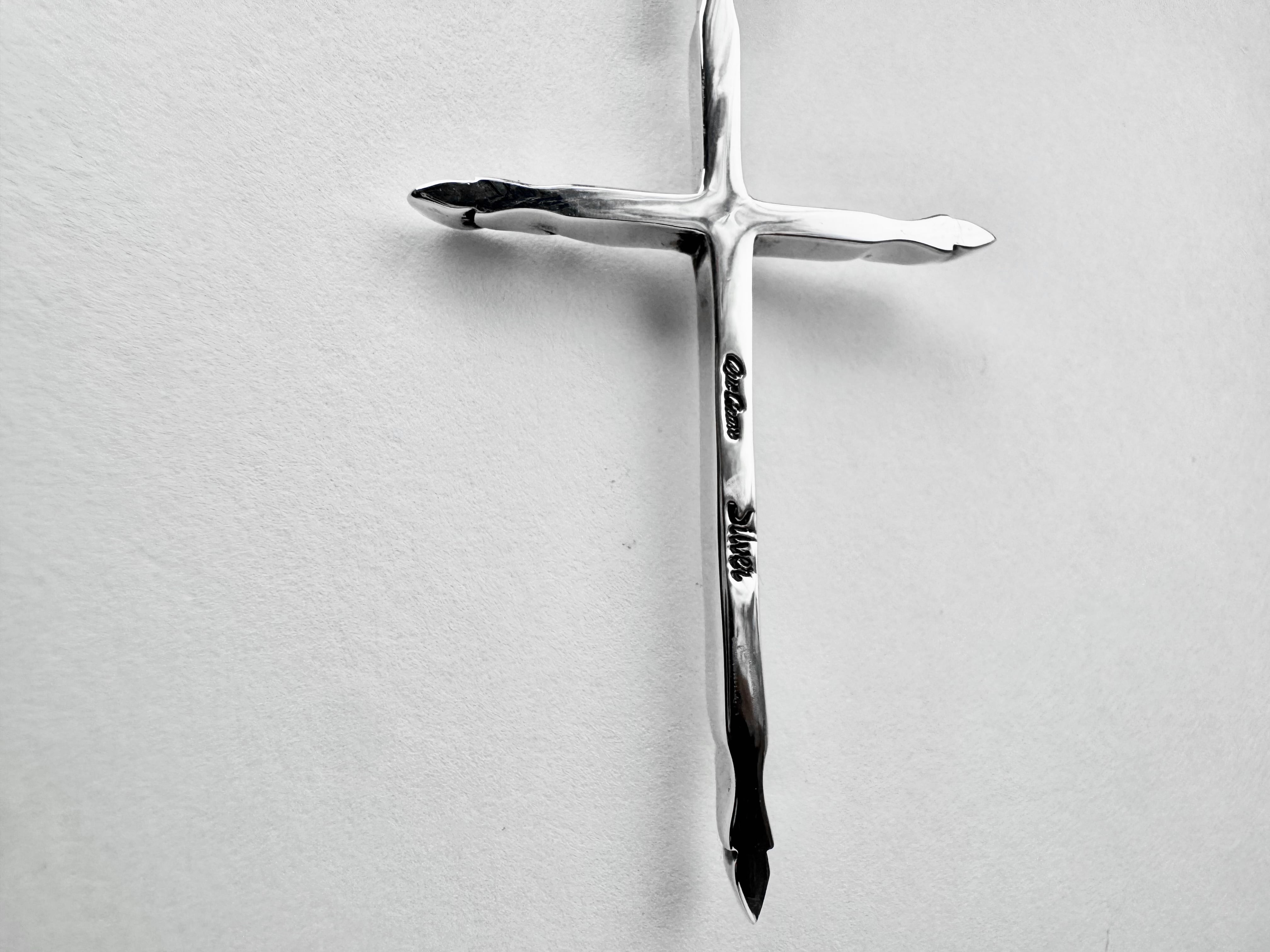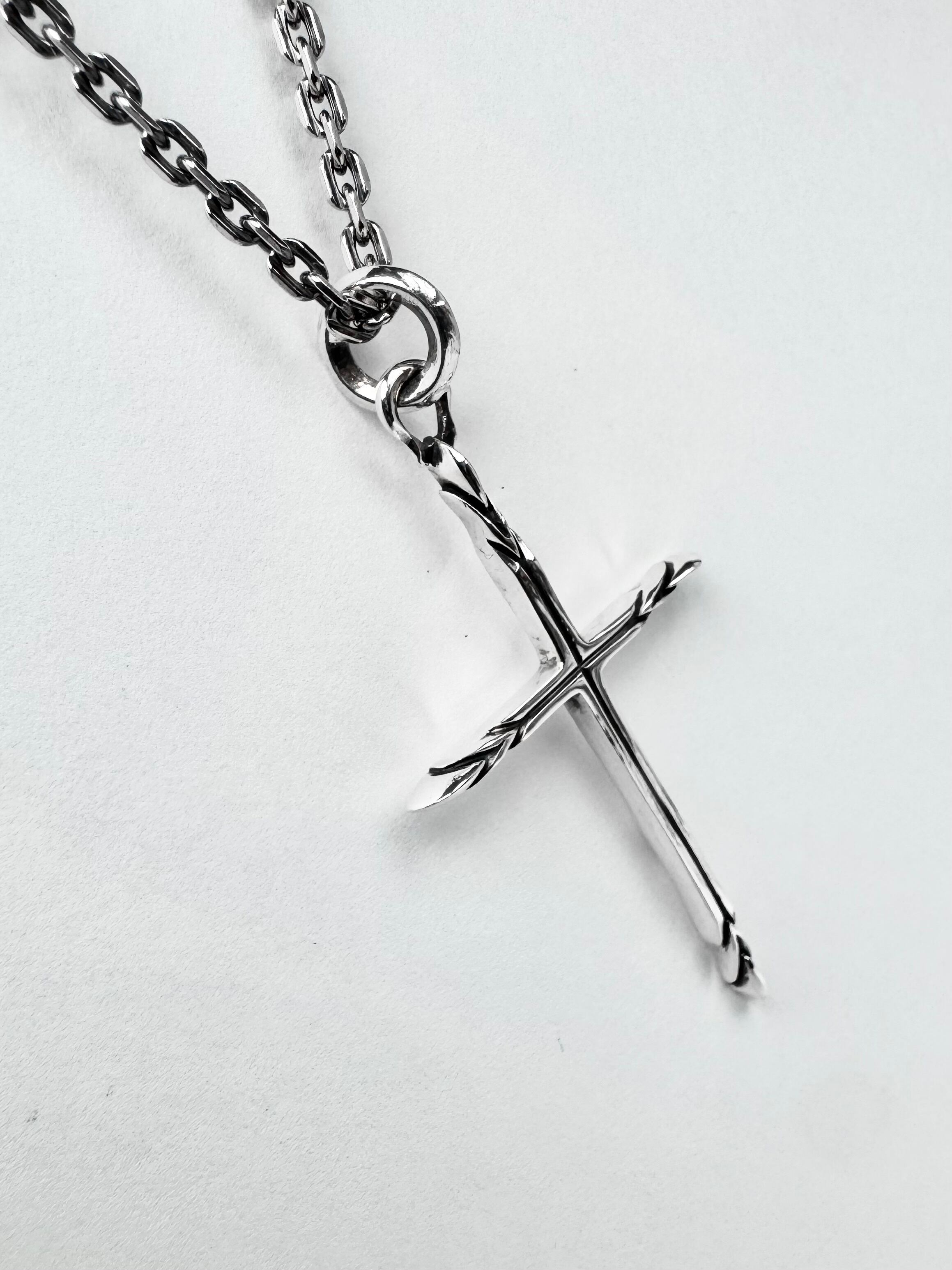 スリムでシンプルながらも肉厚で全長が長いため確かな存在感を放つQue Craveのクロスペンダント。