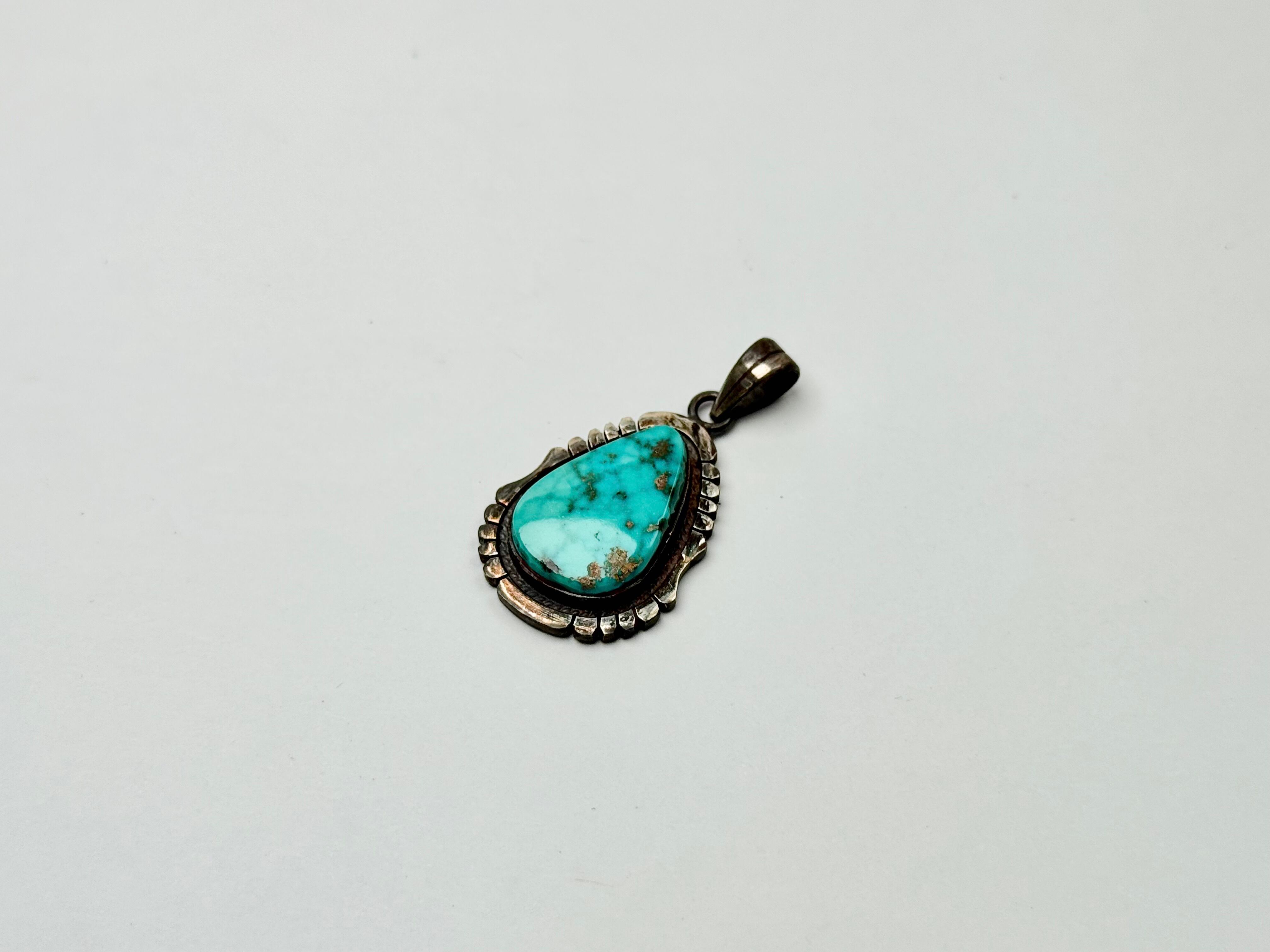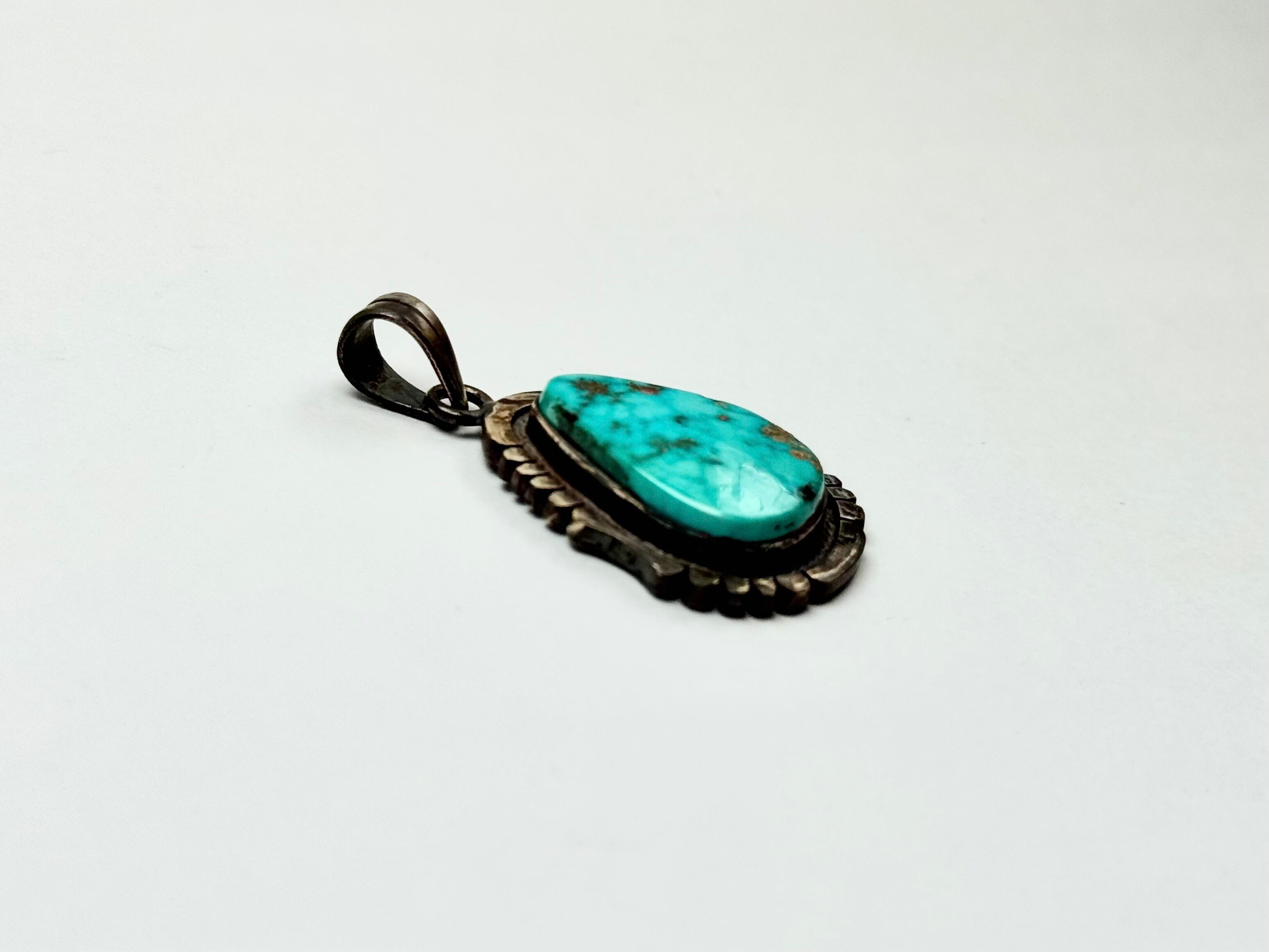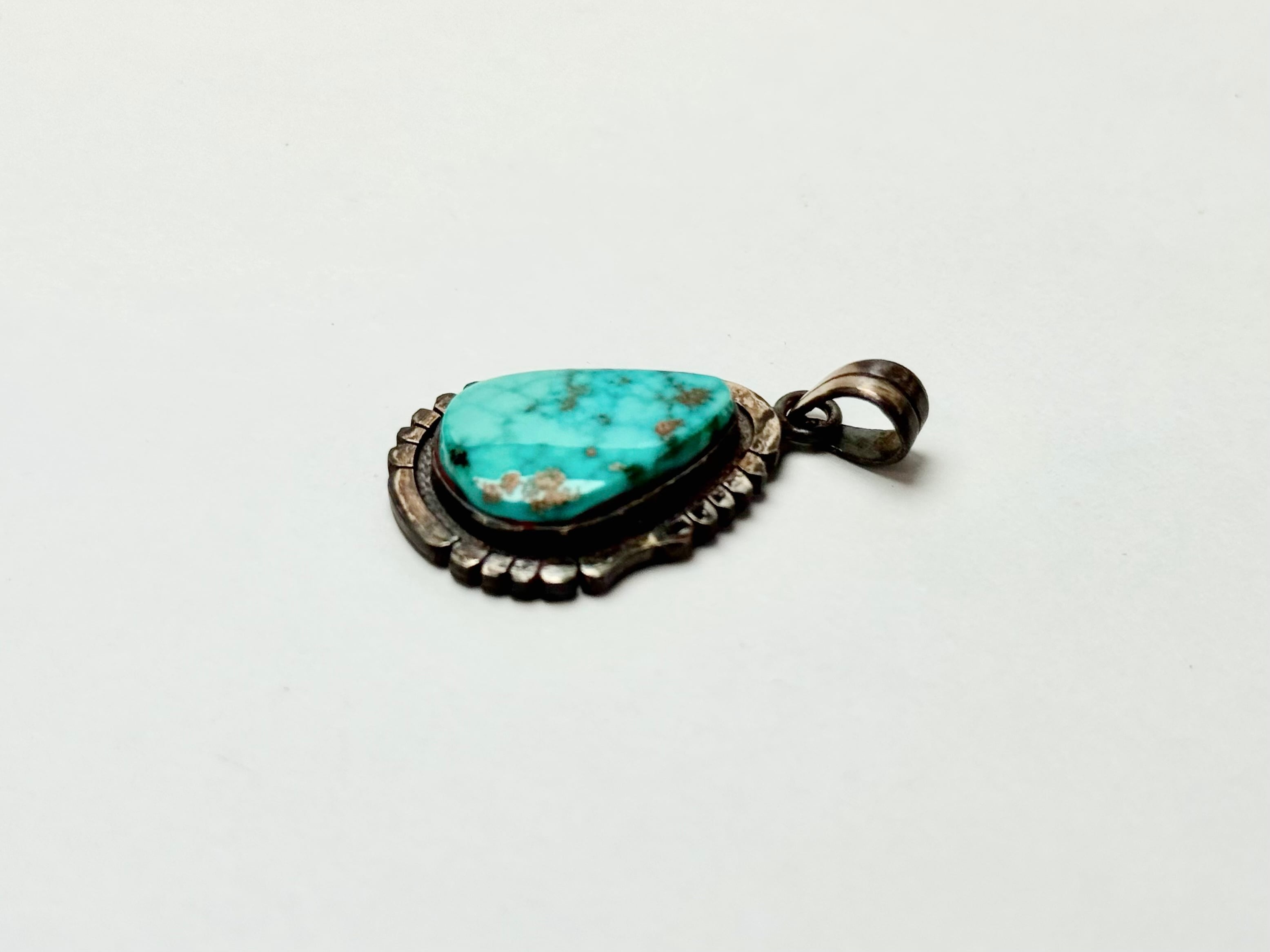当店オーナーが実際に海外に足を運び仕入れてきた存在感のある大きなターコイズが特徴なペンダント。