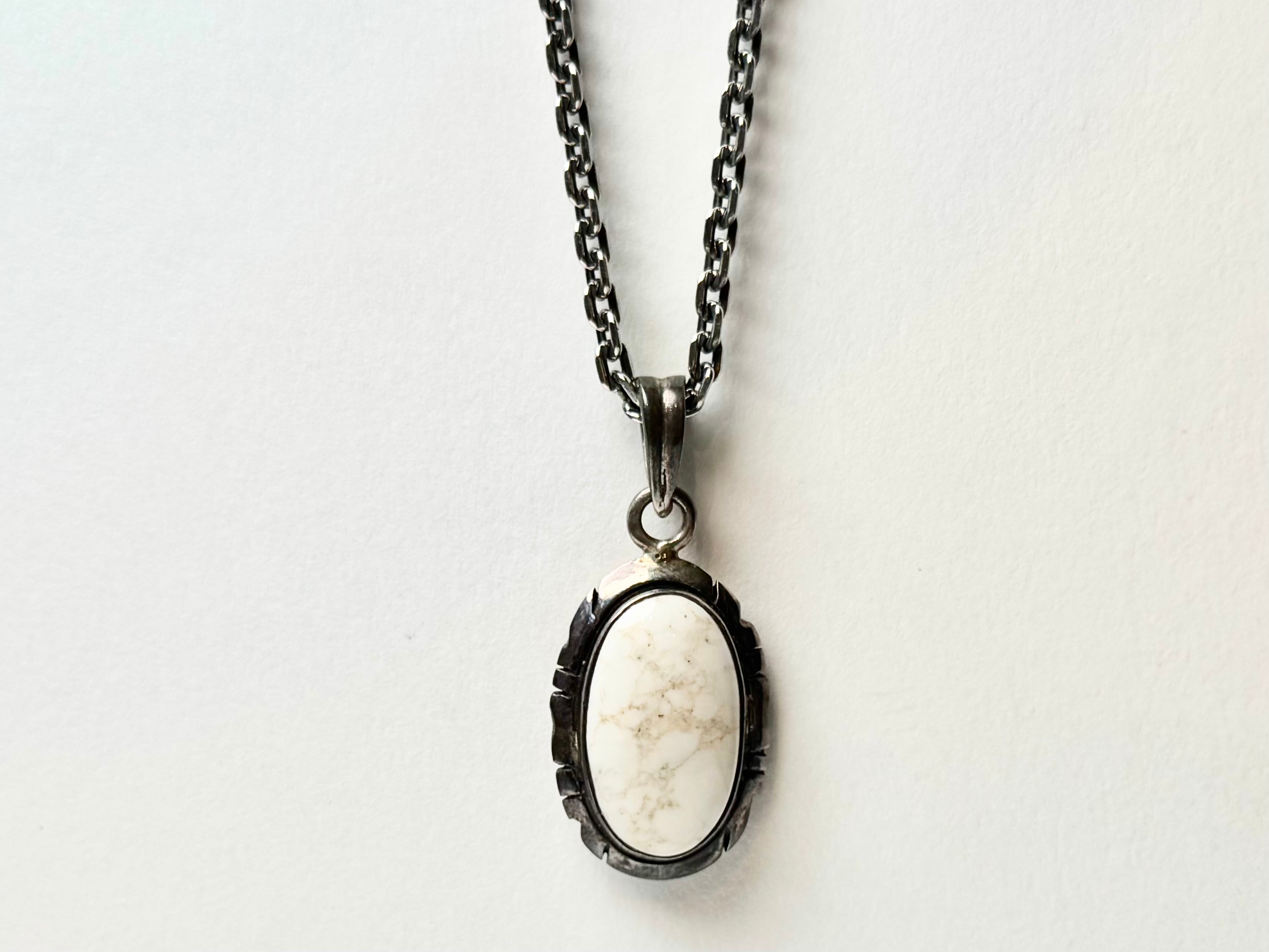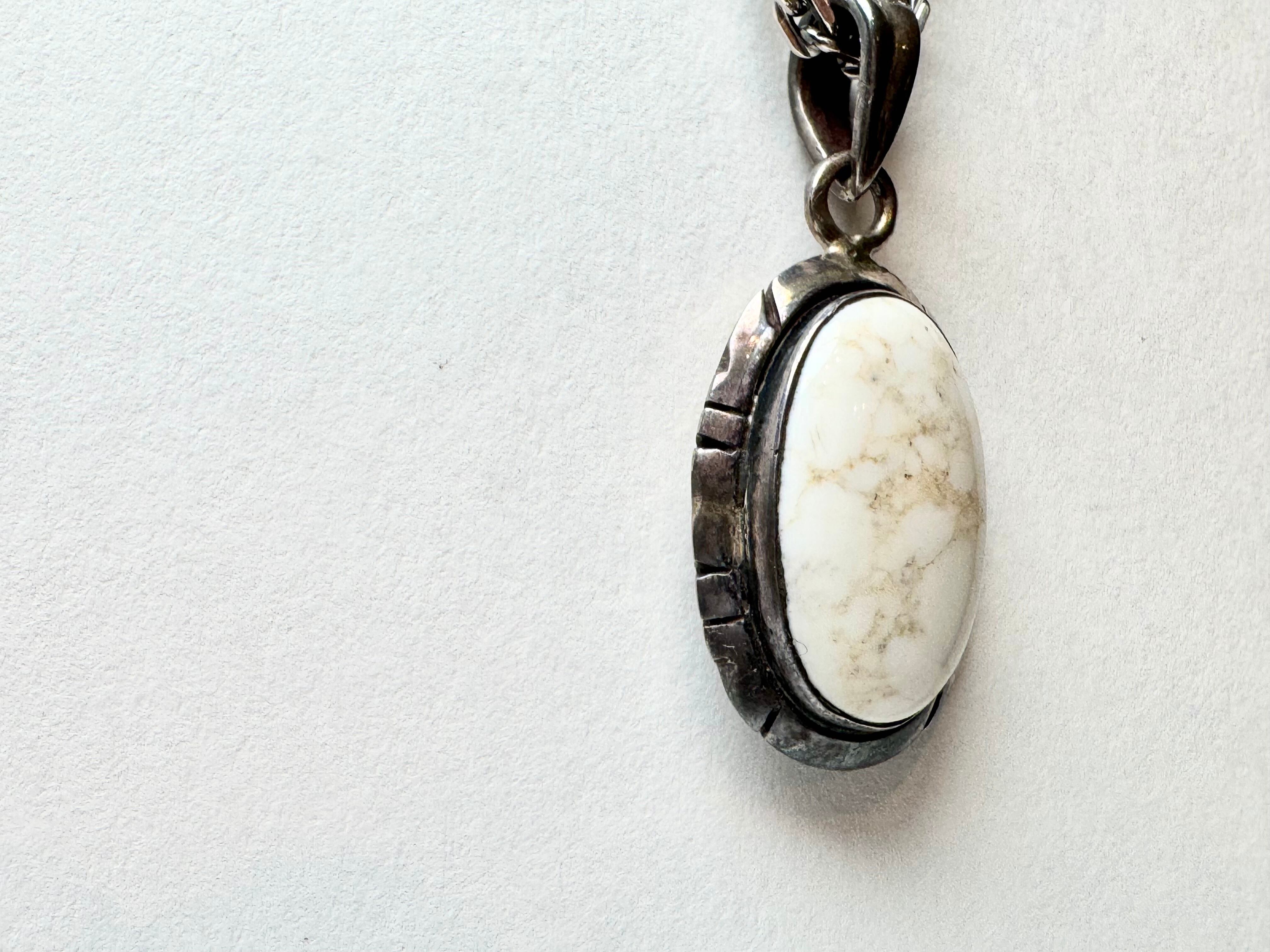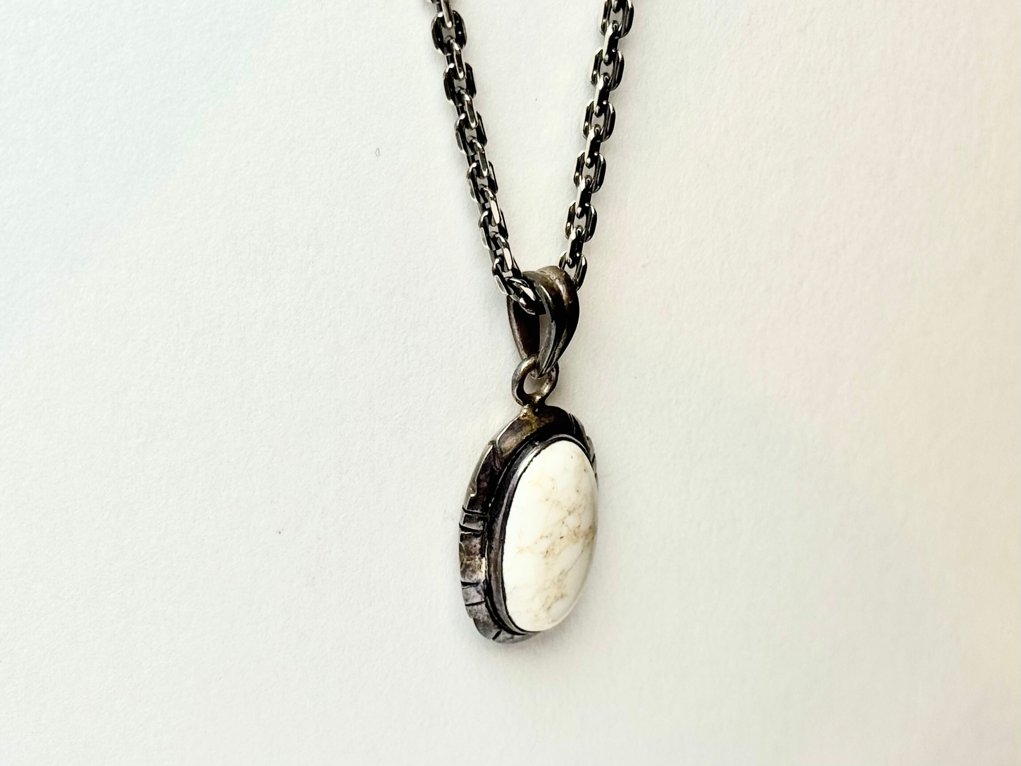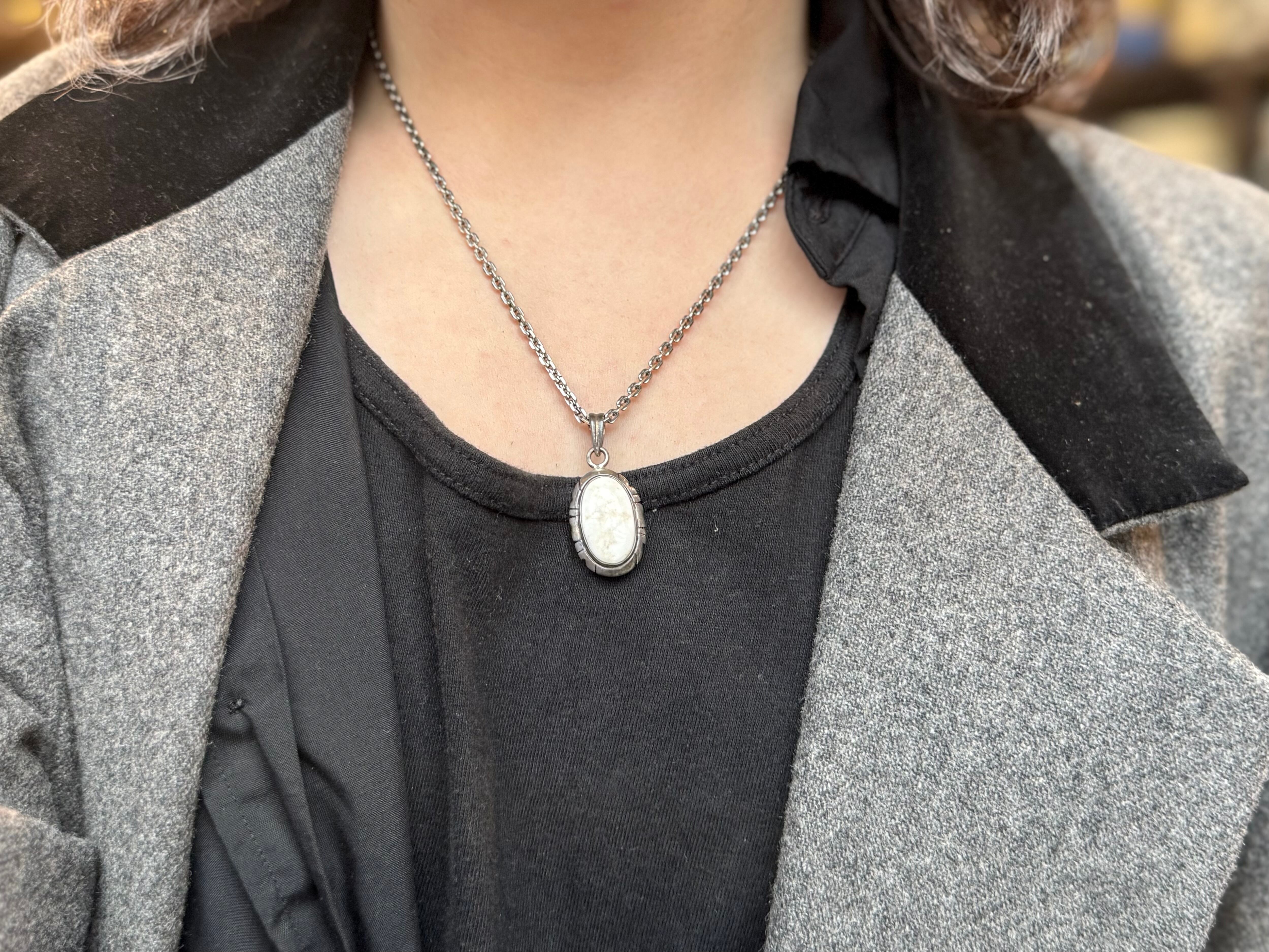 当店オーナーが実際に海外に足を運び仕入れてきた存在感のある大きなホワイトターコイズが特徴なペンダント。