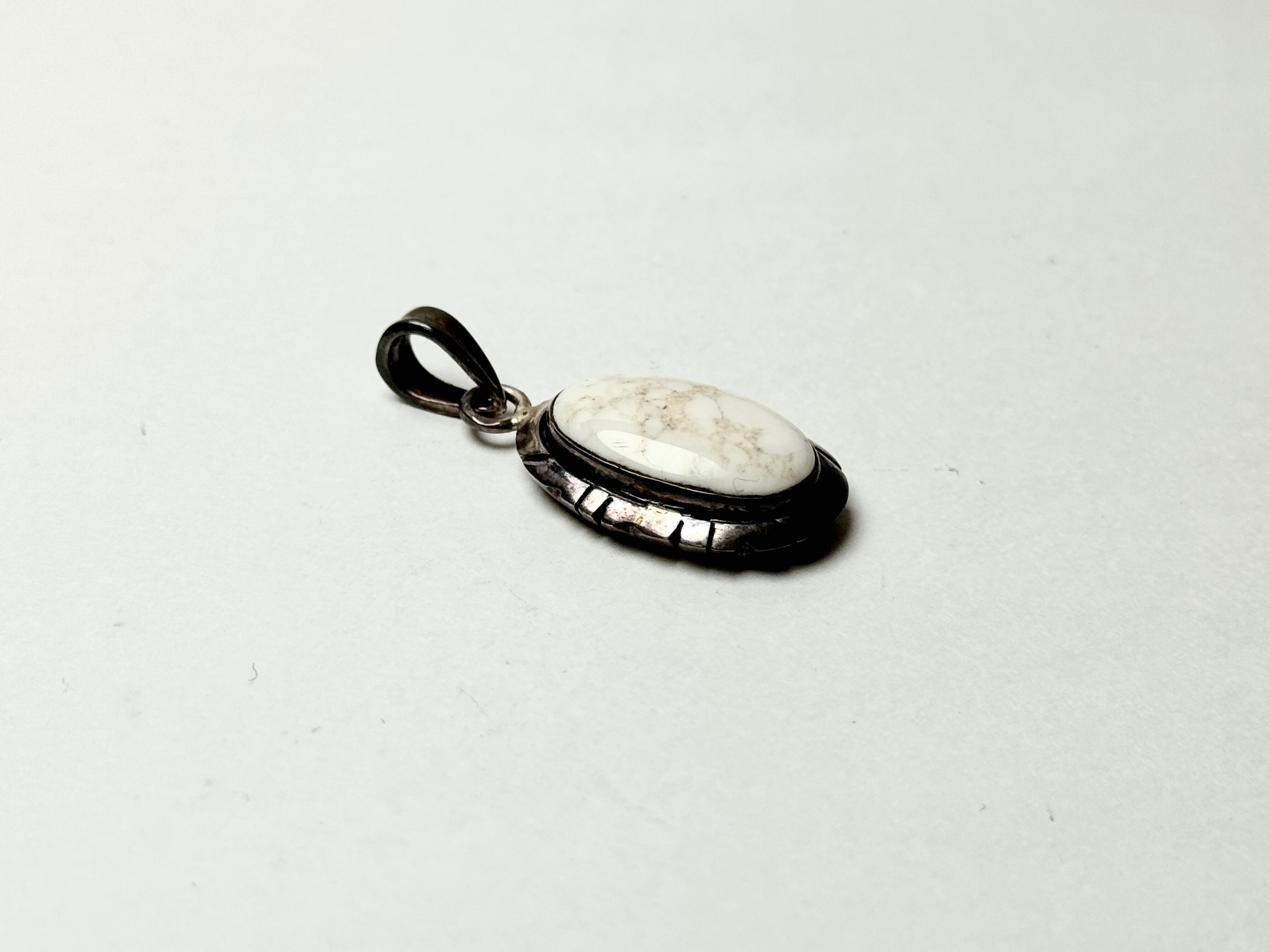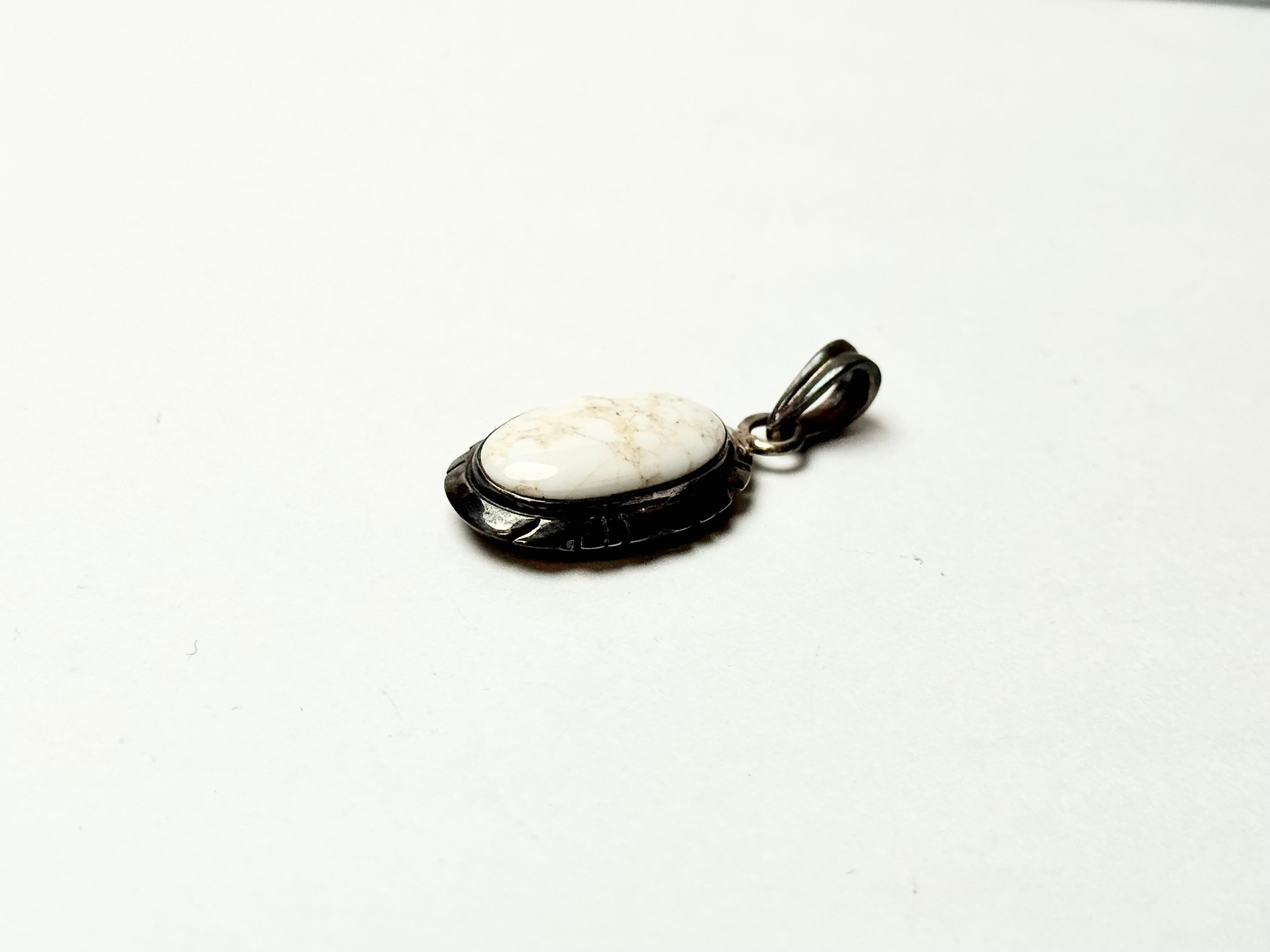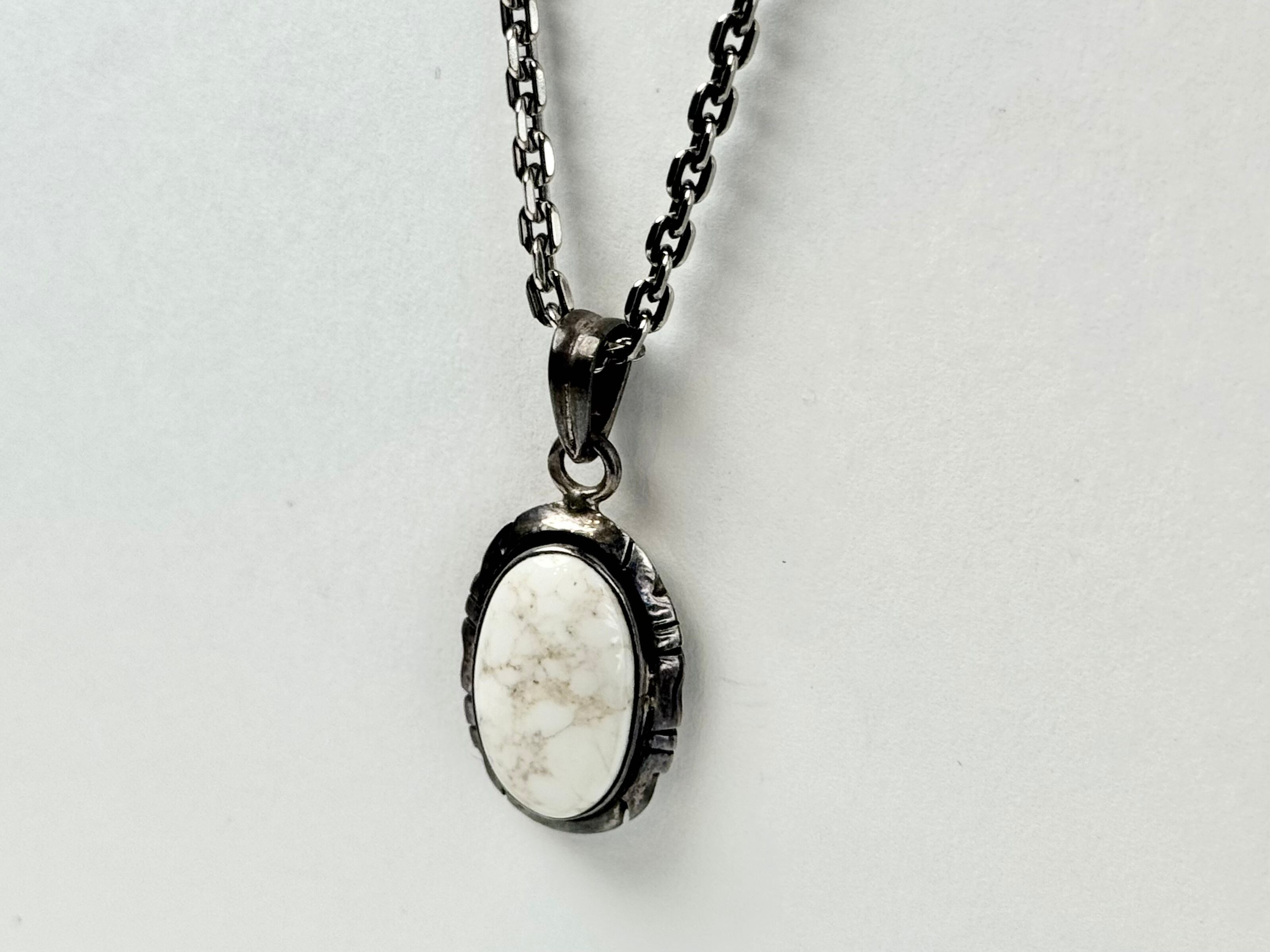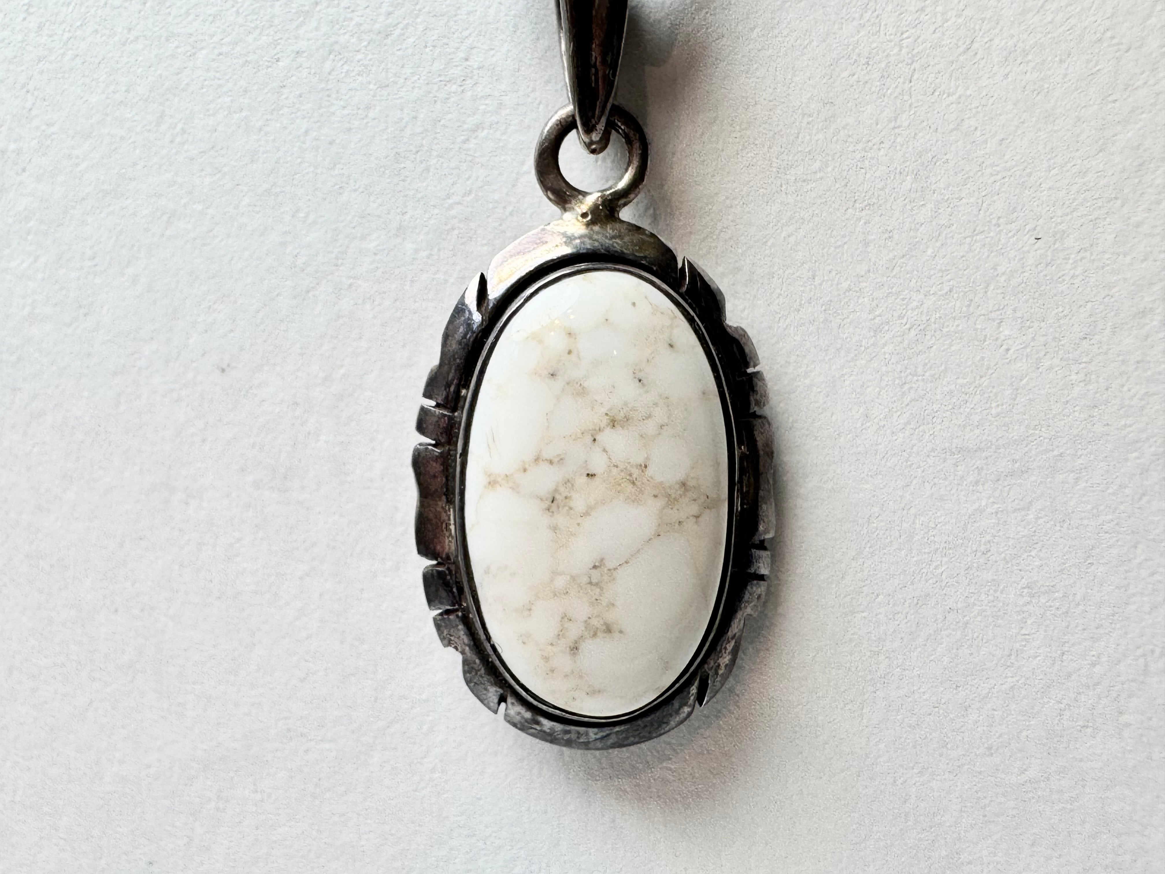 当店オーナーが実際に海外に足を運び仕入れてきた存在感のある大きなホワイトターコイズが特徴なペンダント。
