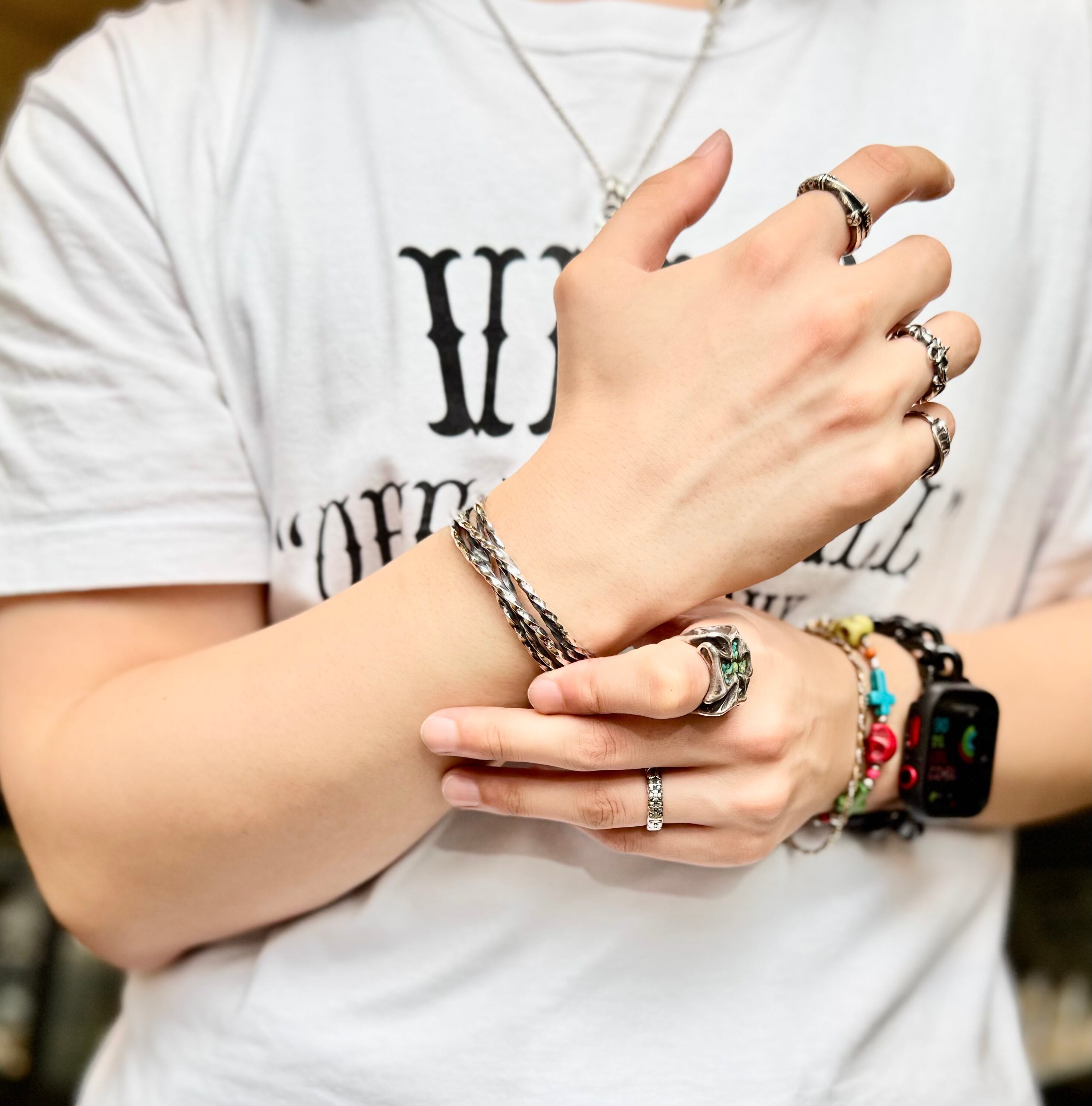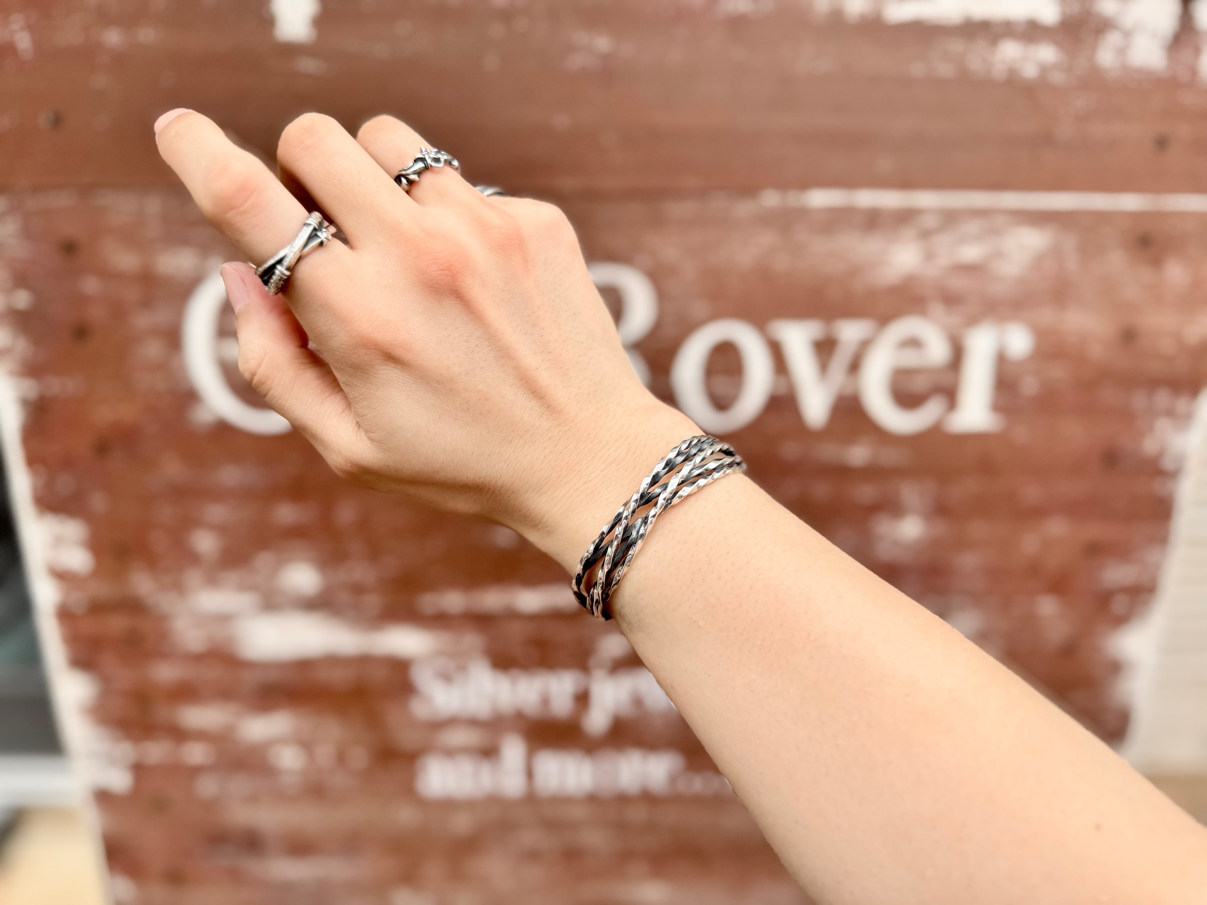 複数本の捩れた線が絡んでいるツイストバングル。