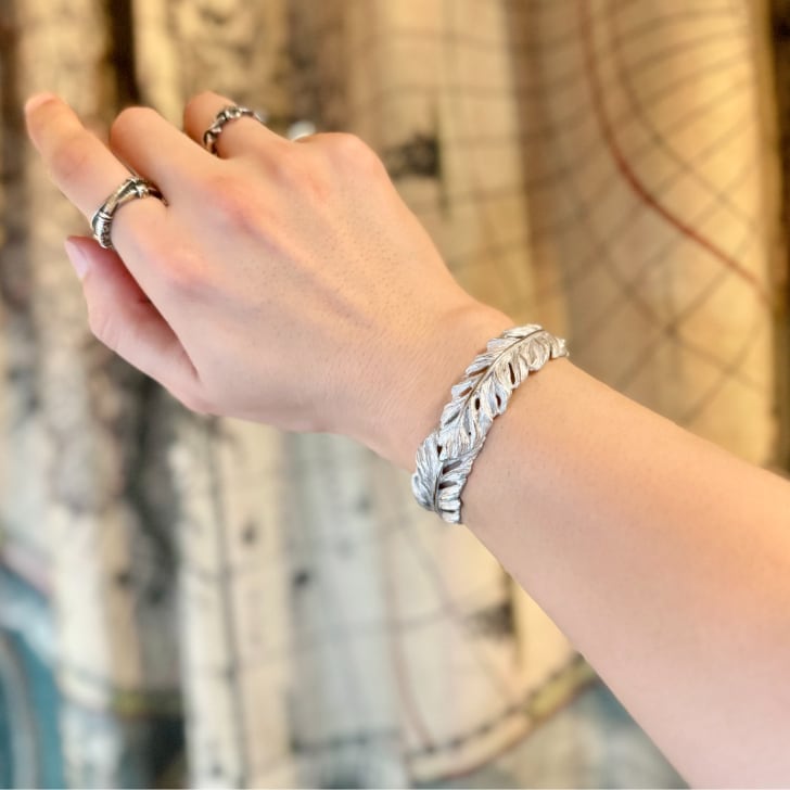 Que Craveの象徴とも言えるフェザーをモチーフとしたバングル。