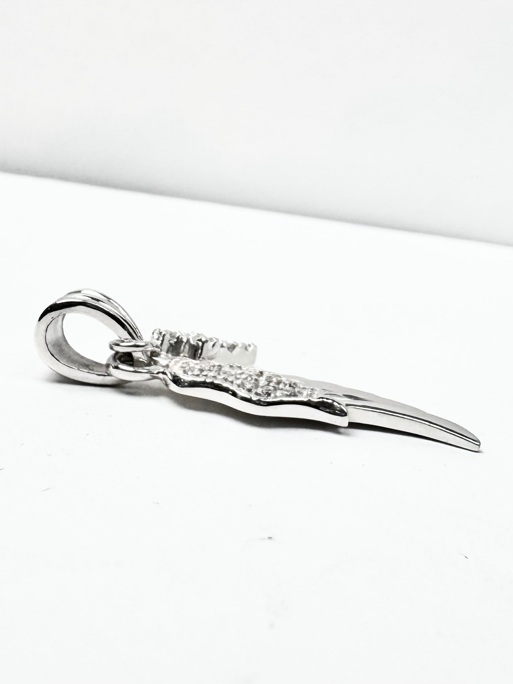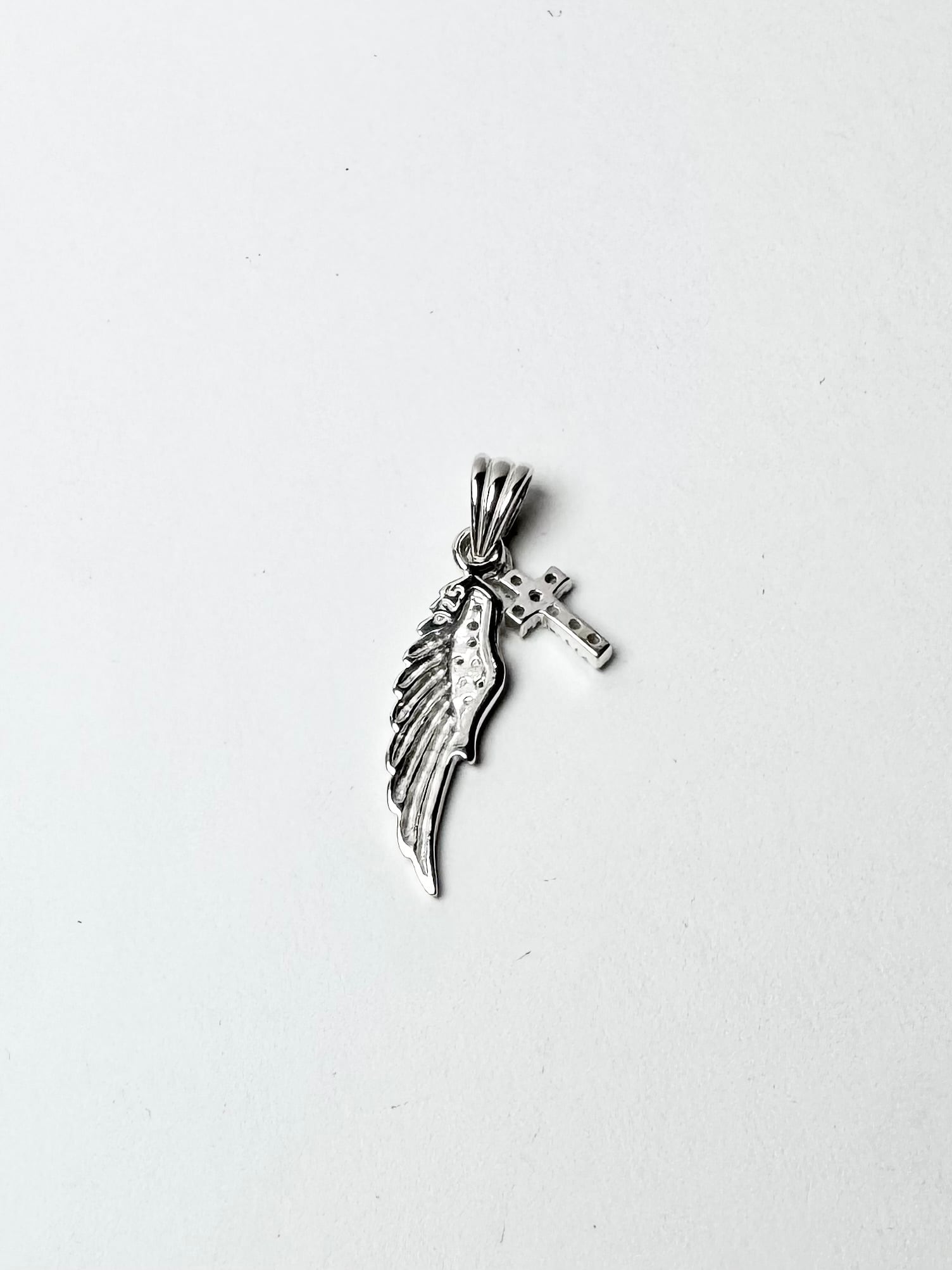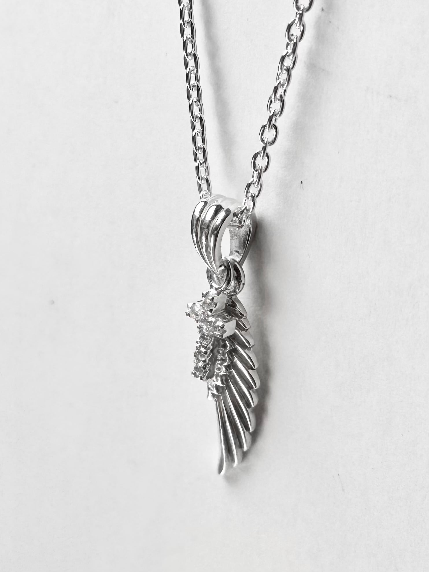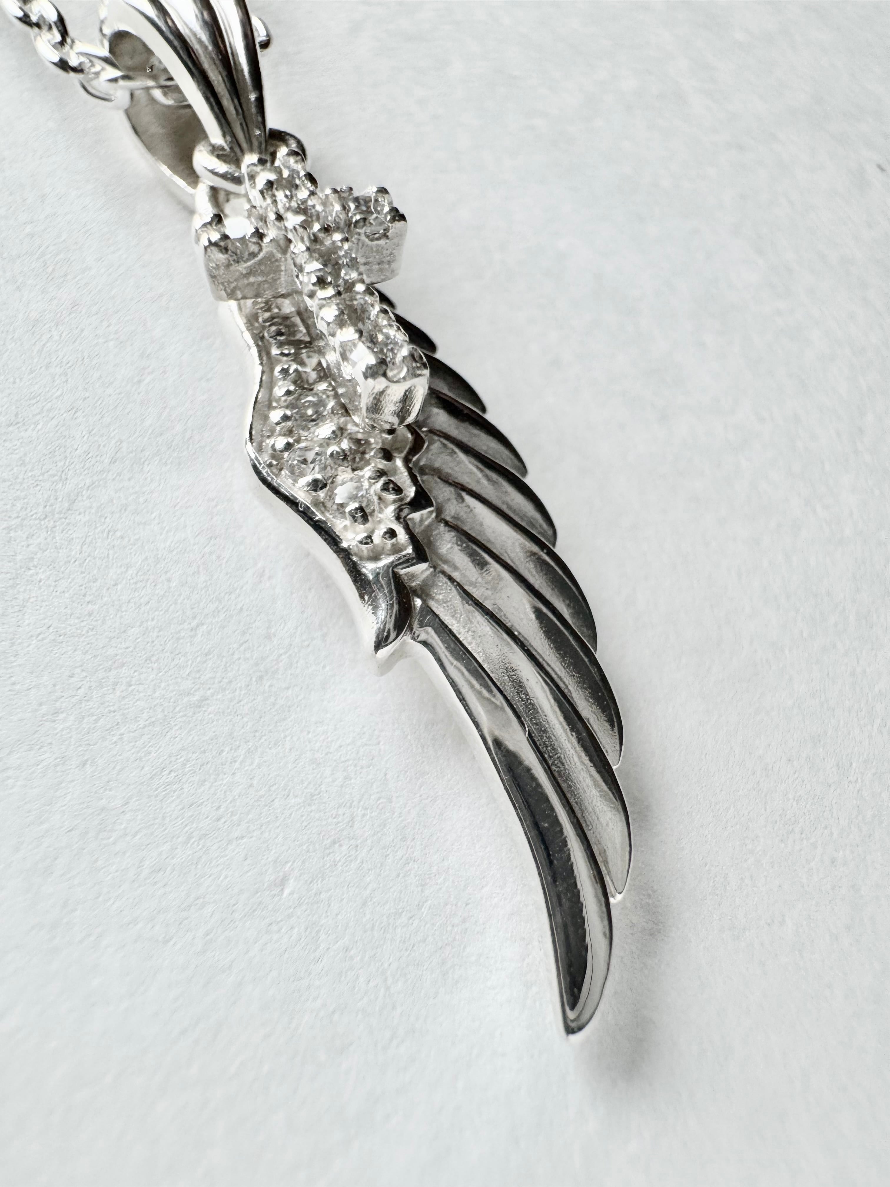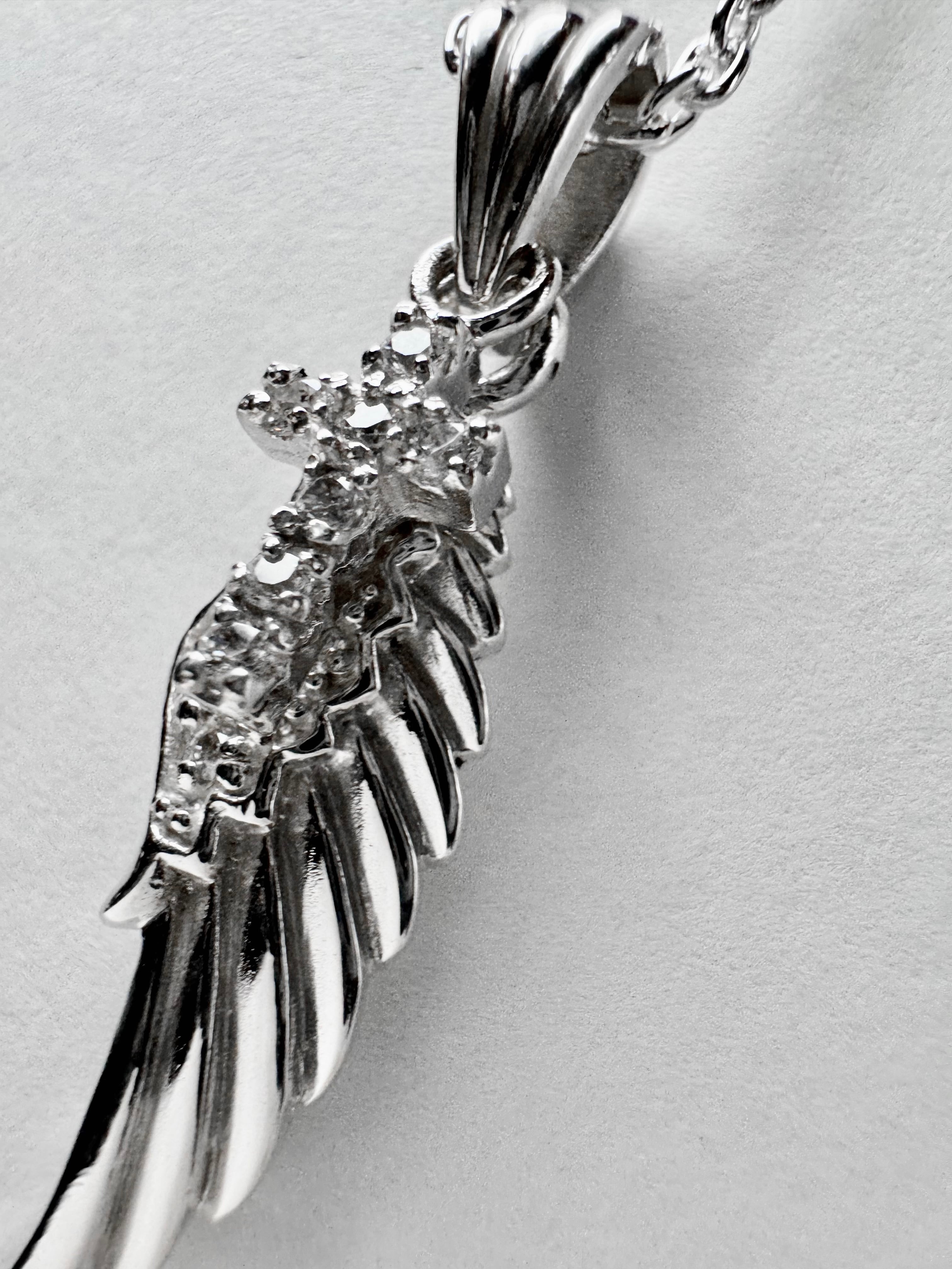 クロスの表面と前縁部分にはホワイトジルコニアが設置されており、白仕上げと相まって非常に神聖で優しく可愛げすら感じるその様子はまさに天使の微笑みかのよう。