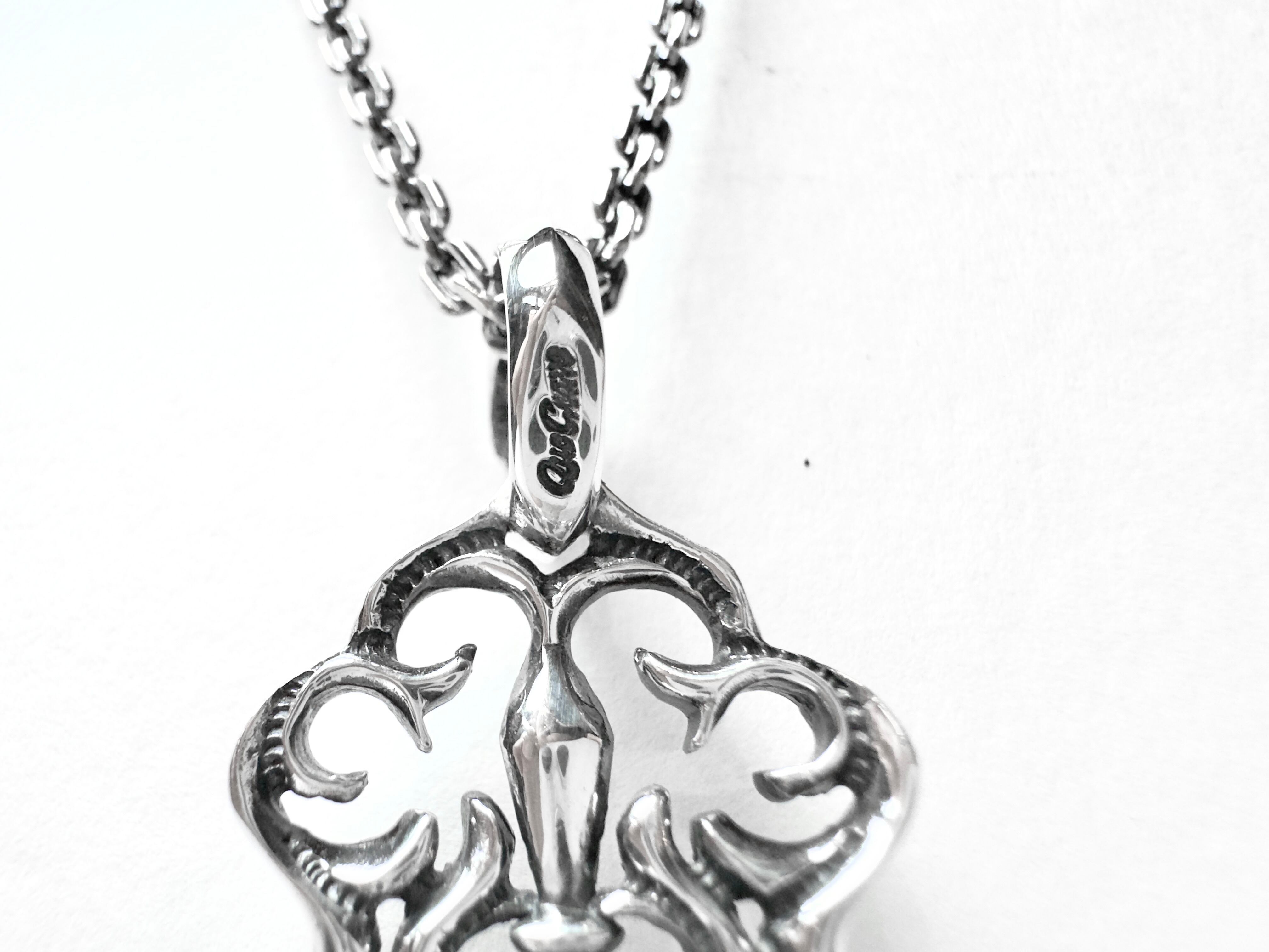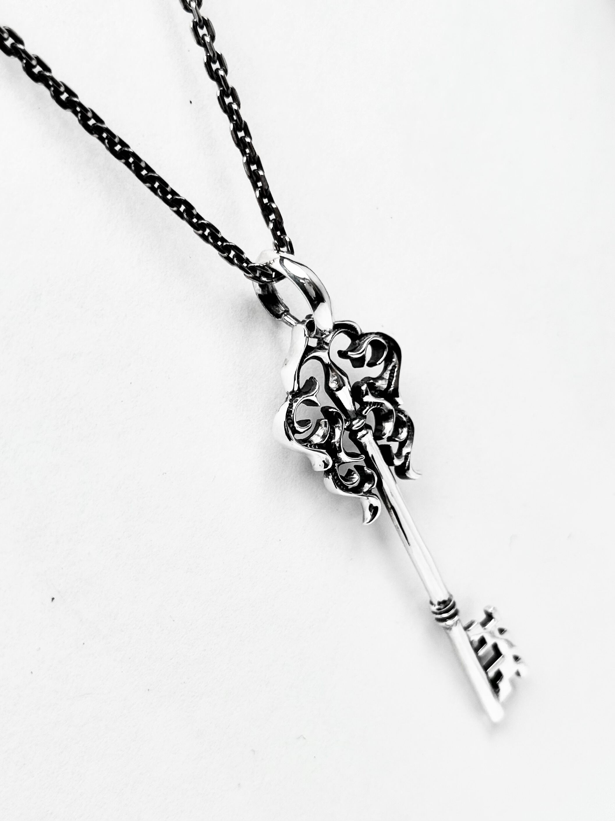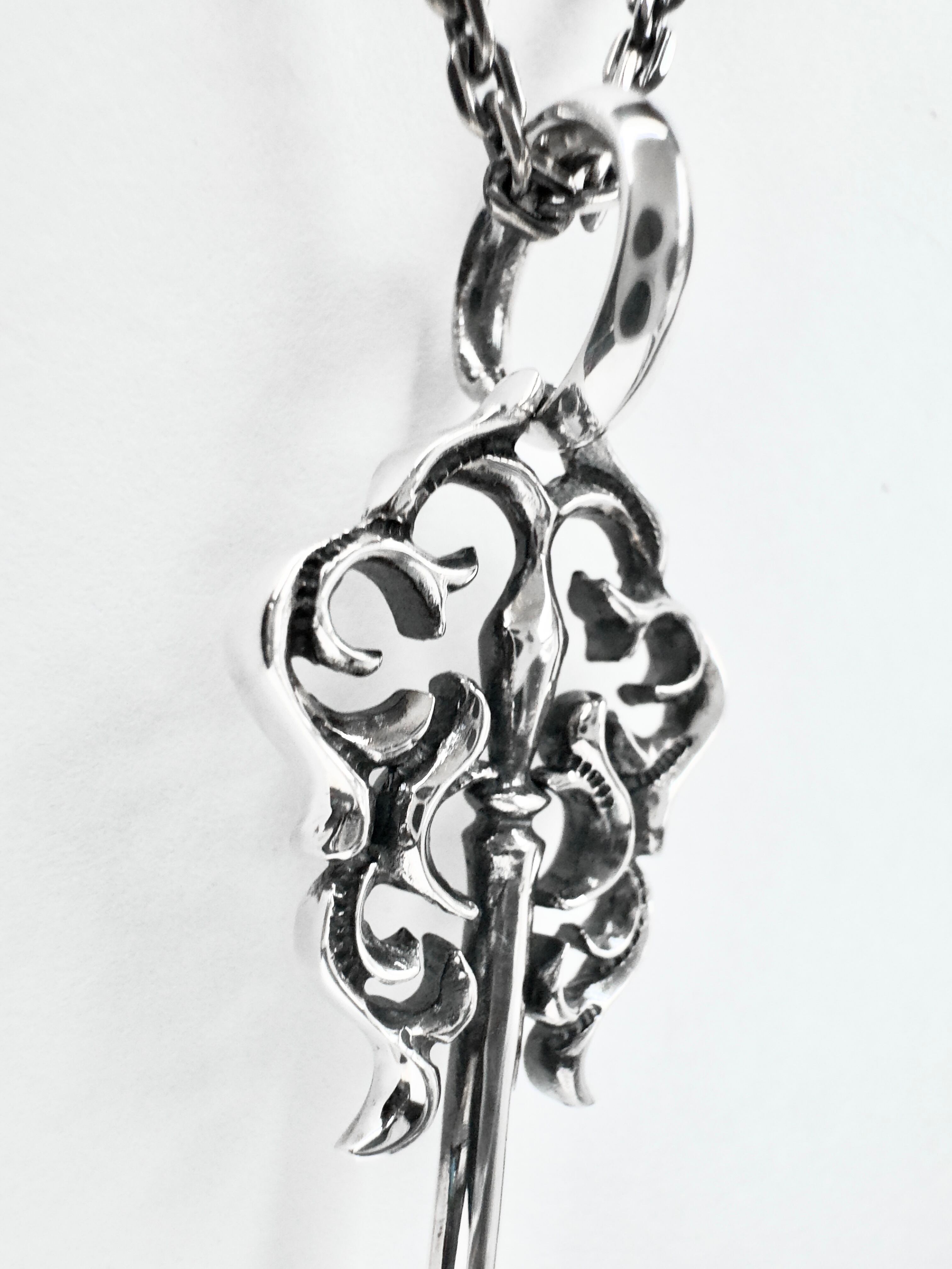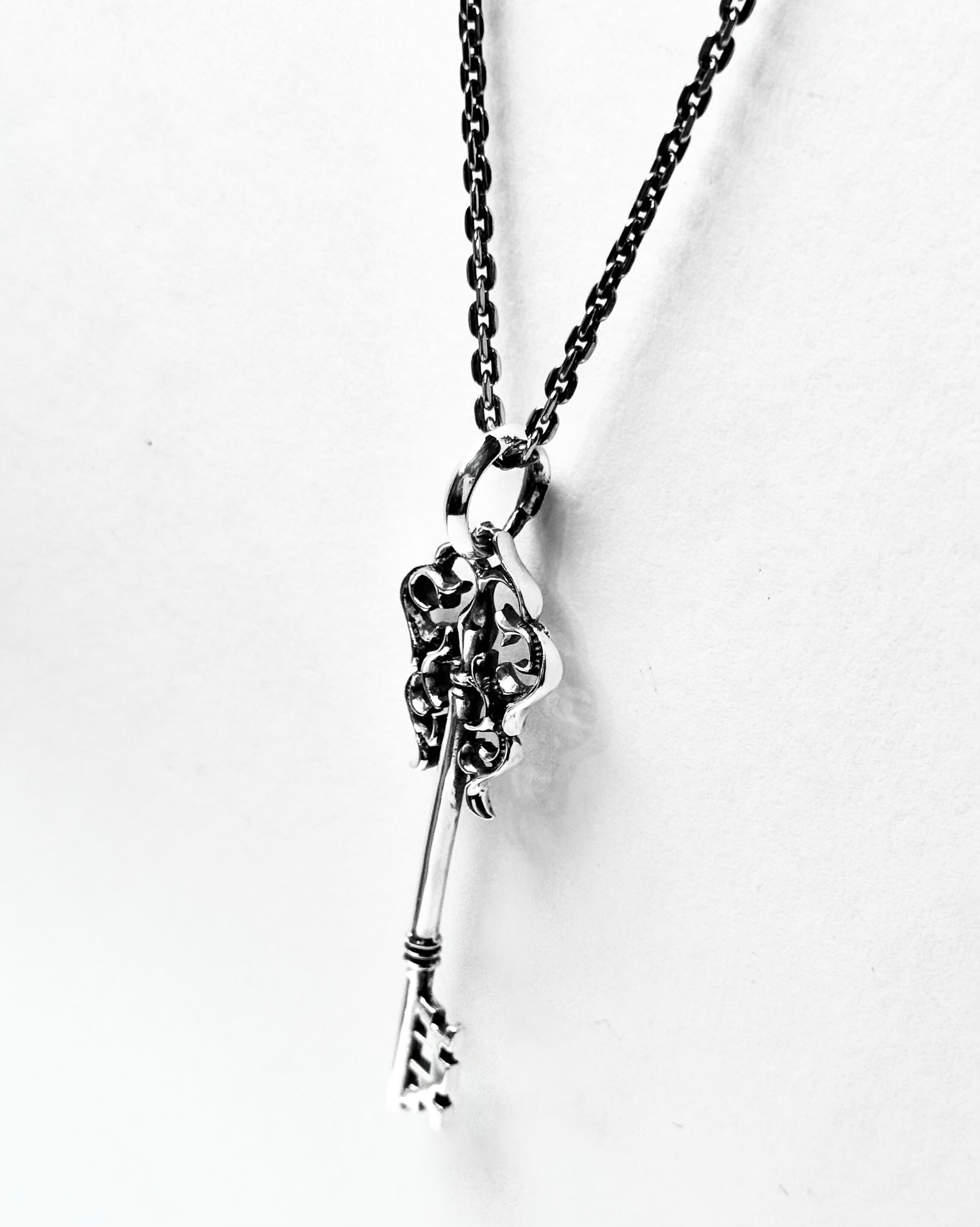 アンティークなキーのモチーフにアラベスクデザインを取り入れたペンダント。