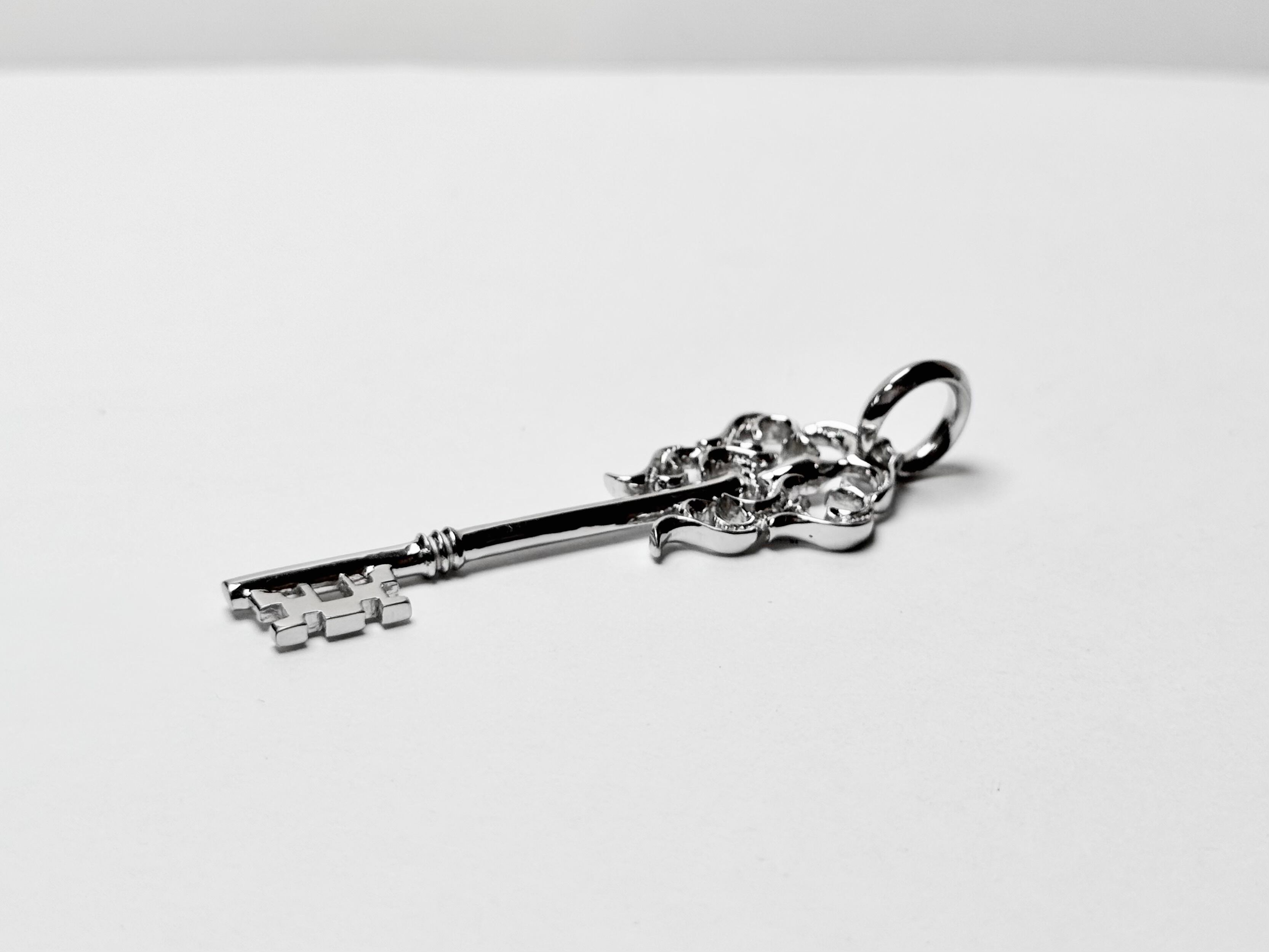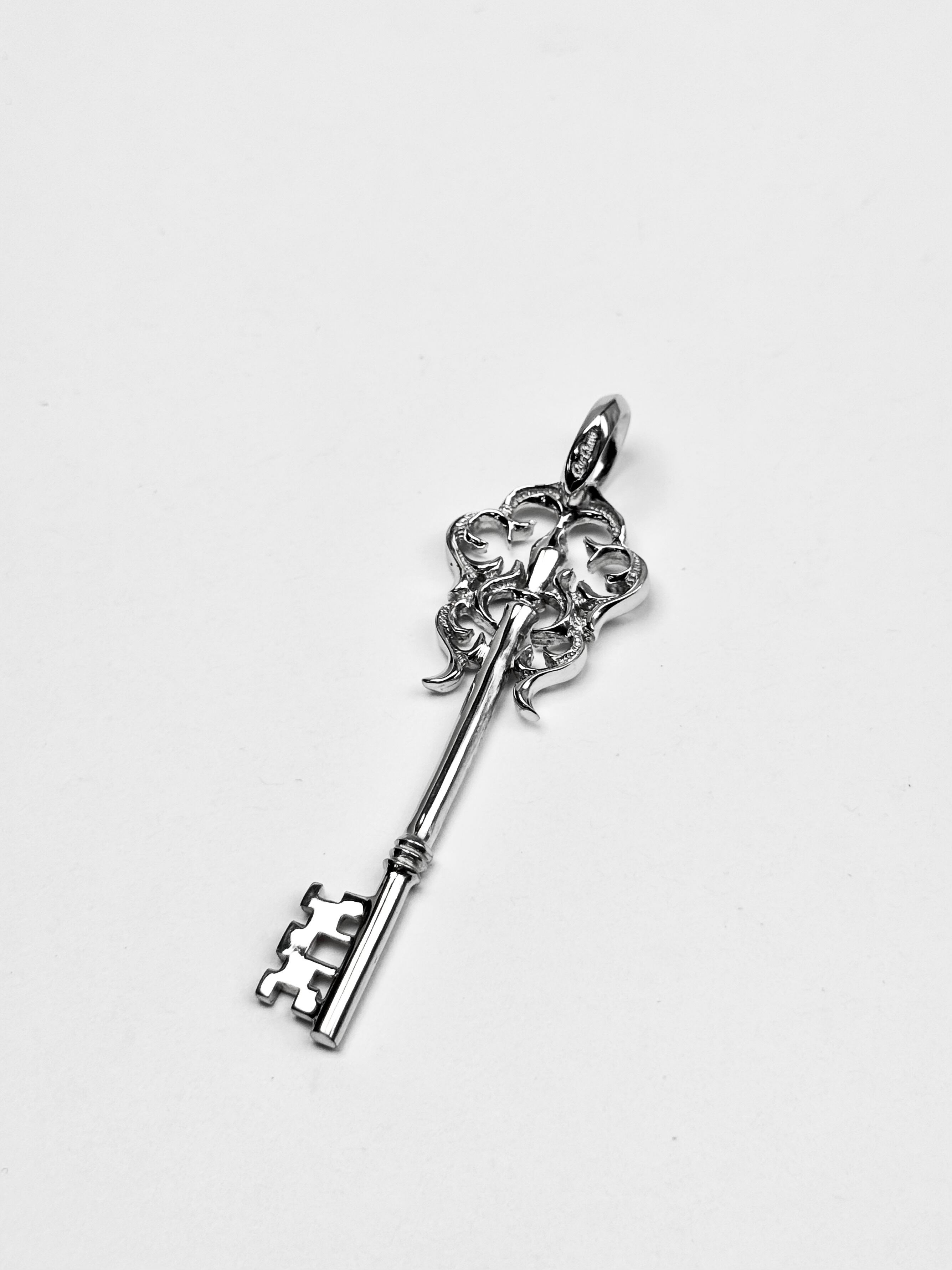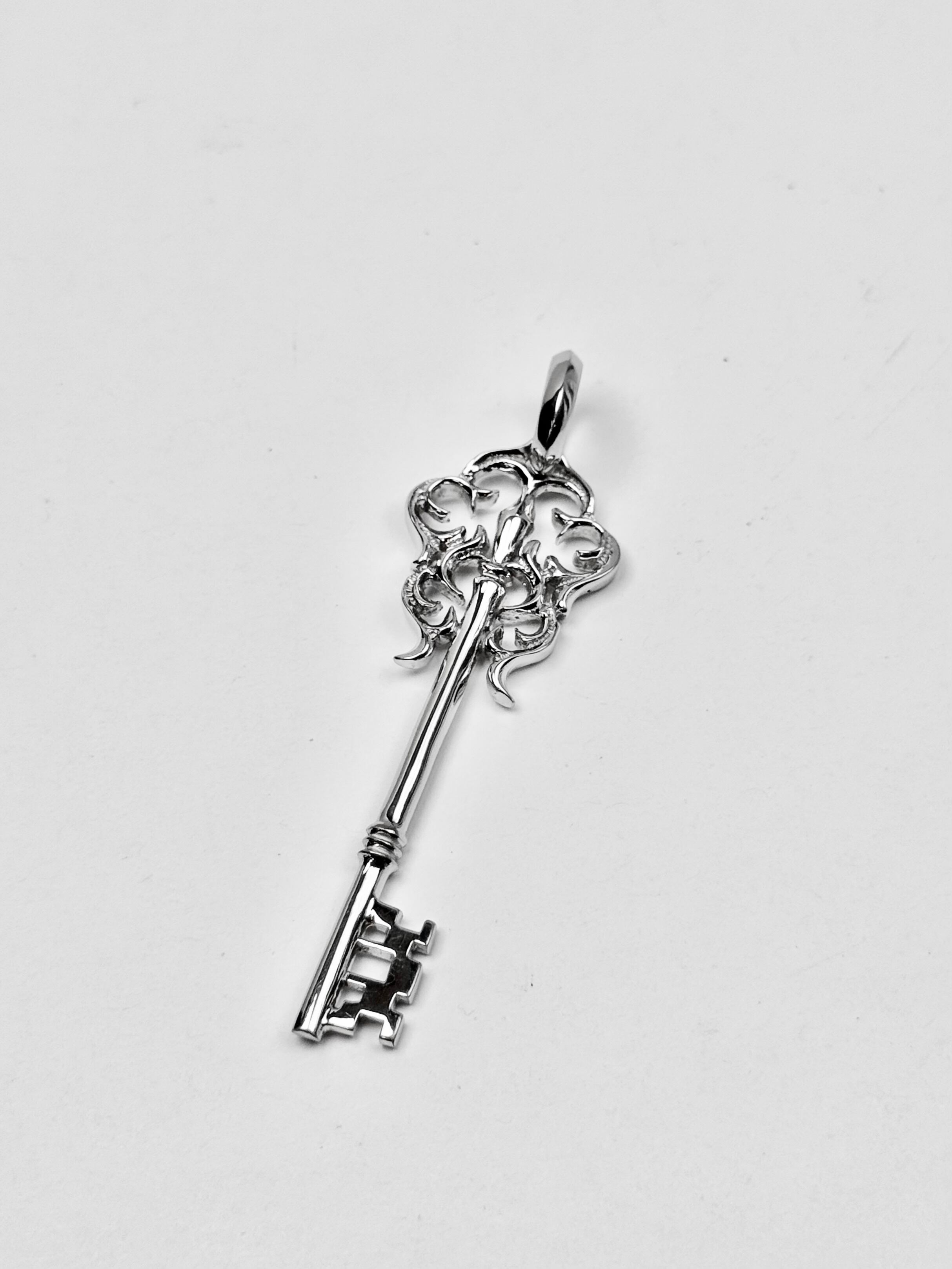 アンティークなキーのモチーフにアラベスクデザインを取り入れたペンダント。