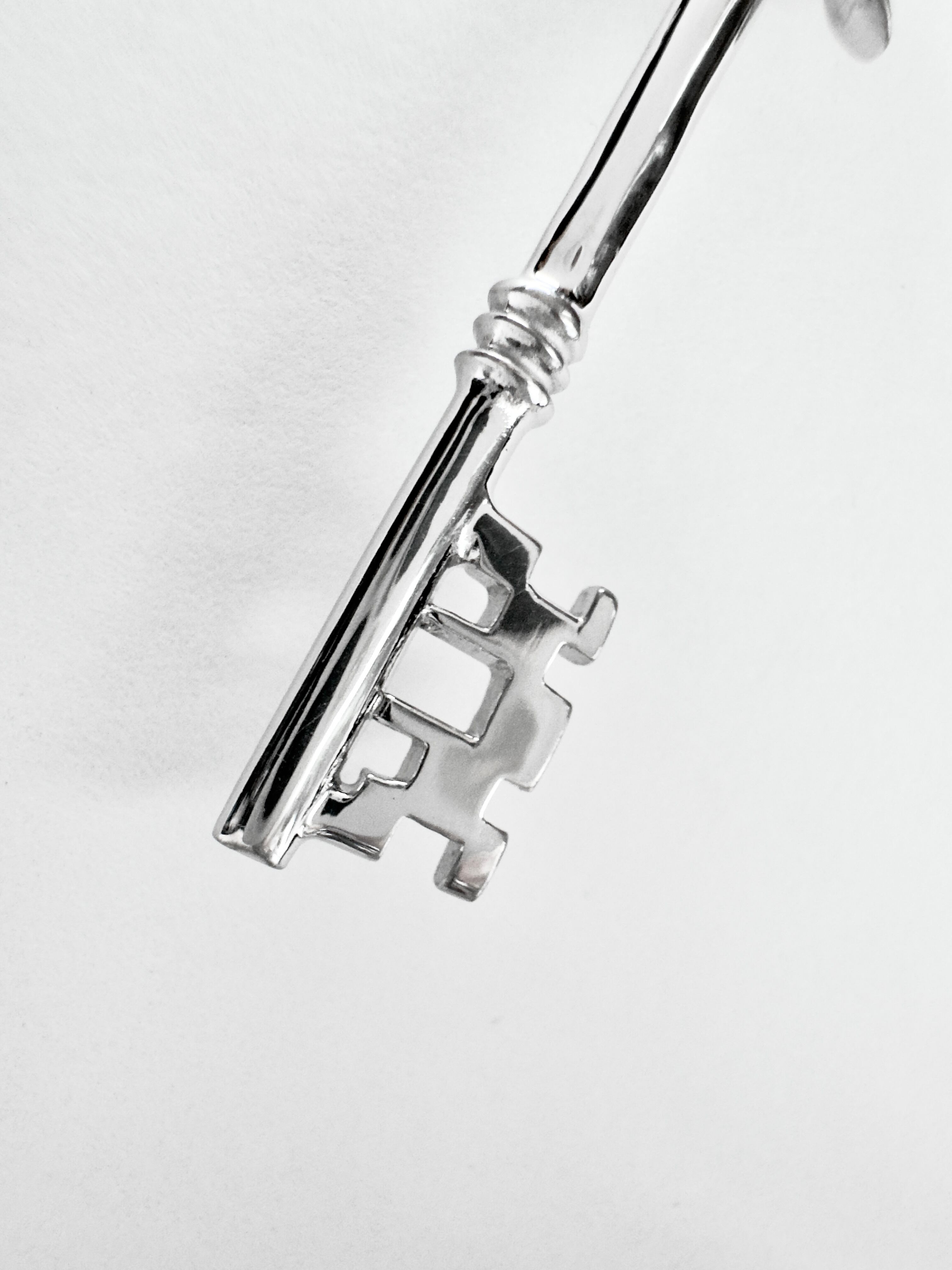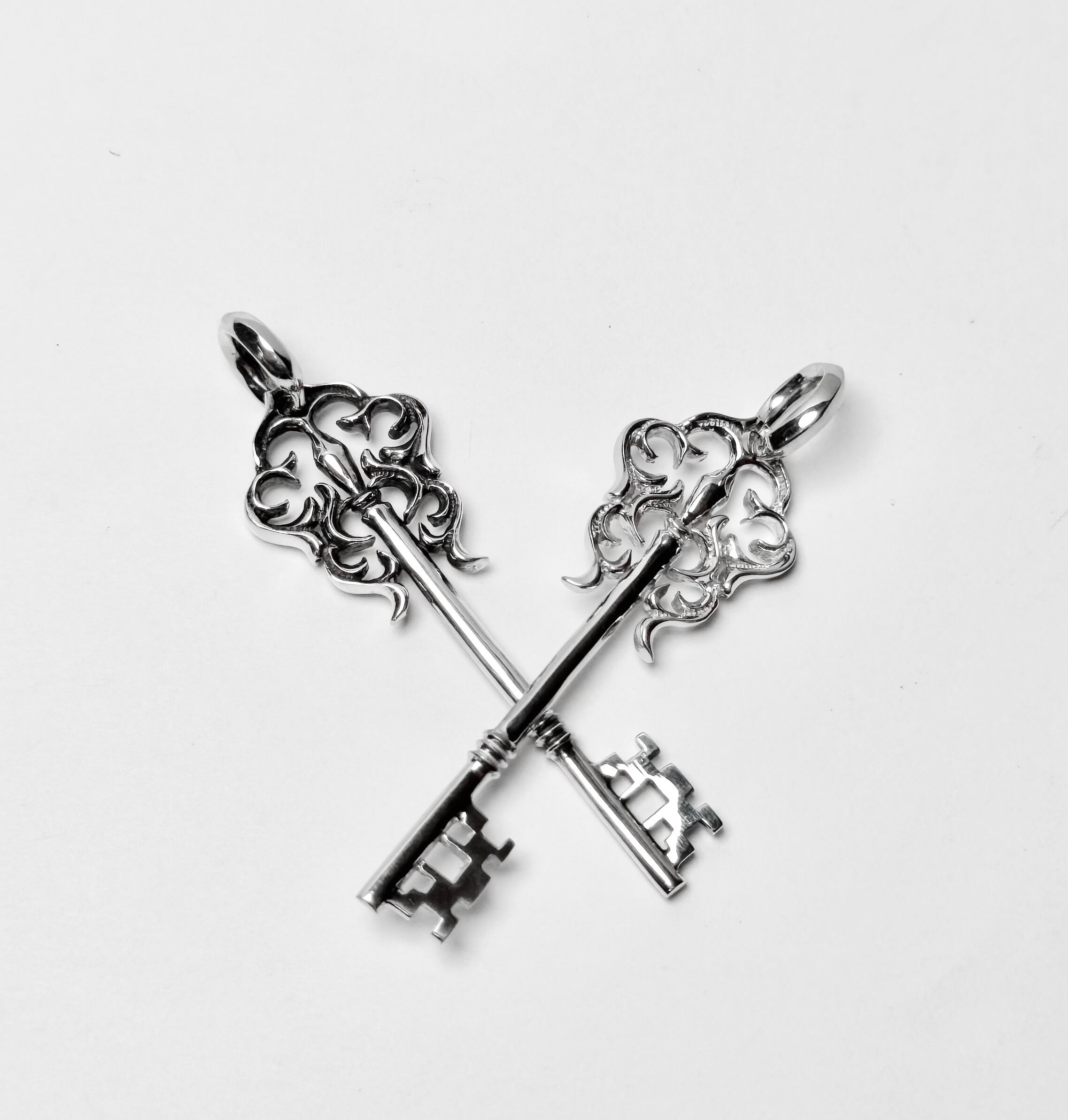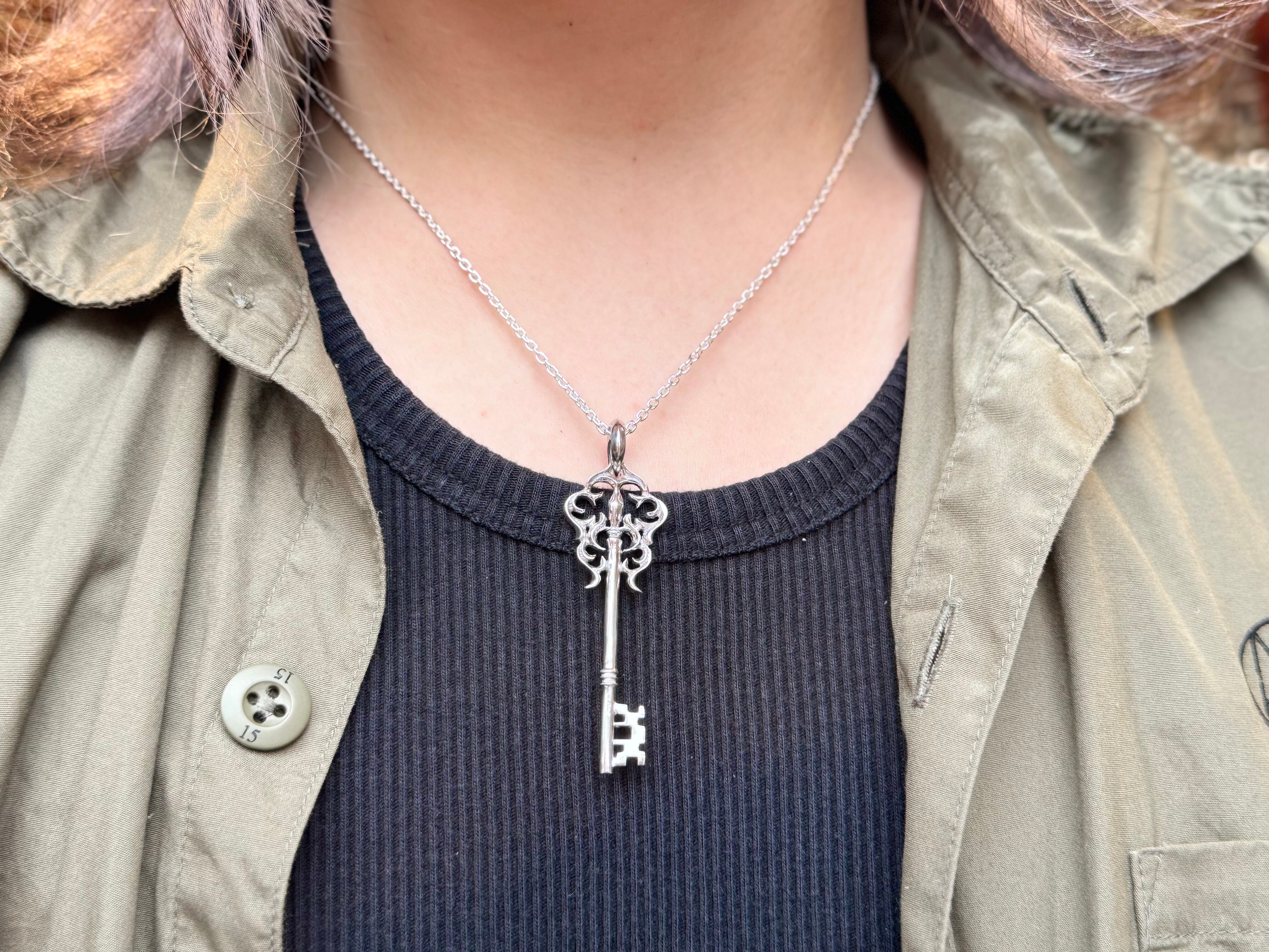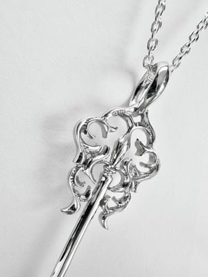 アンティークなキーのモチーフにアラベスクデザインを取り入れたペンダント。