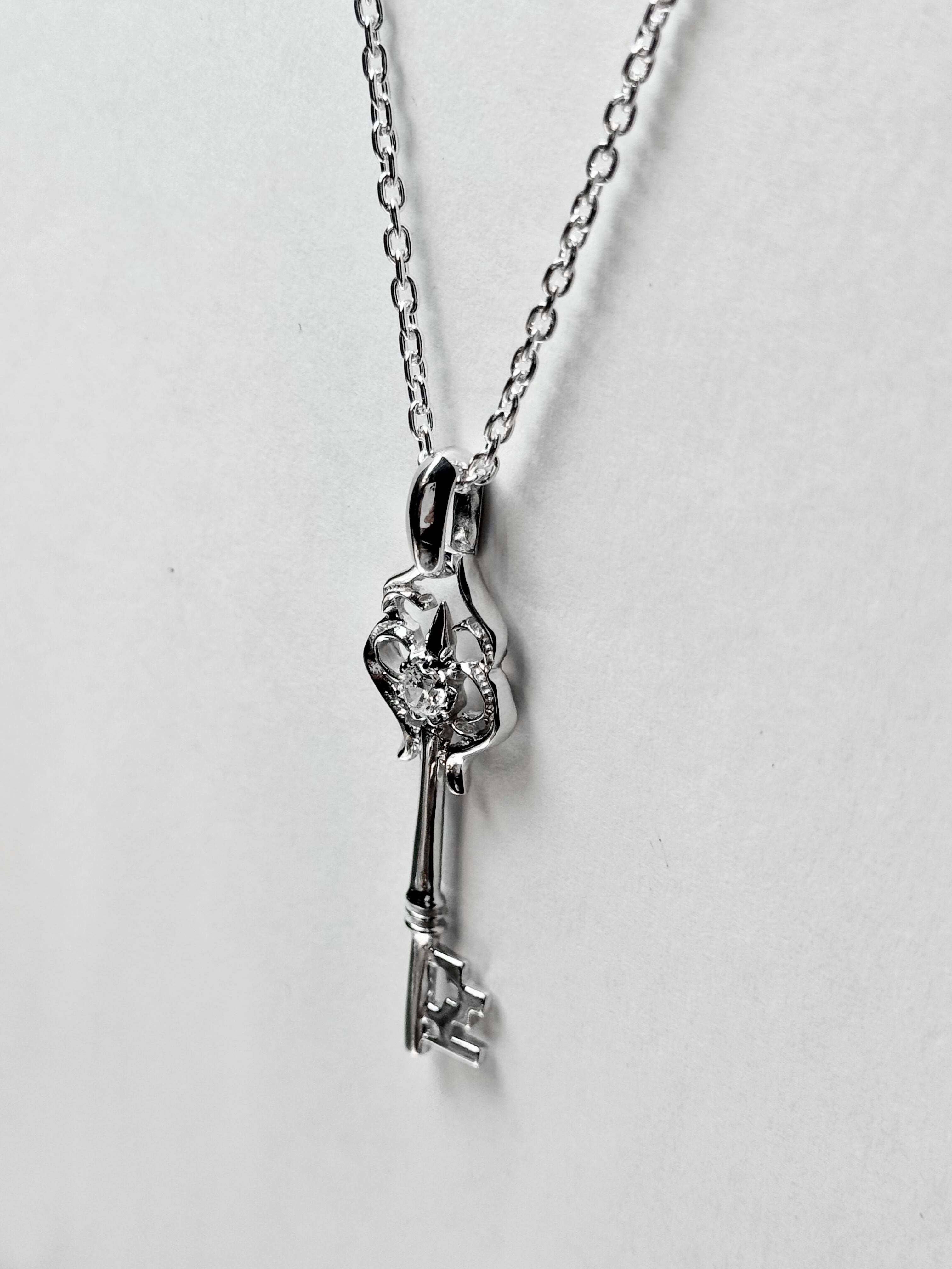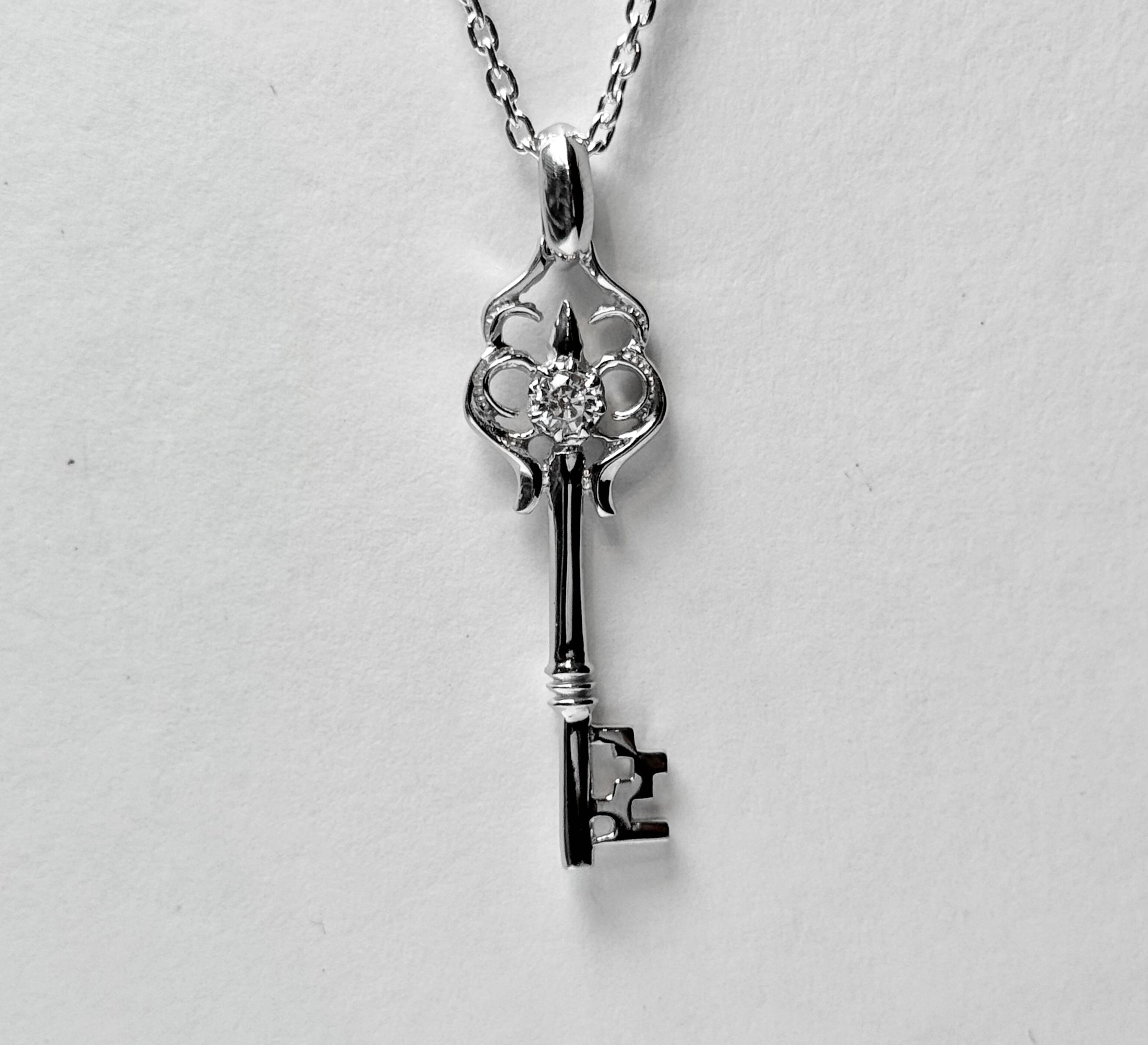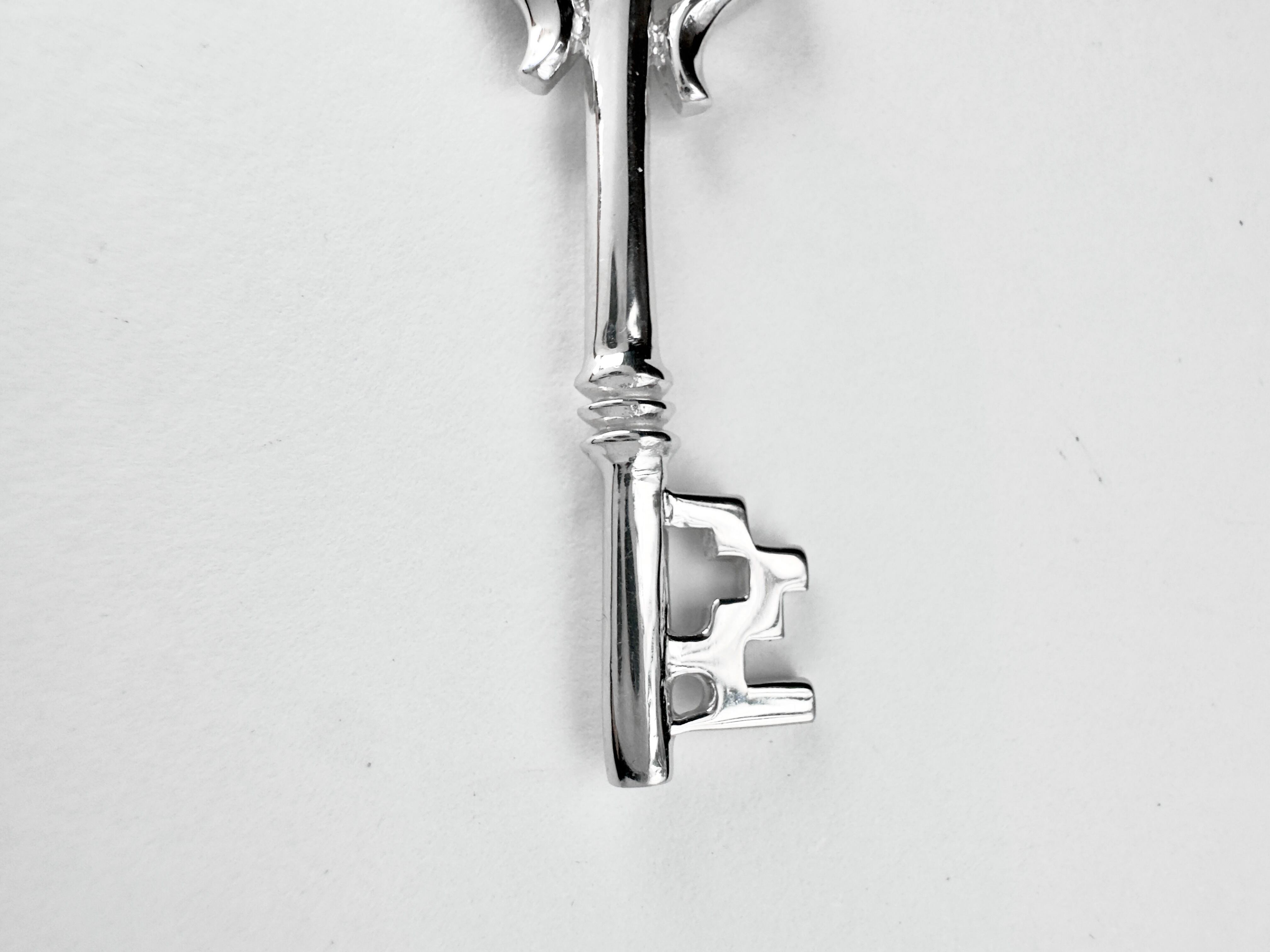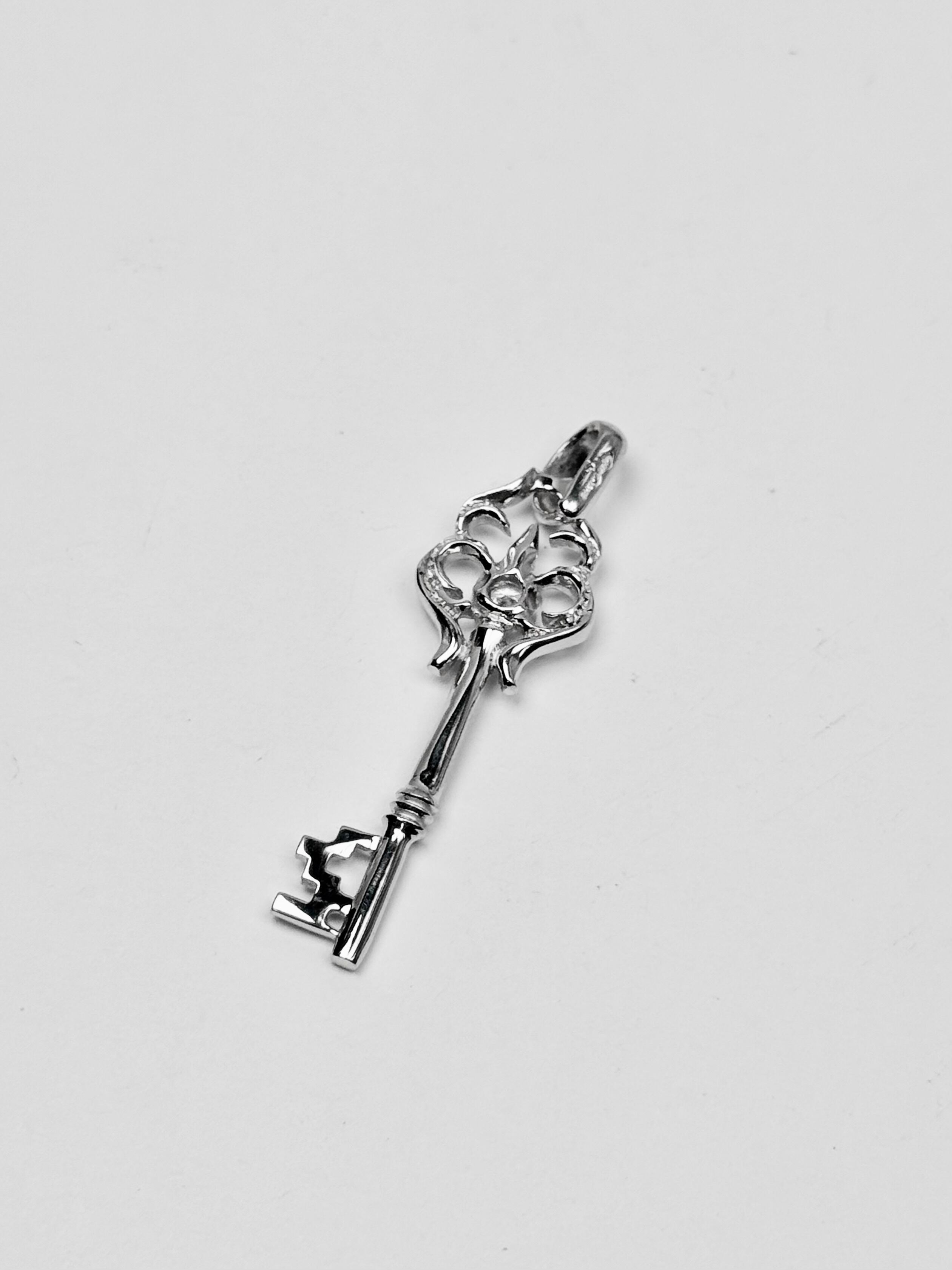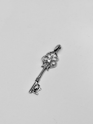 小ぶりなアンティーク調の鍵モチーフにアラベスクデザインを取り入れたペンダント。