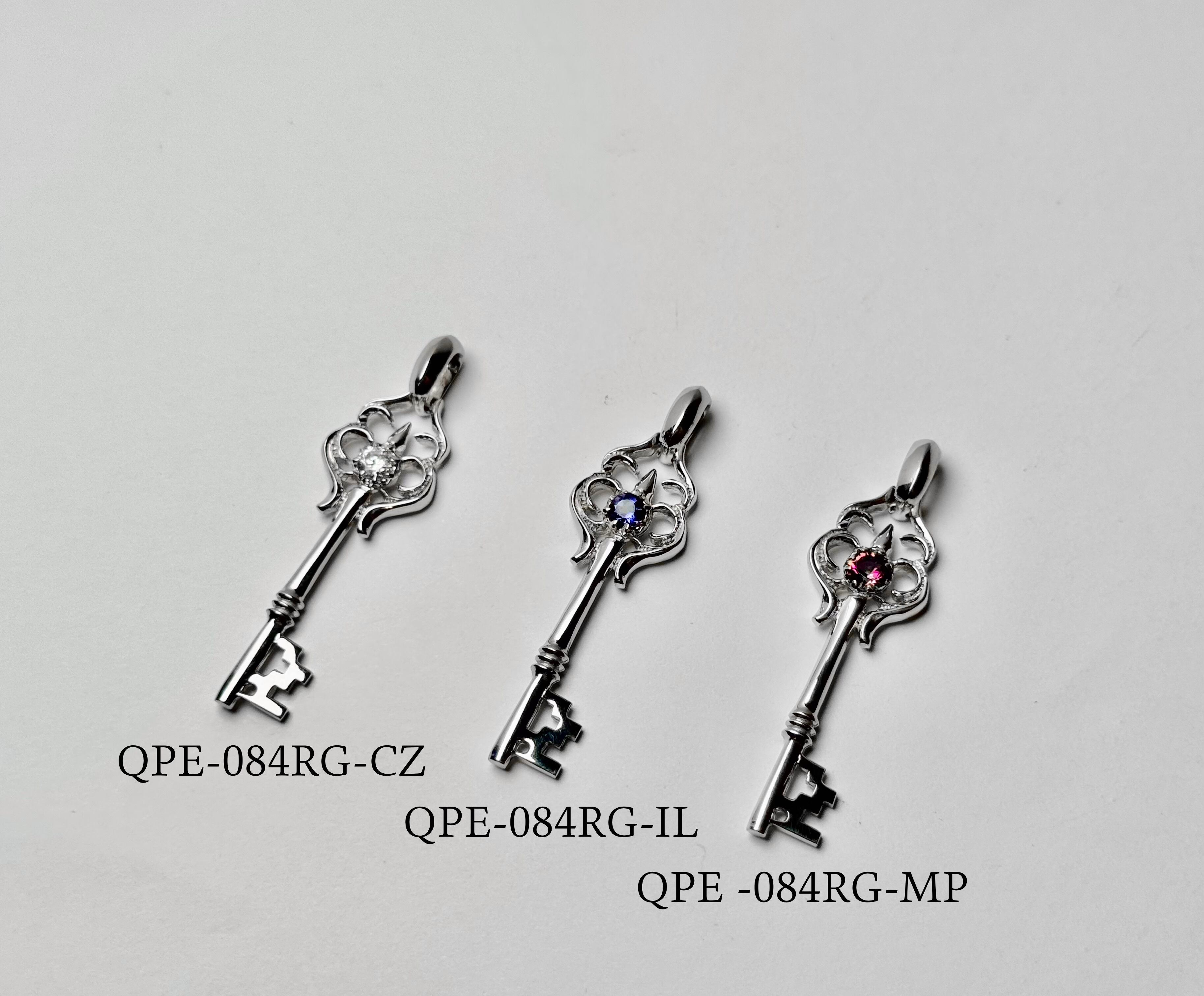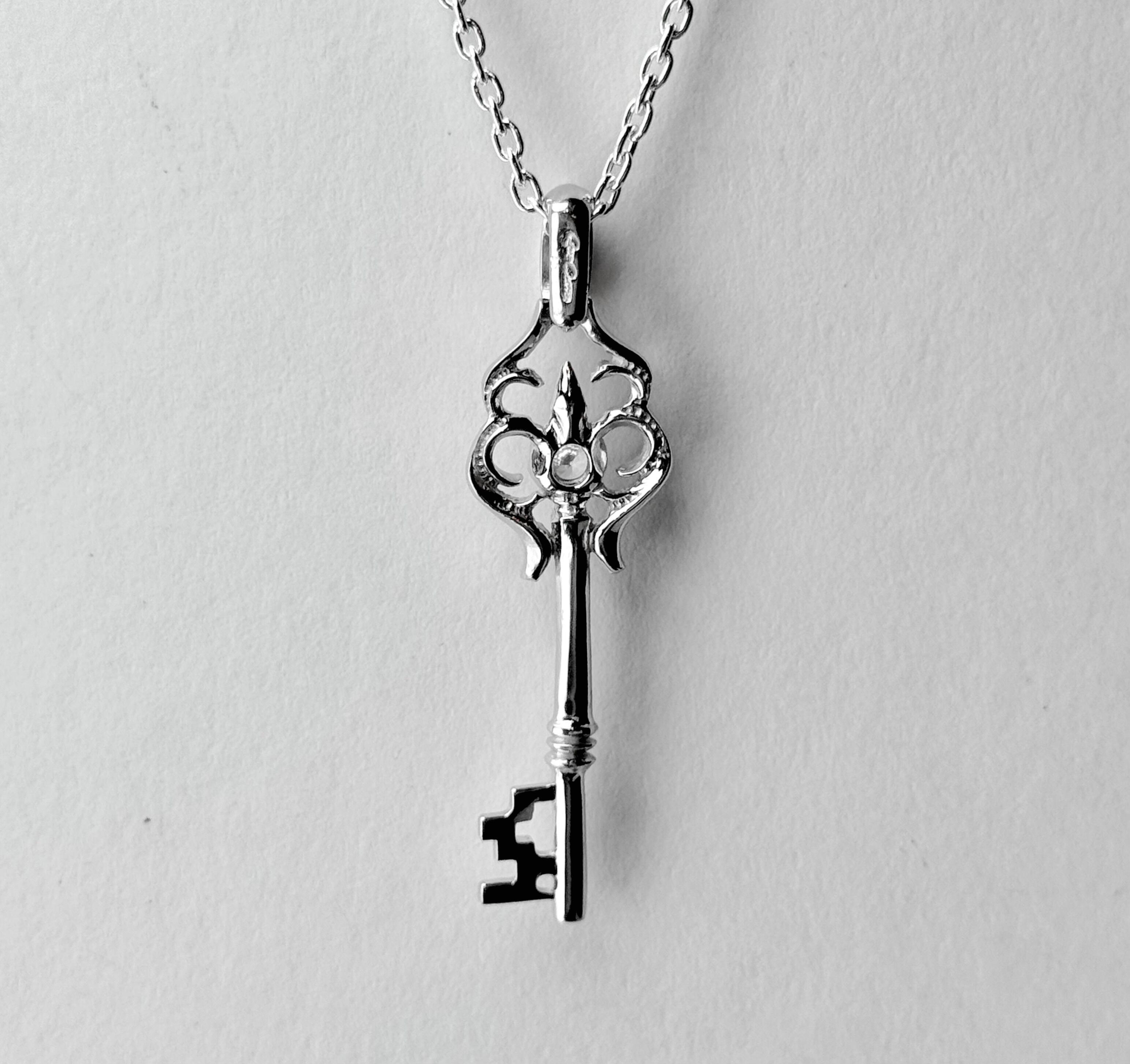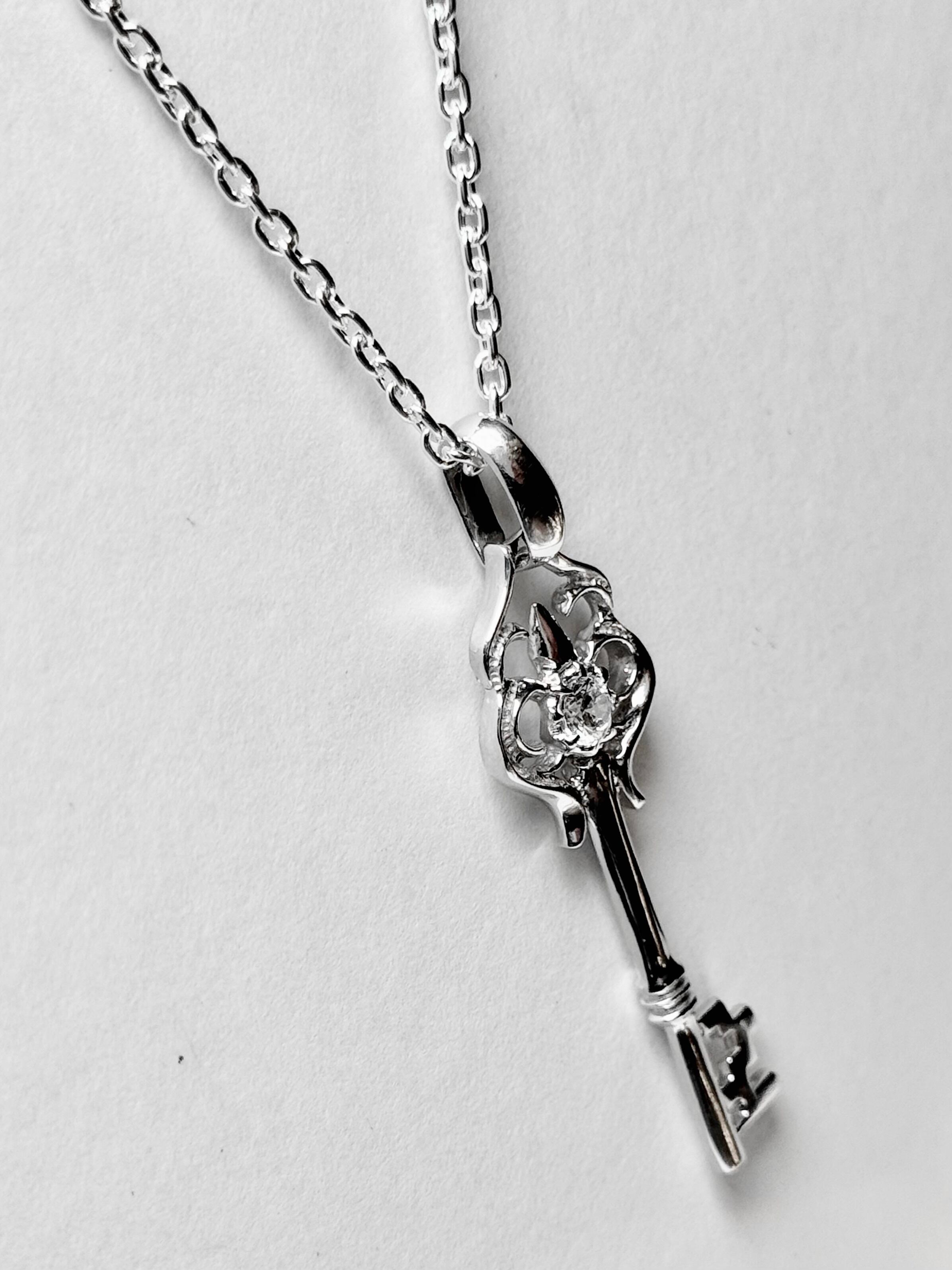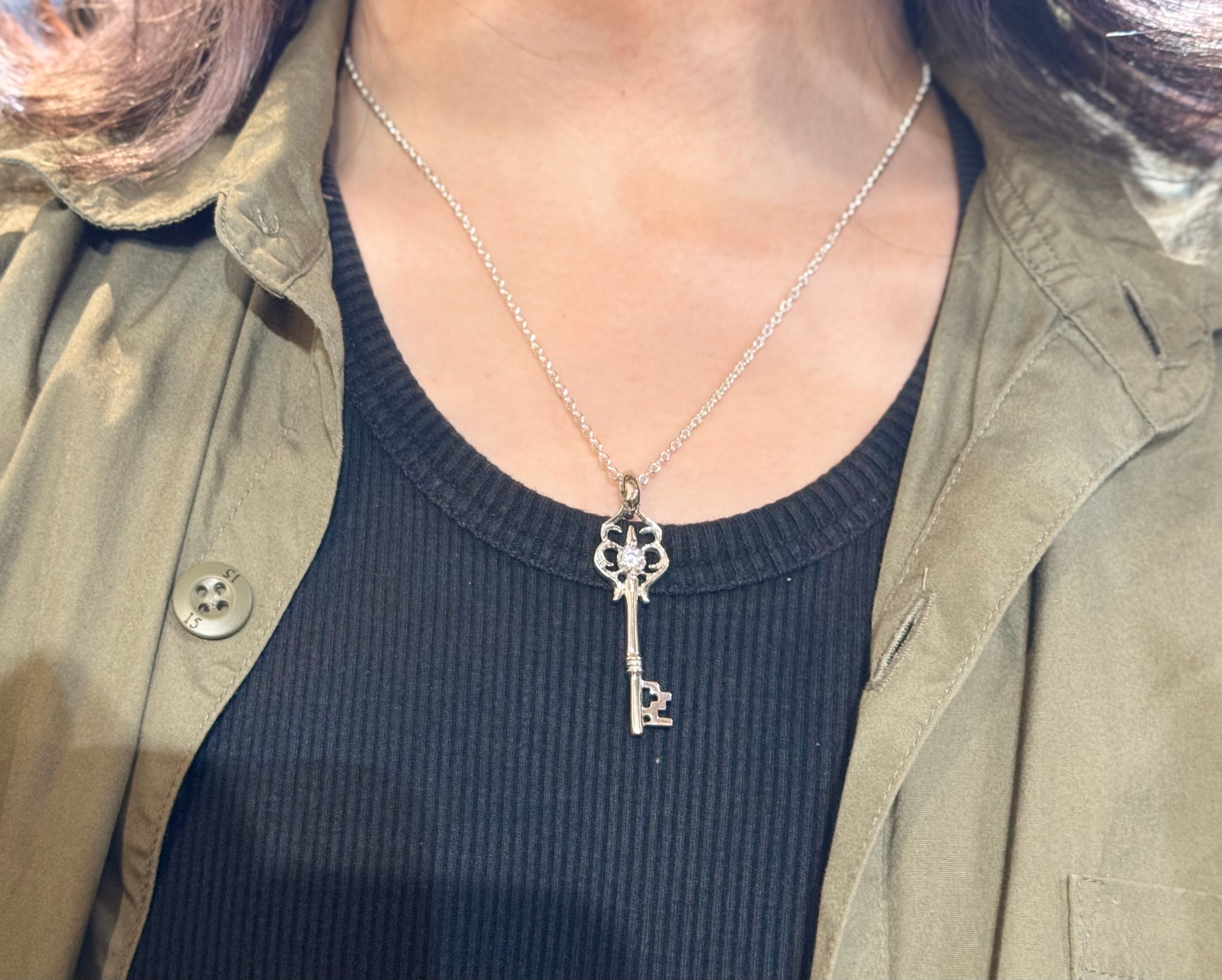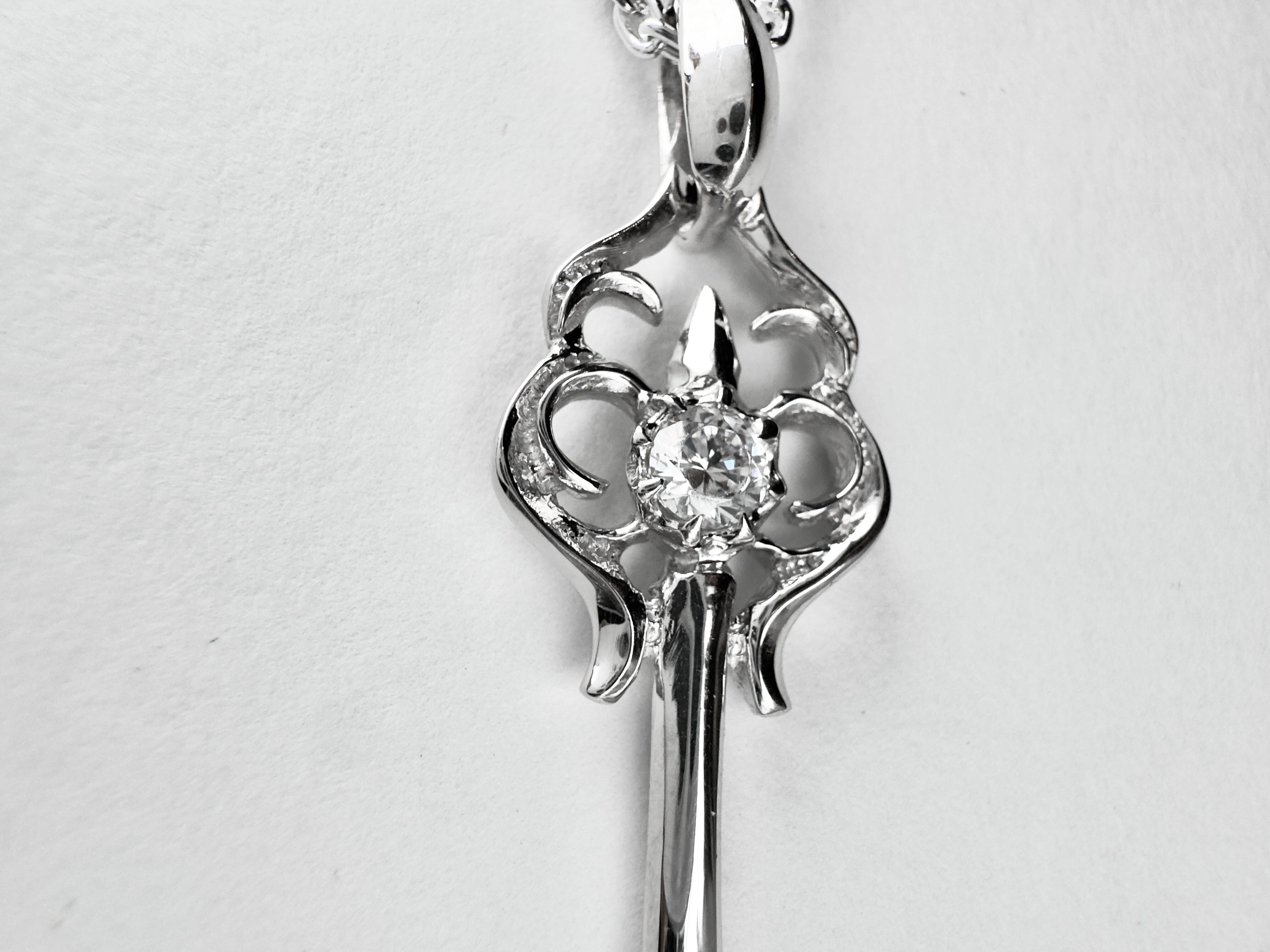 小ぶりなアンティーク調の鍵モチーフにアラベスクデザインを取り入れたペンダント。