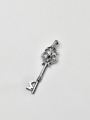 小ぶりなアンティーク調の鍵モチーフにアラベスクデザインを取り入れたペンダント。