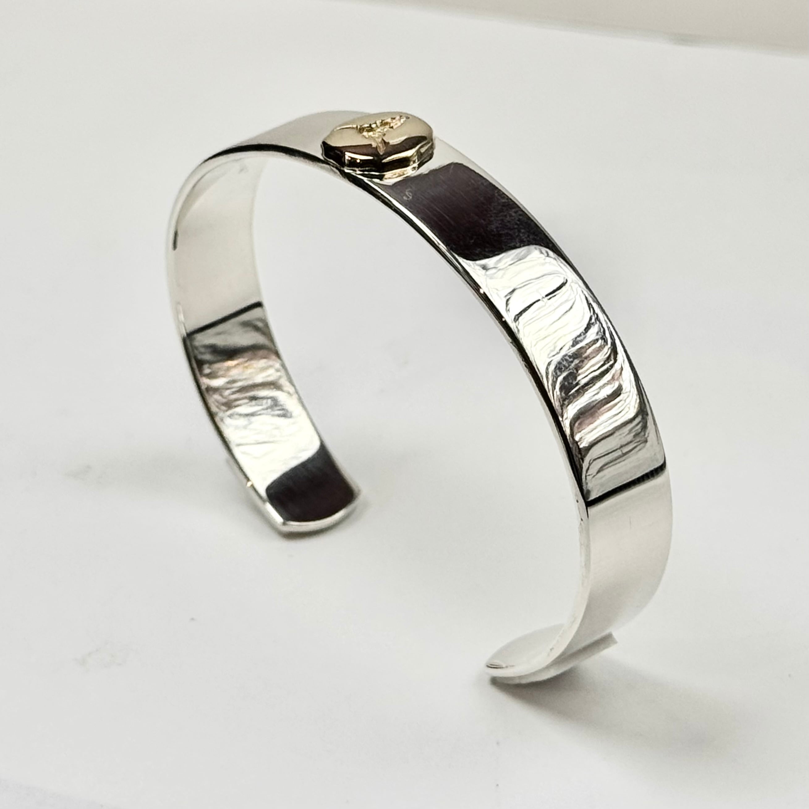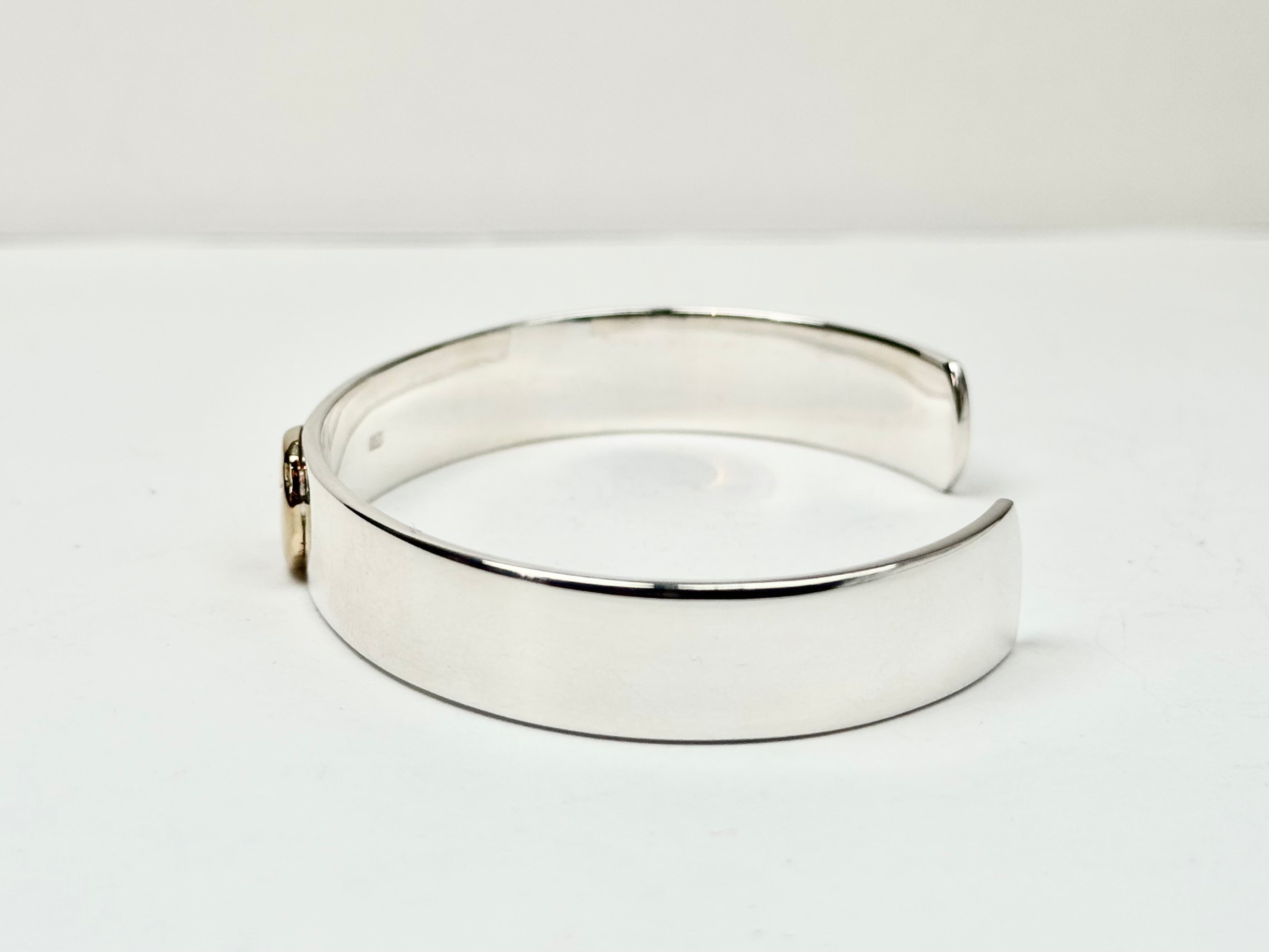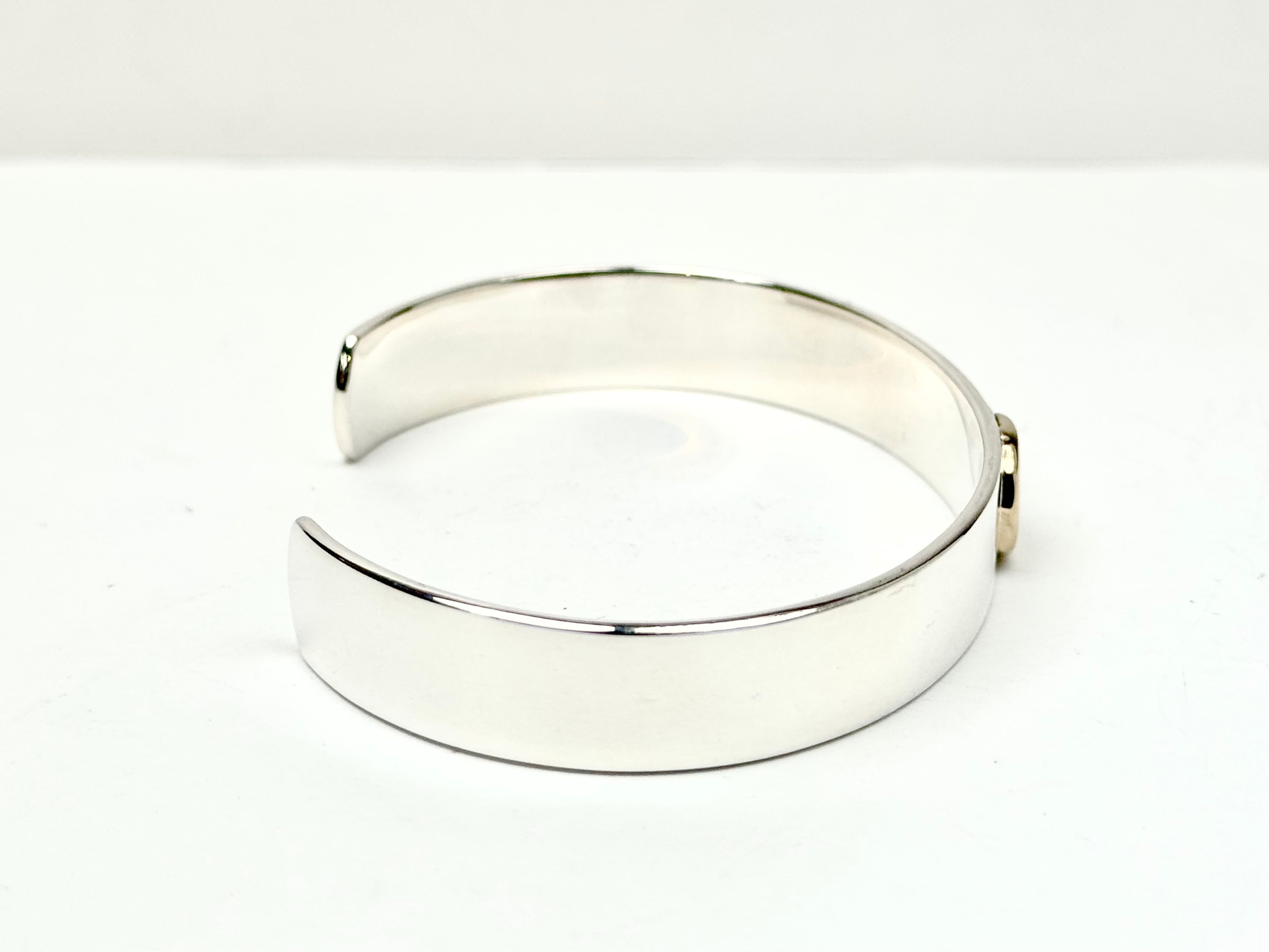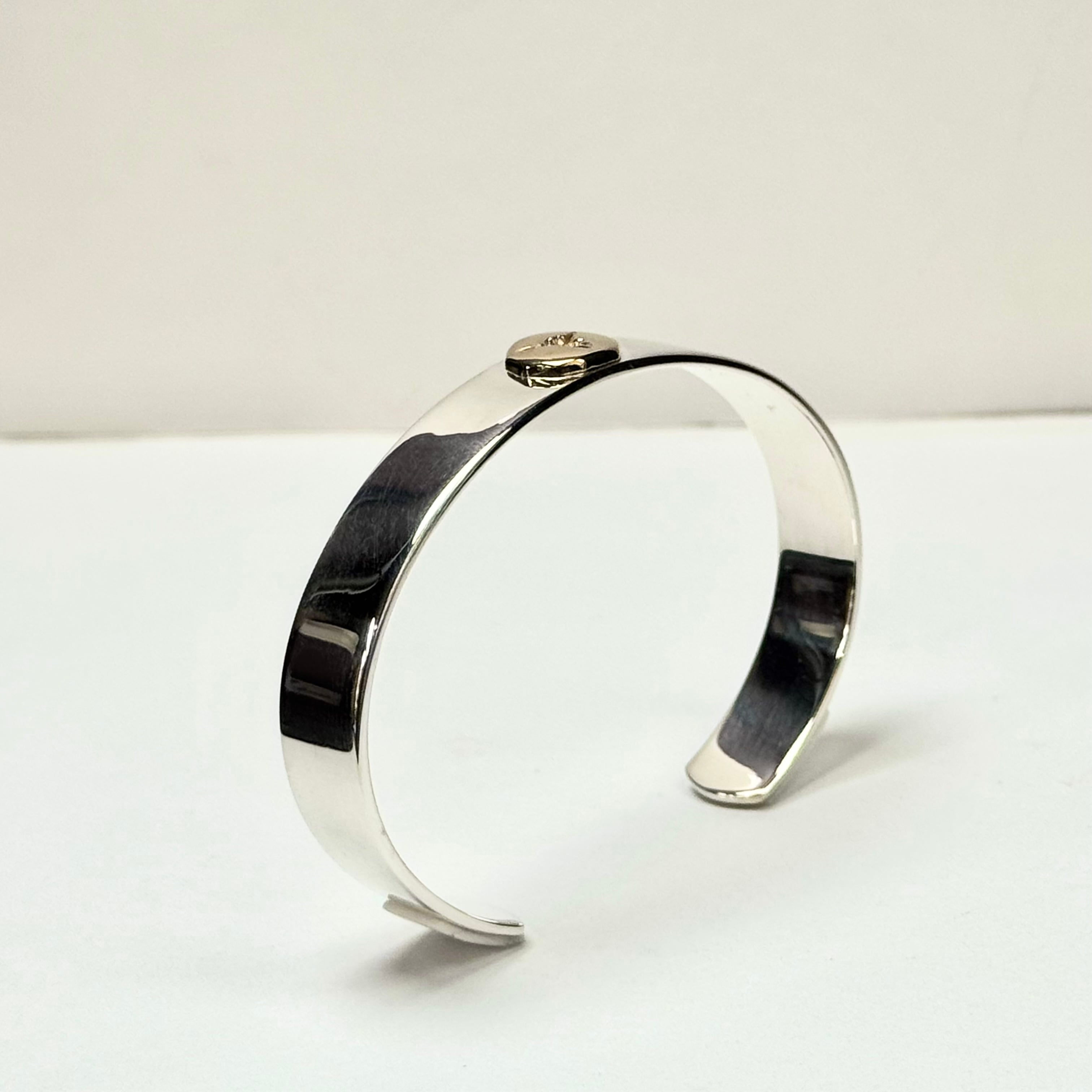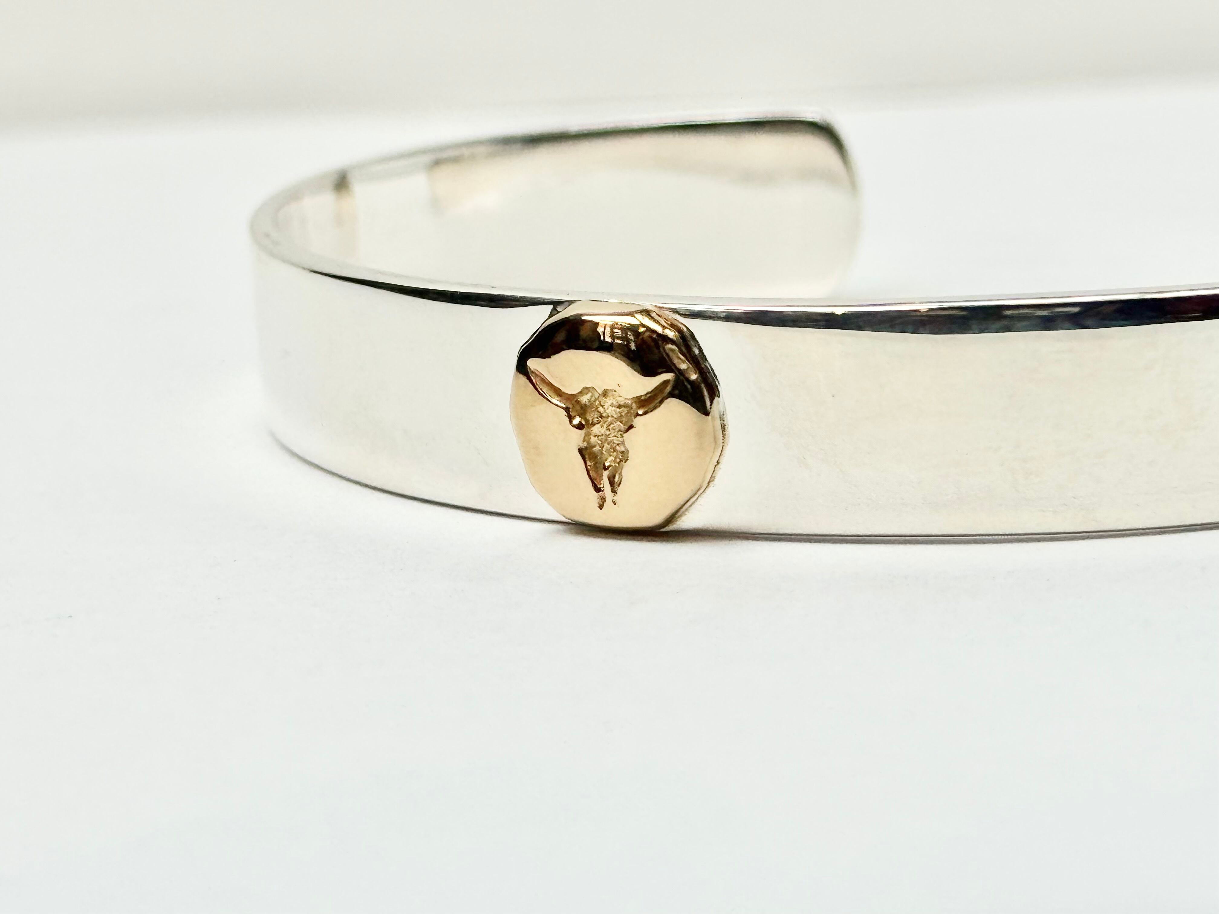 平打ちのバングルにバッファローの頭部が刻印された真鍮製のコインがデザインされているバングル。