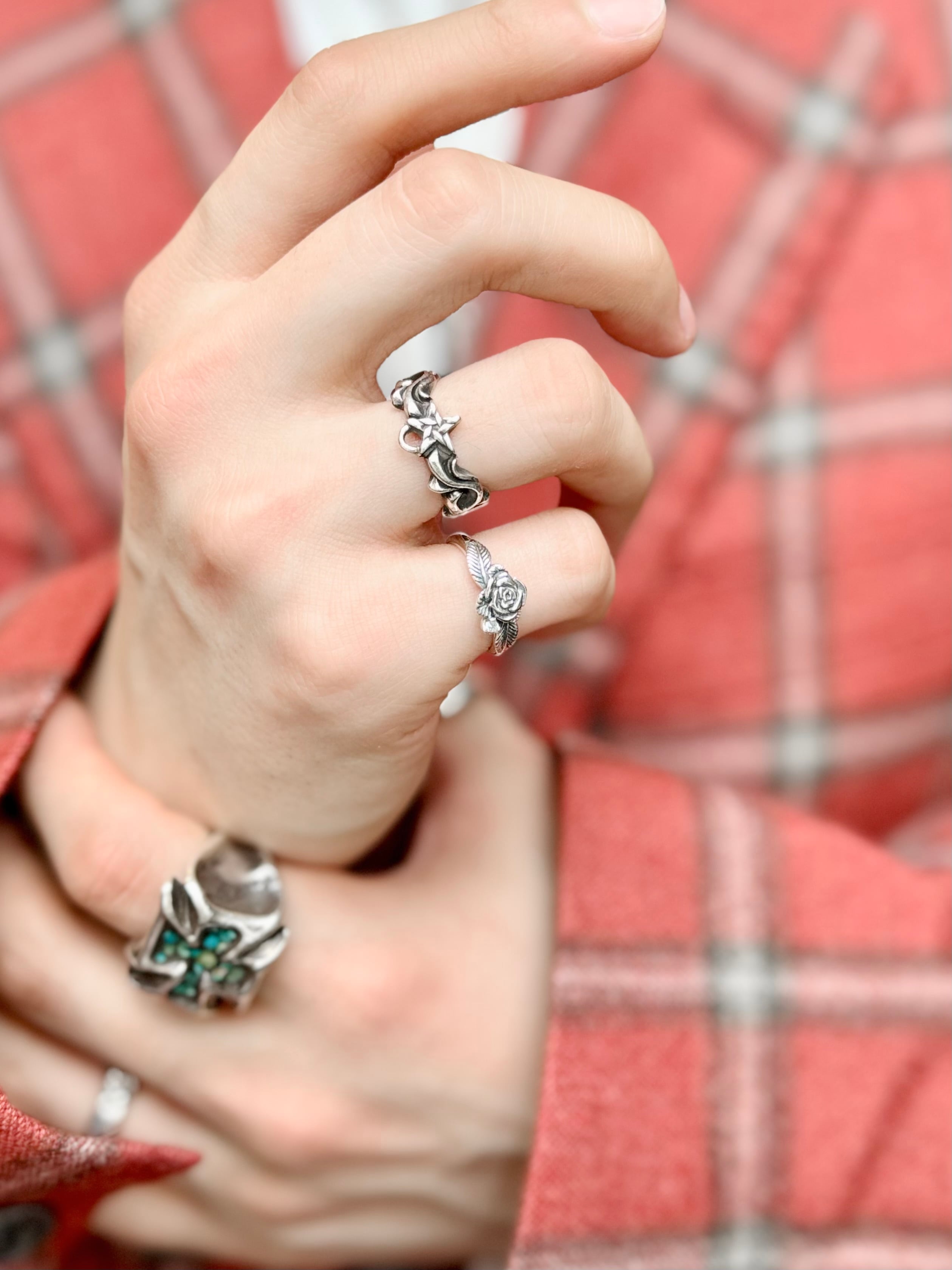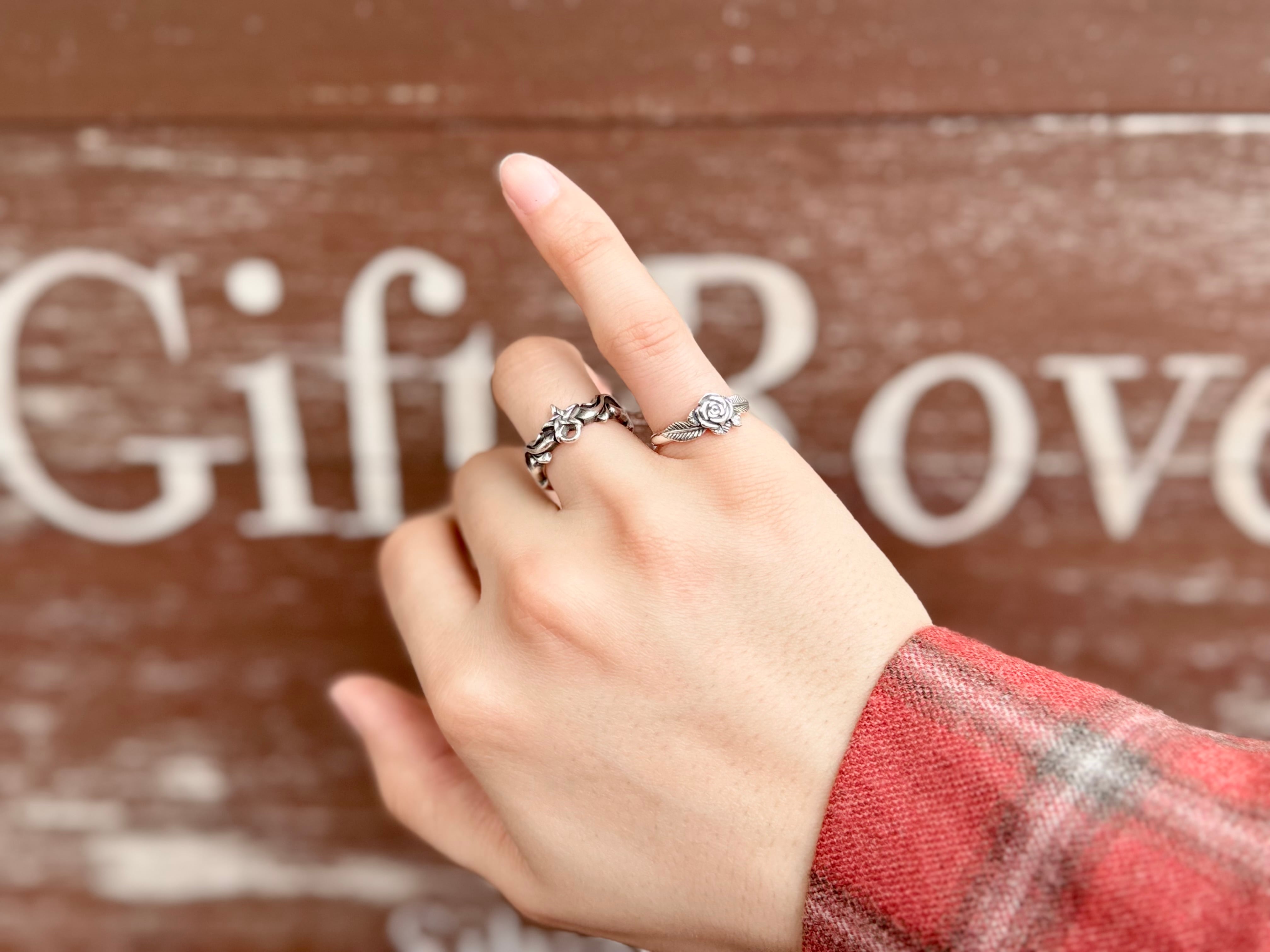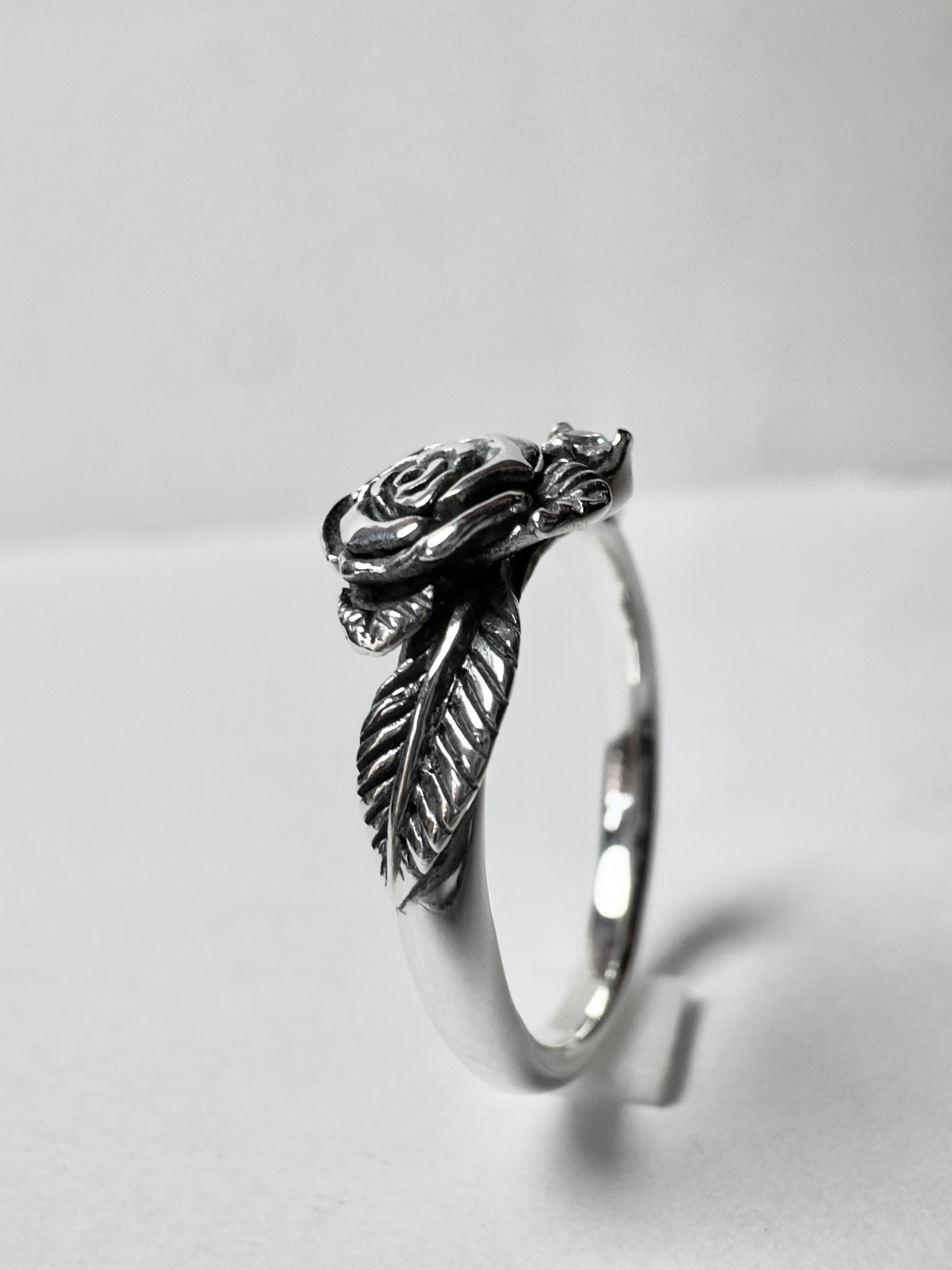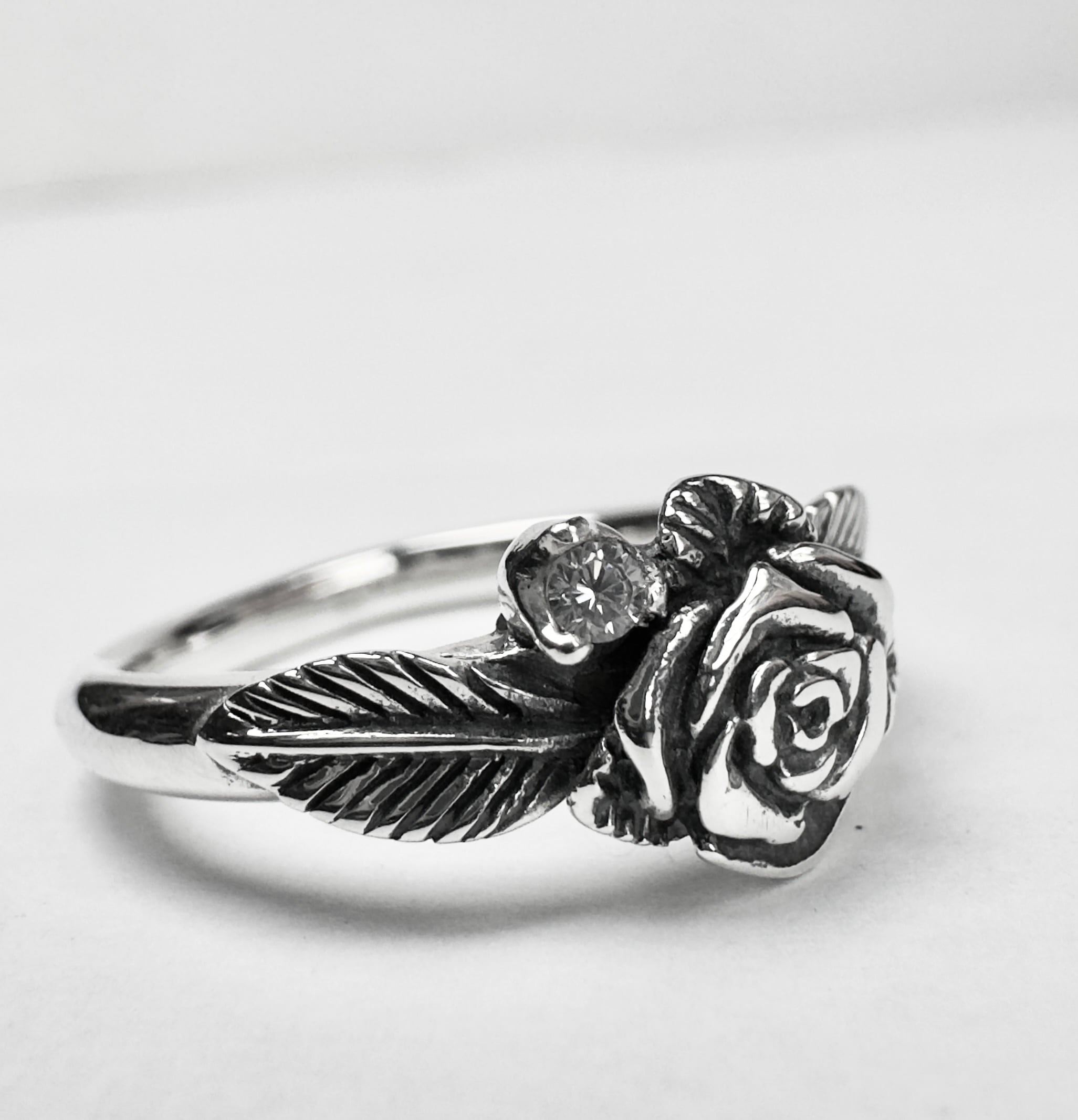 薔薇モチーフに小さなクリアジルコニアがさりげなくデザインされたリング。