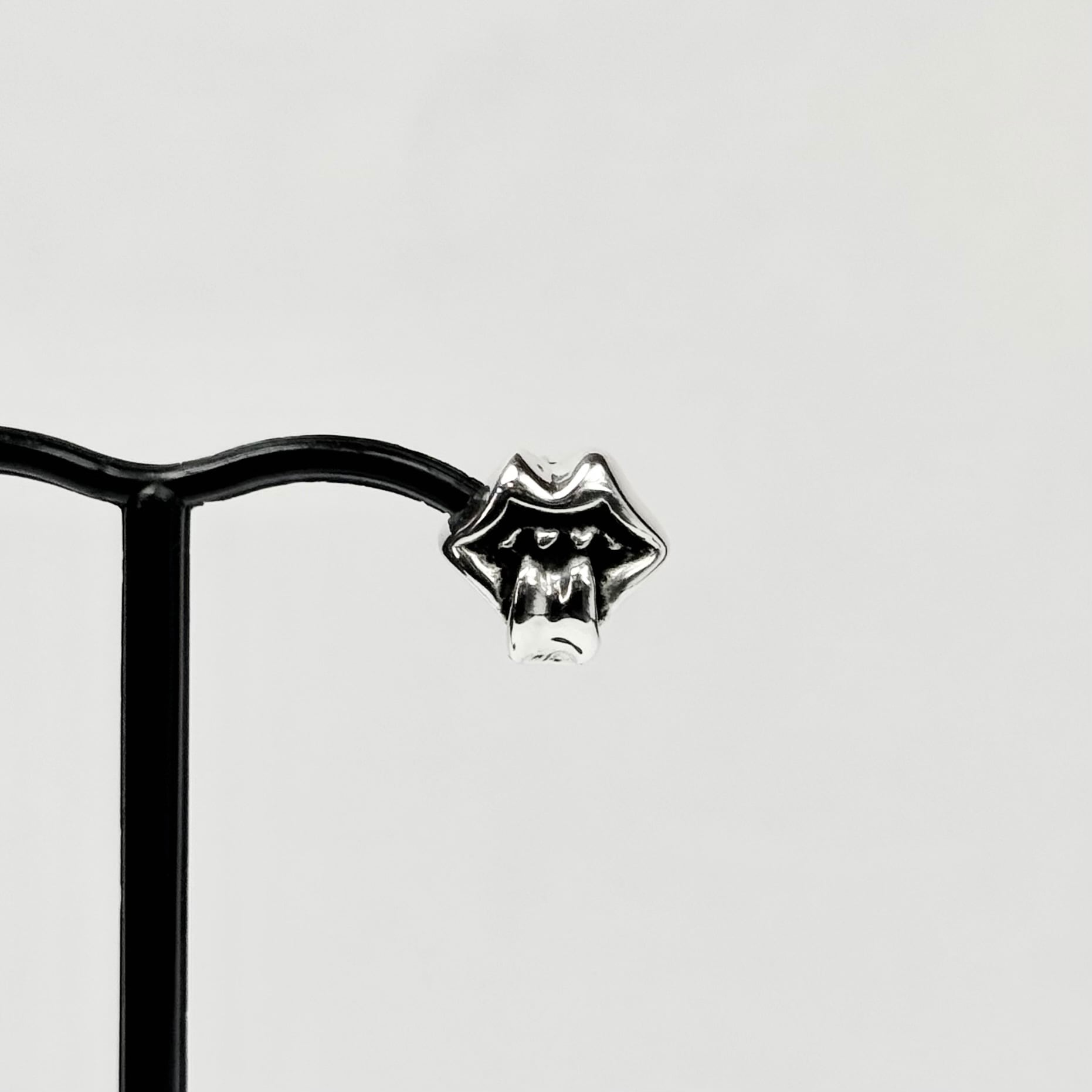 厚めの唇から大胆に舌を出しているファンキーなピアス。