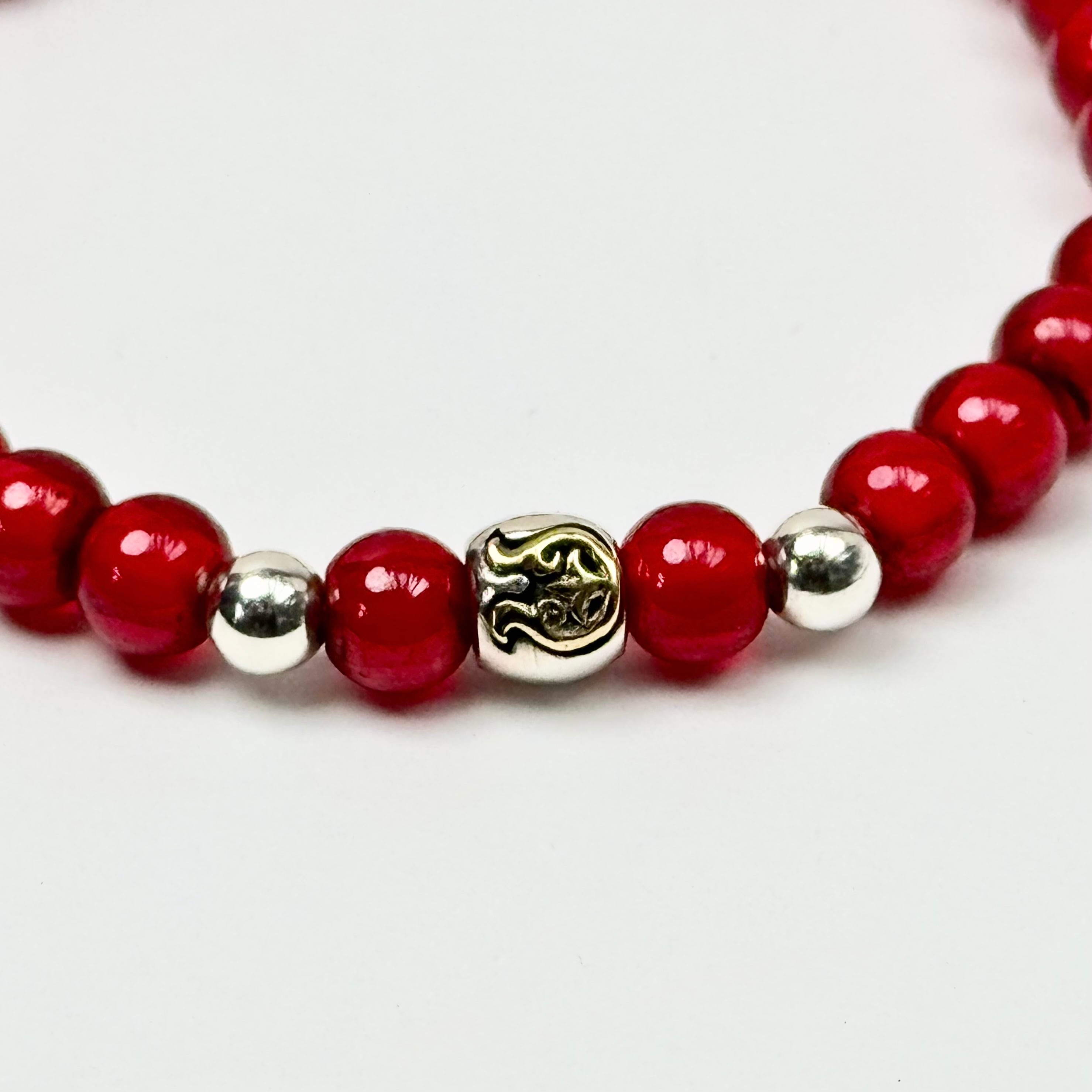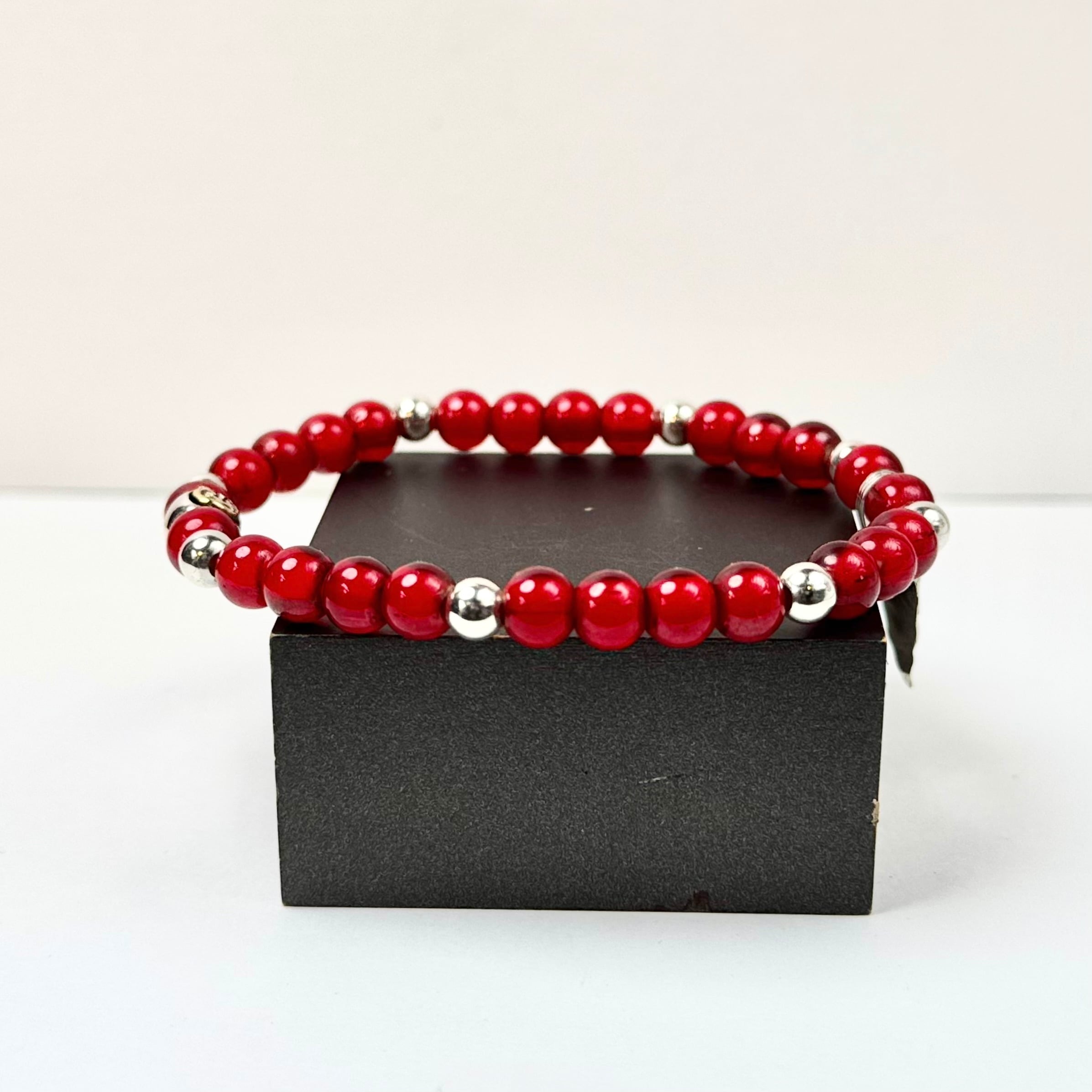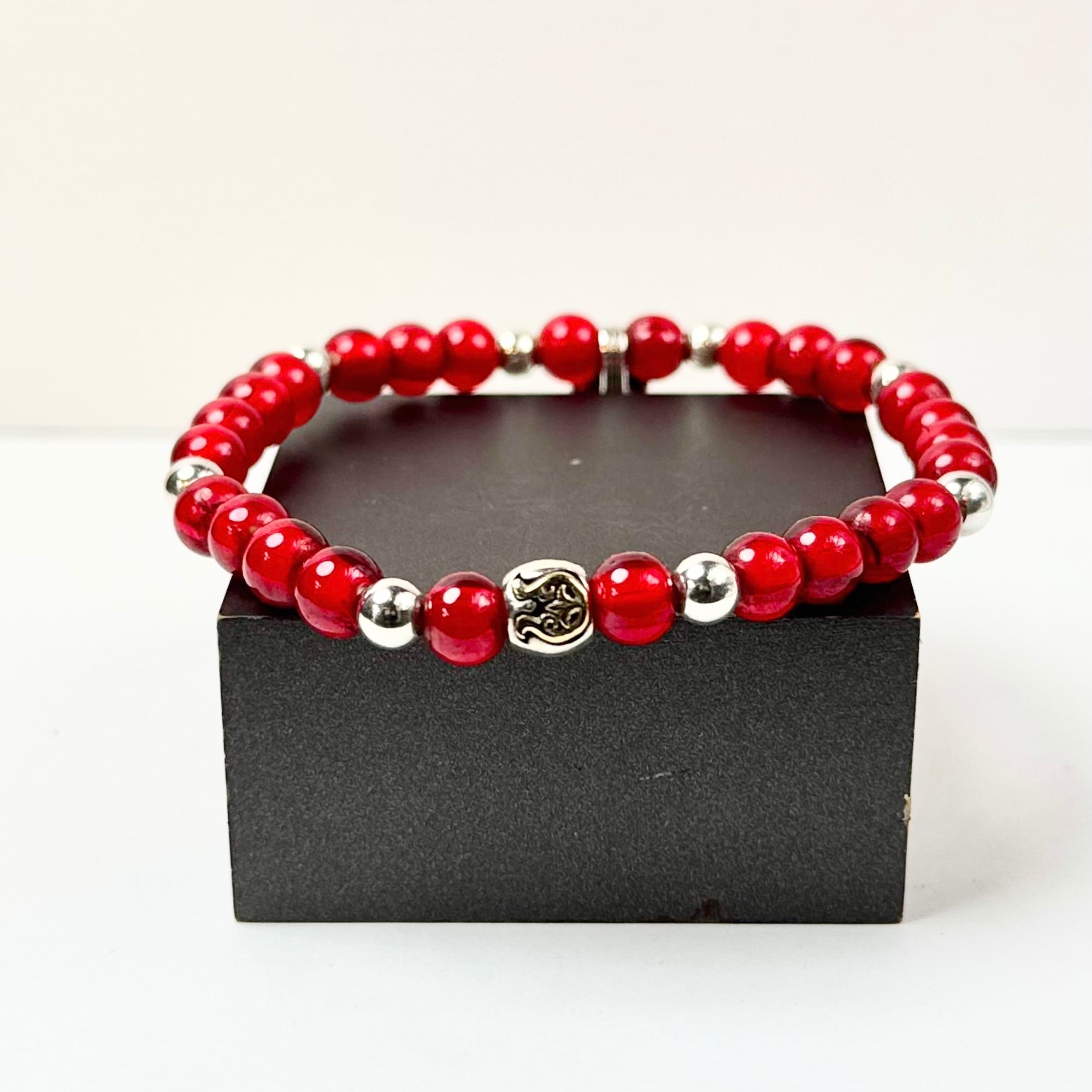 当店オリジナルブランドGift Roverの深い赤色のビーズにシルバーパーツとアローヘッドのトップを組み合わせたブレスレット。