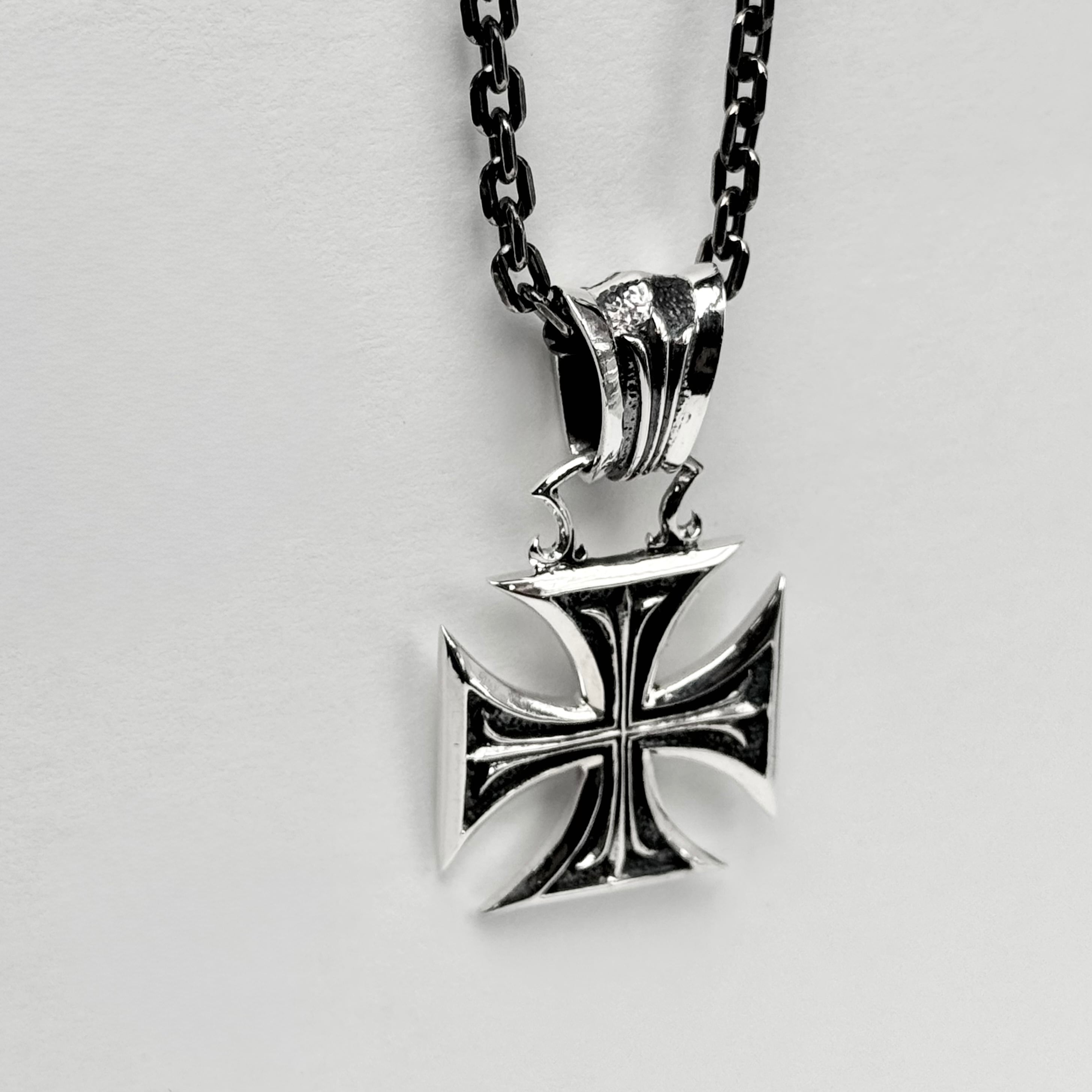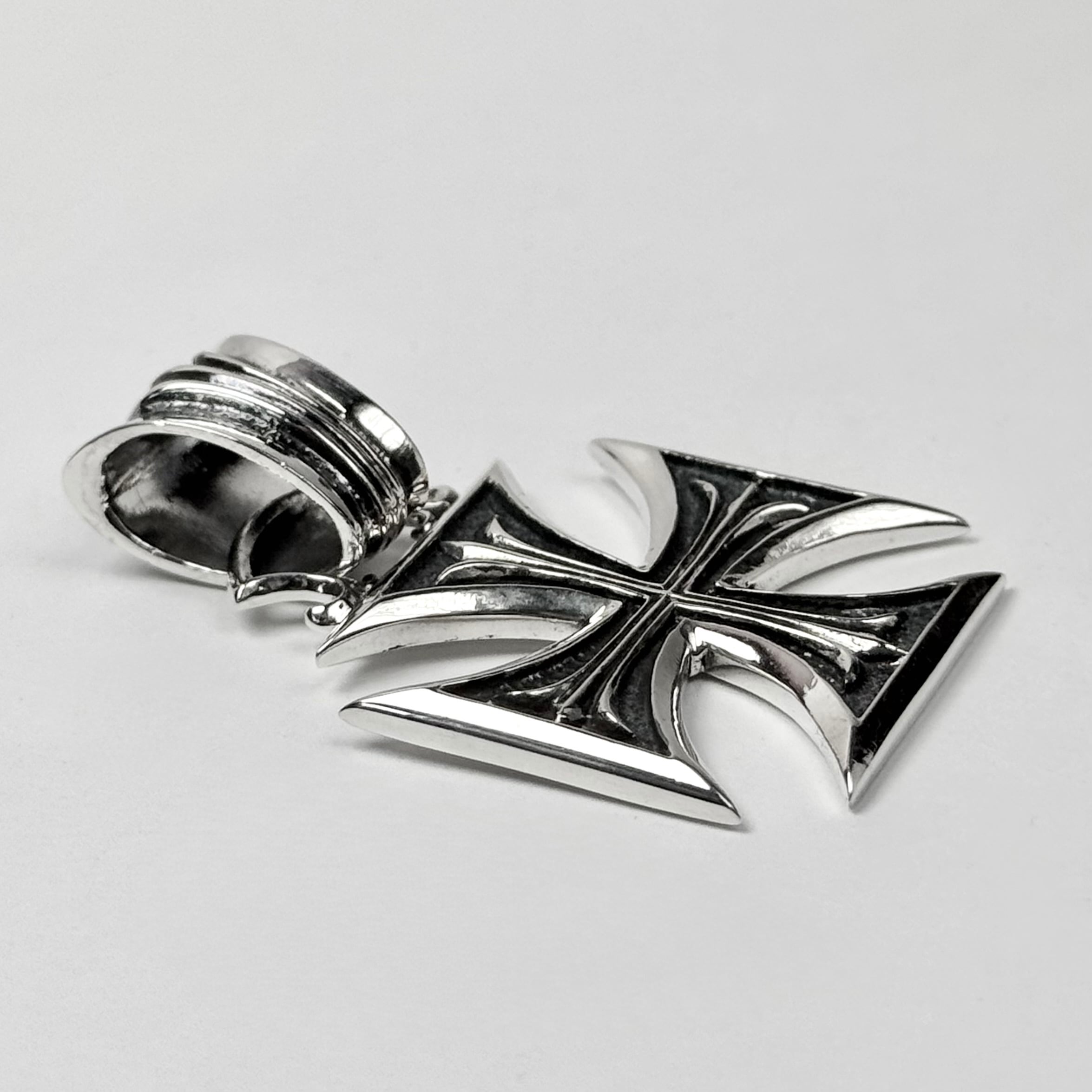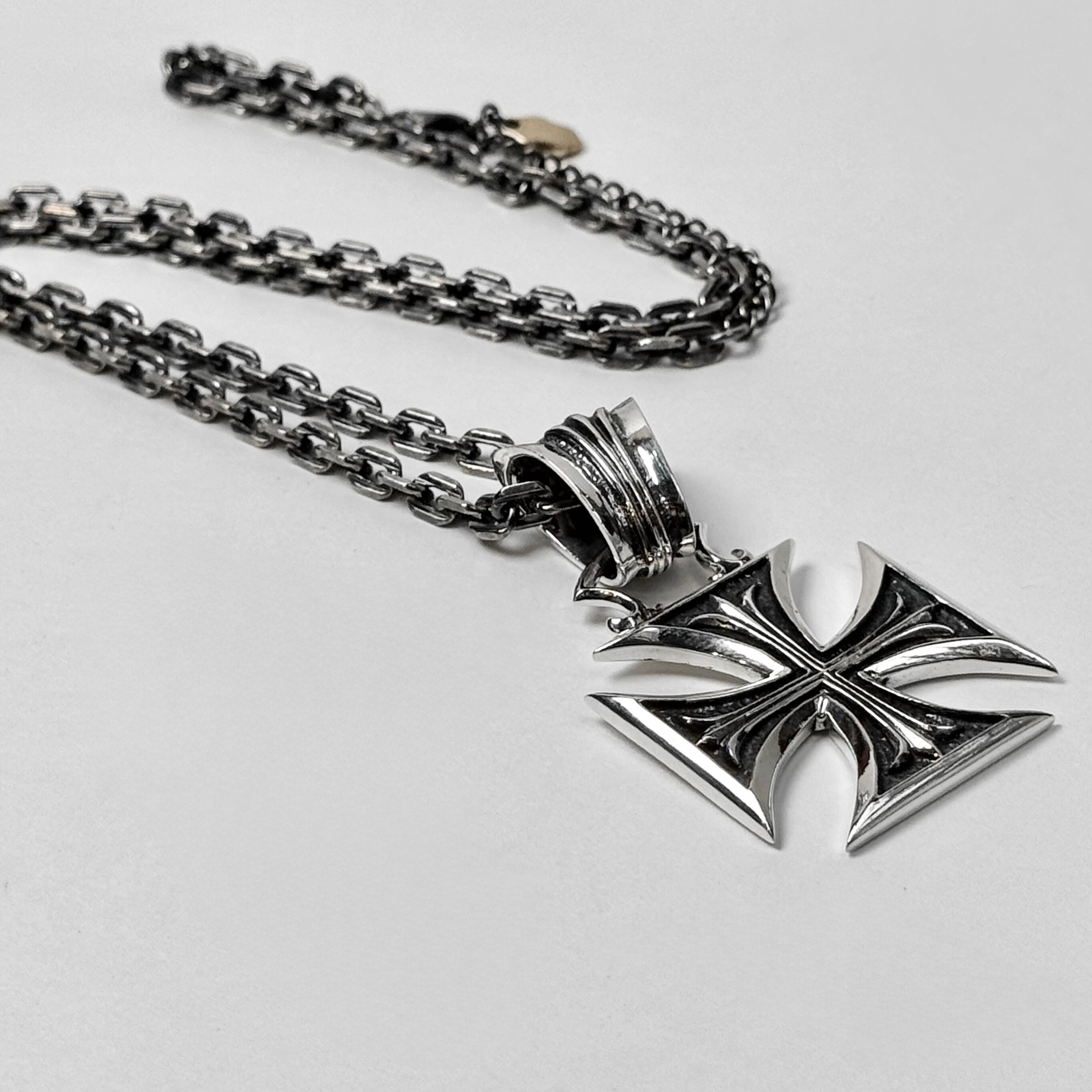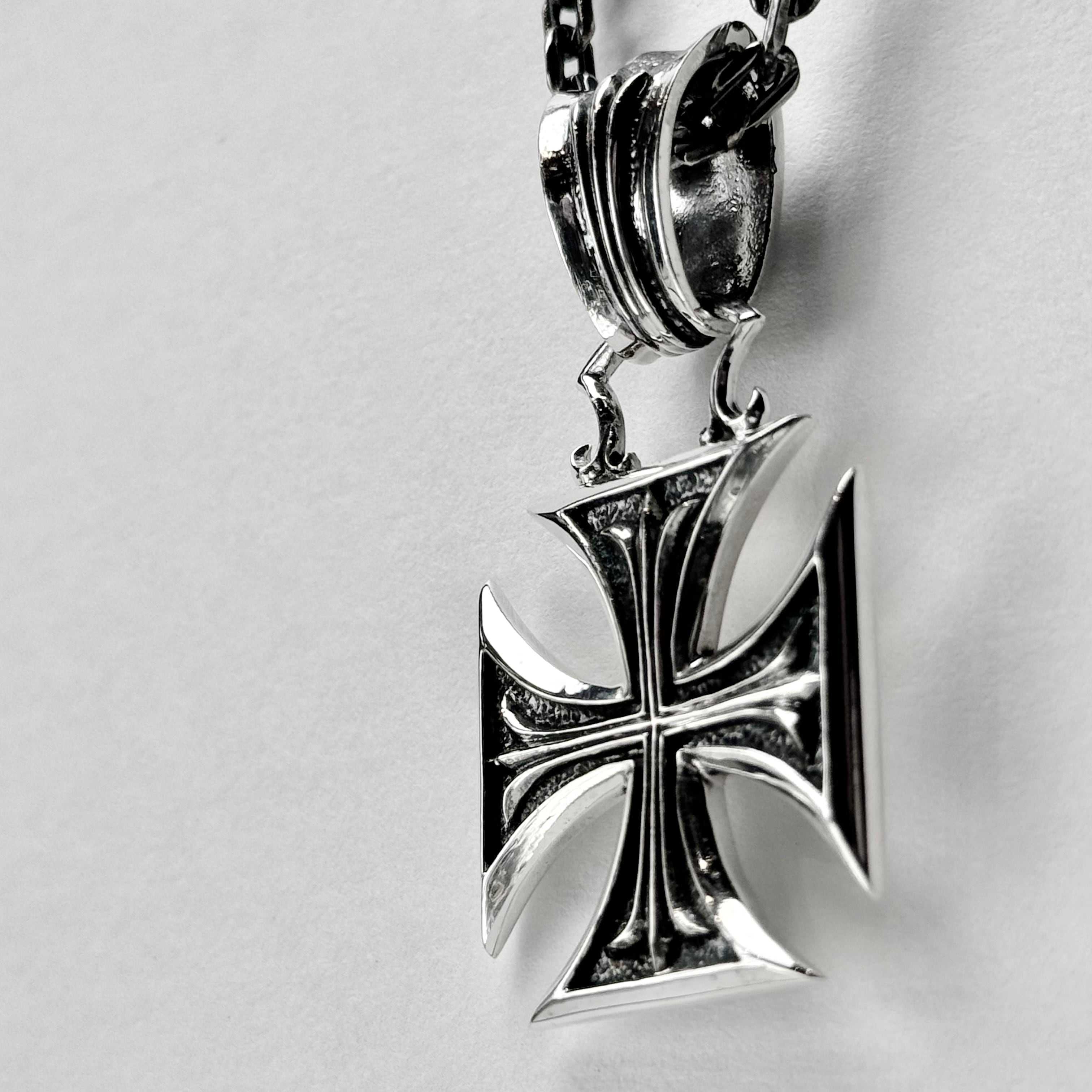 存在感抜群の大きさを誇るアイアンクロスの内側にゴシッククロスがデザインされたインパクトの強いペンダントトップ。