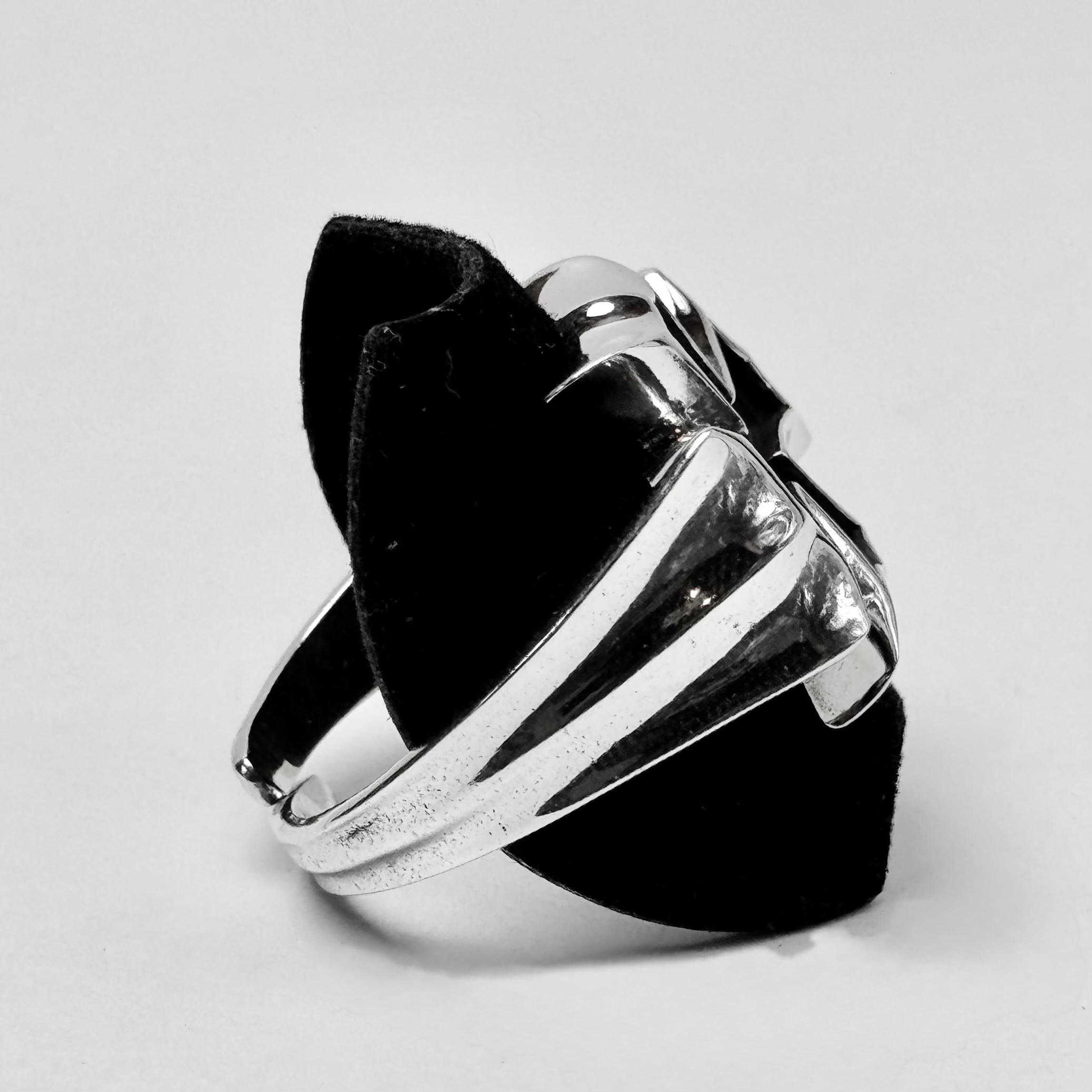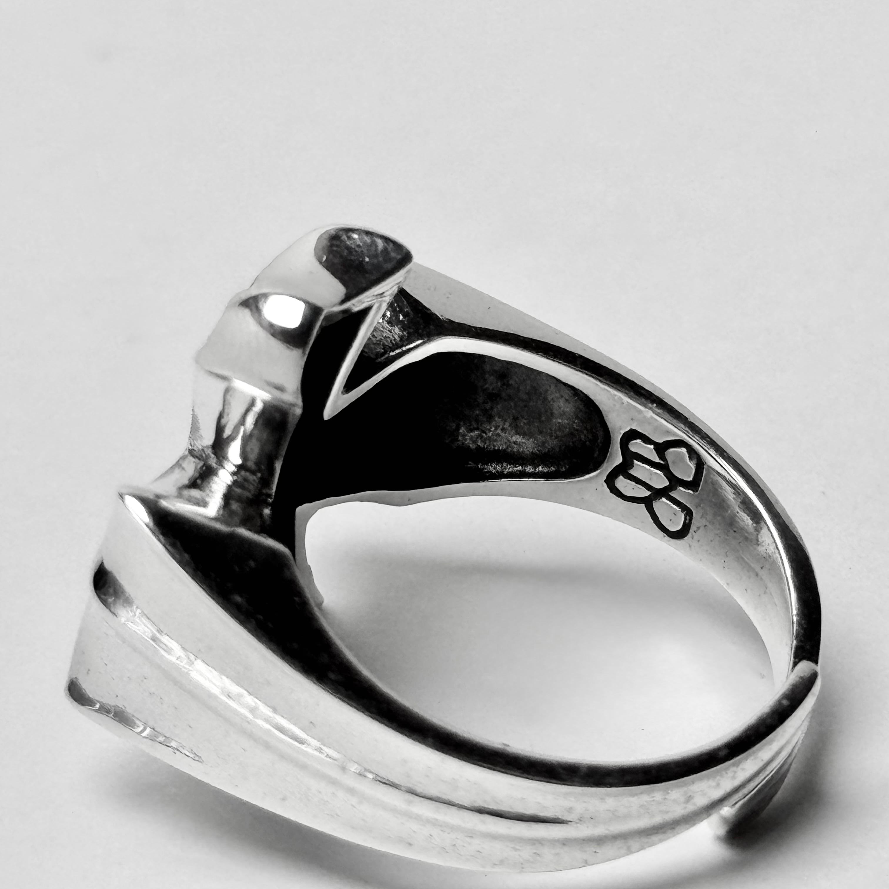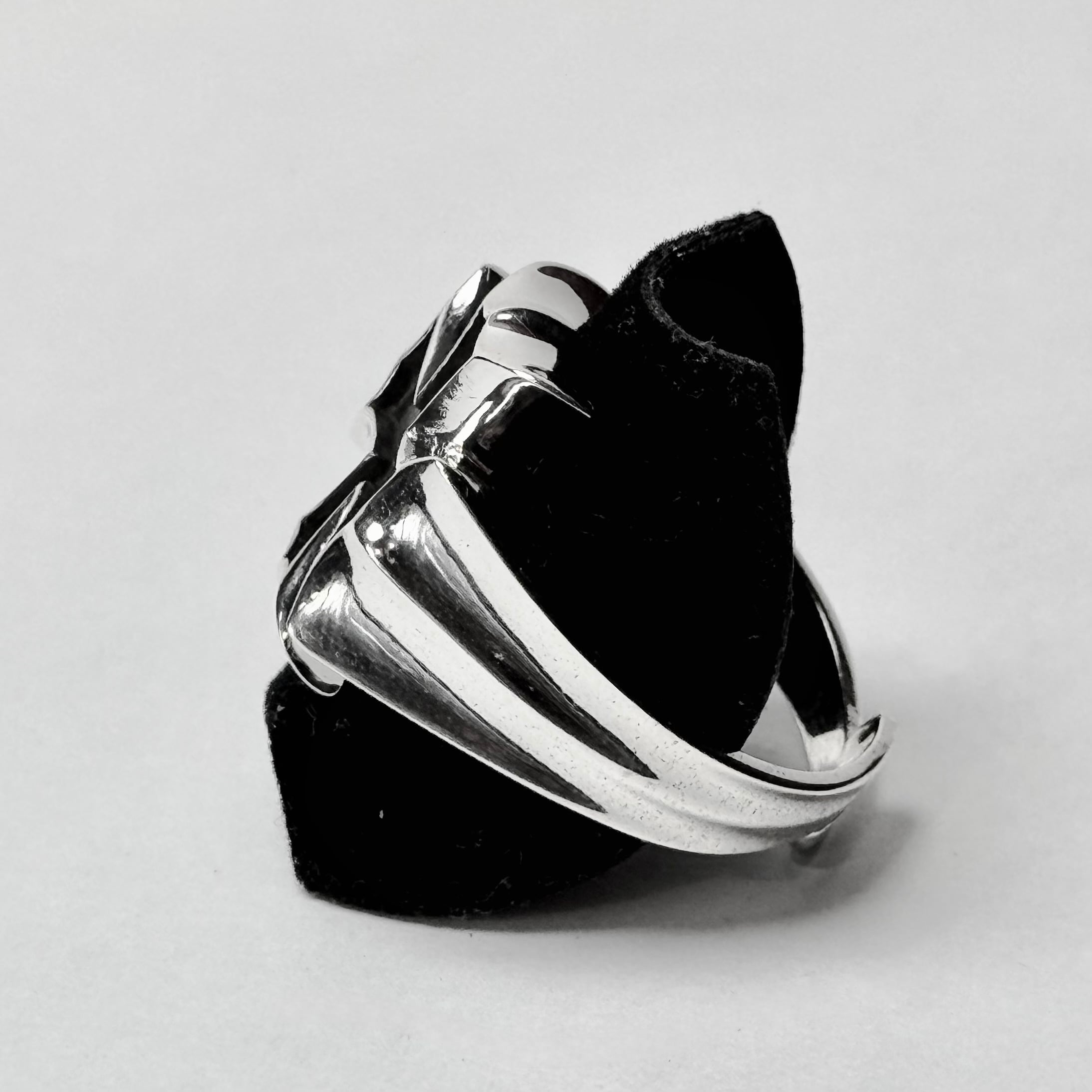 上辺に尖りを採用したデザインのアイアンクロスモチーフのリング。
