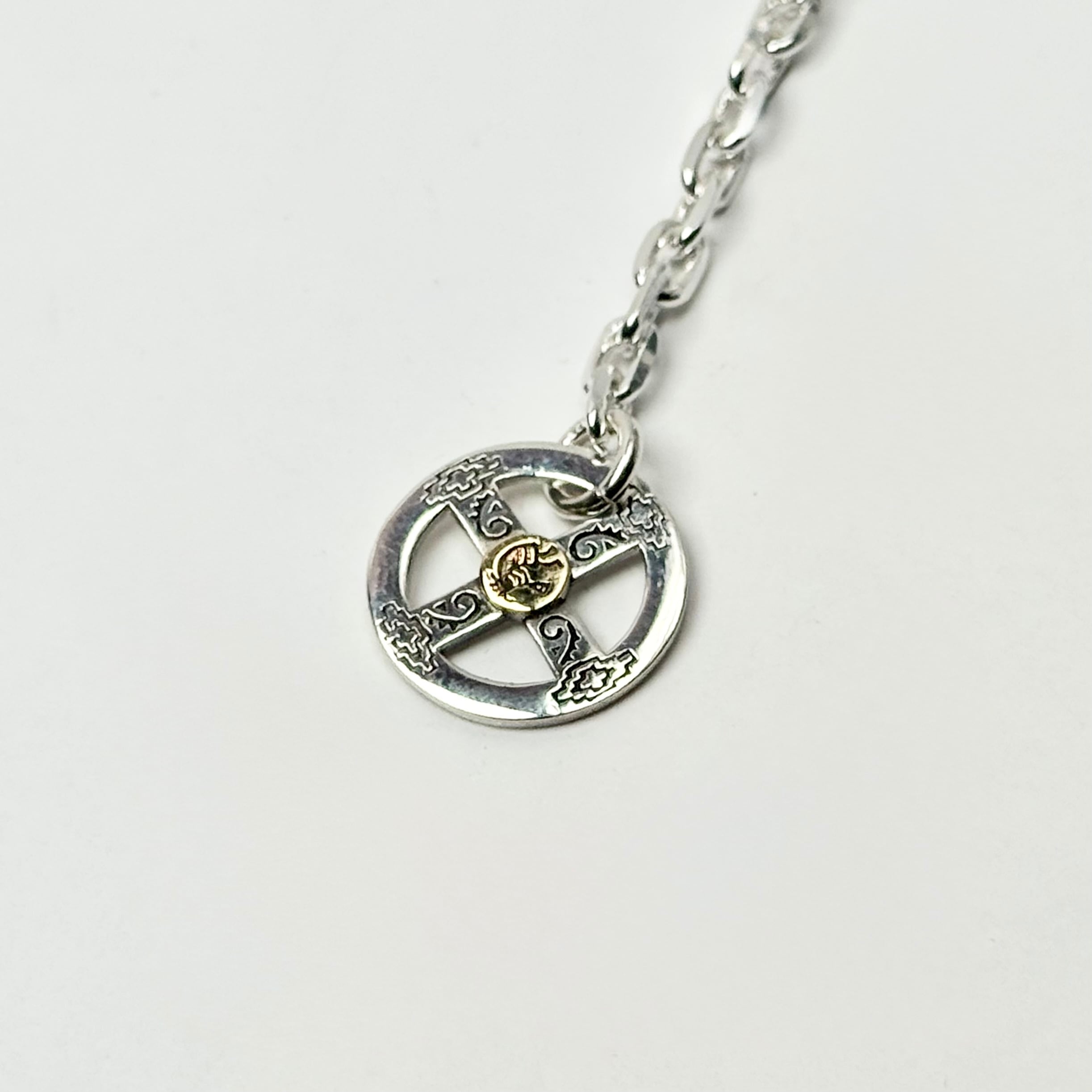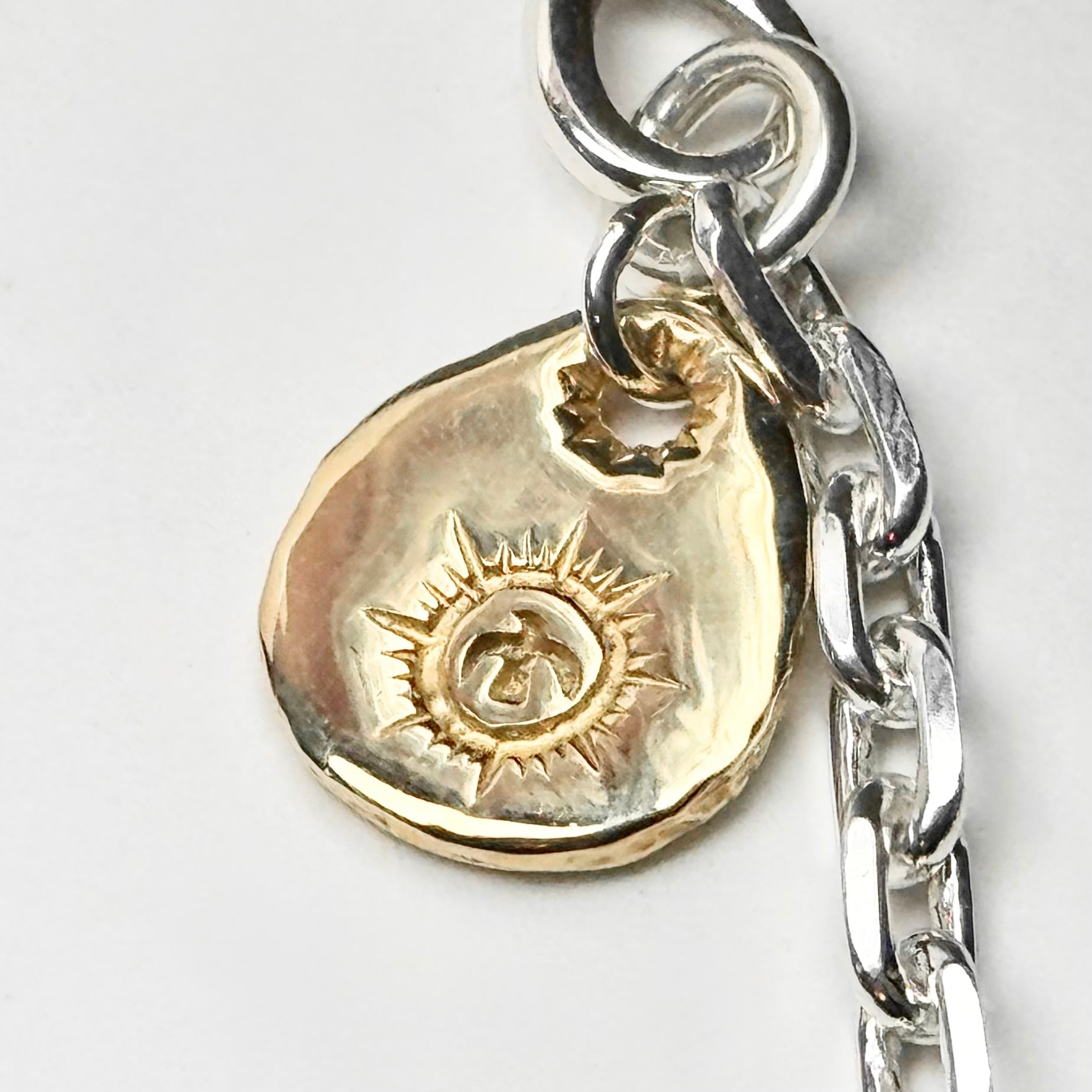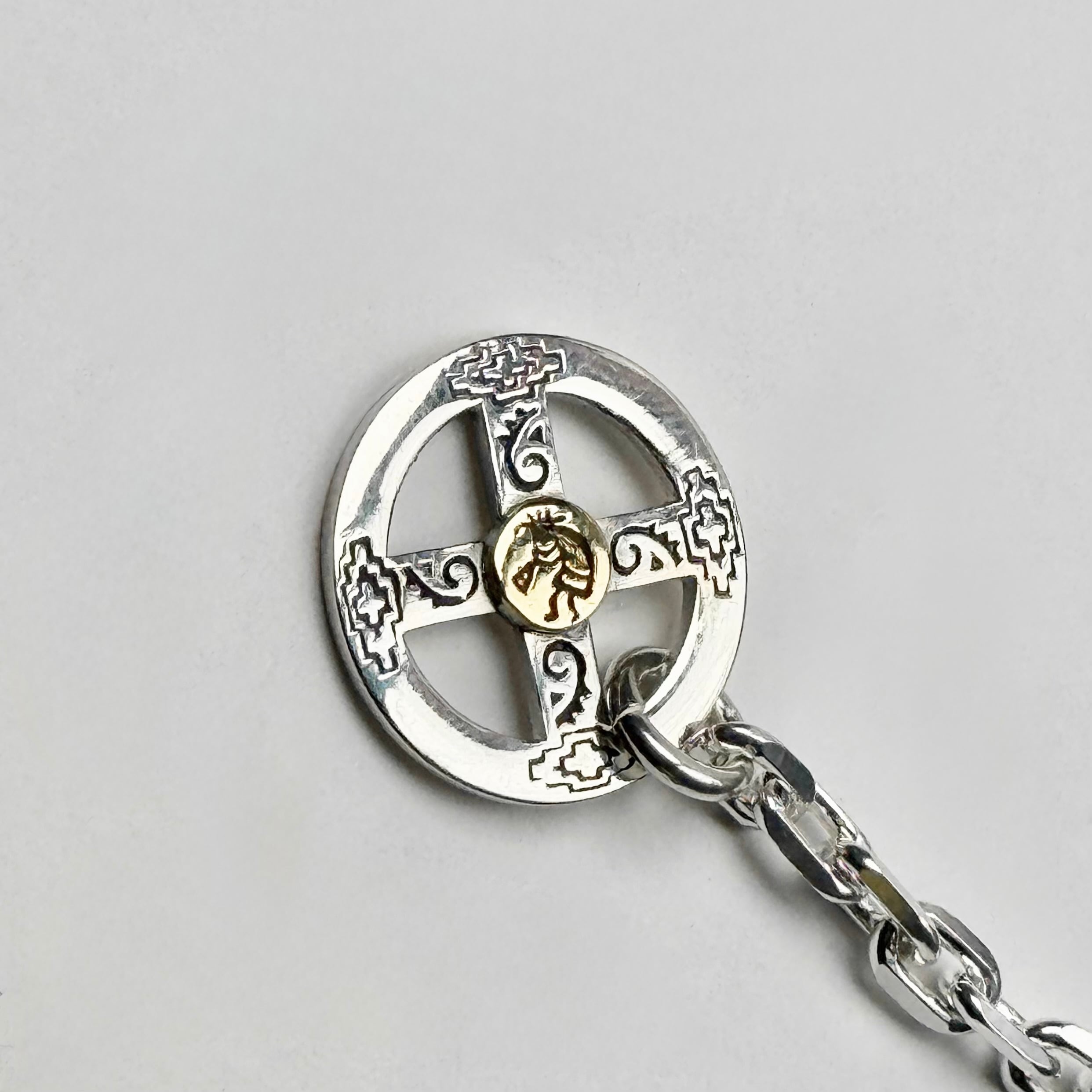 イーグルフックに付いている真鍮コインにもイーグルがデザインされており、メディスンホイールにはココペリがデザインされております。