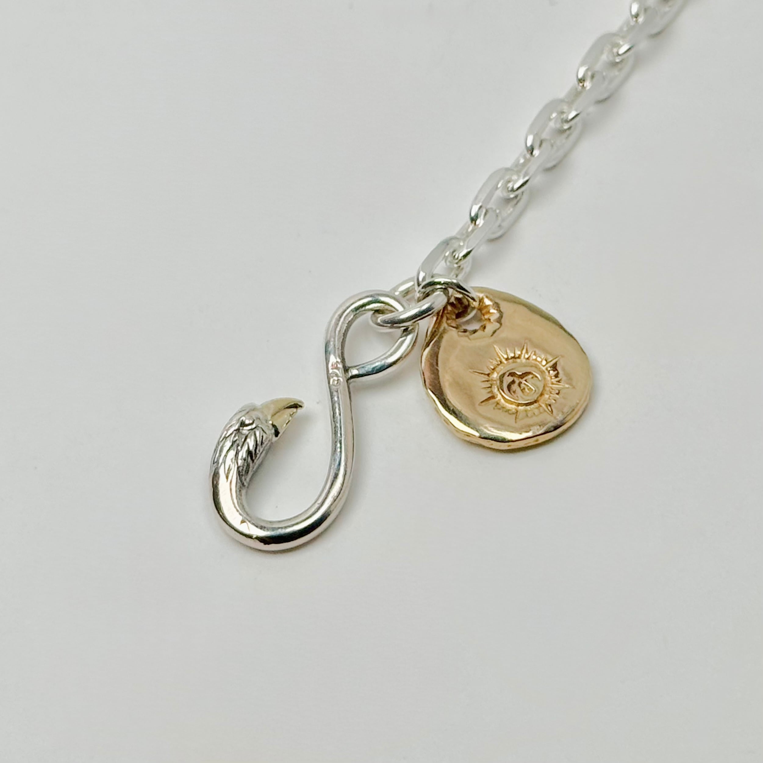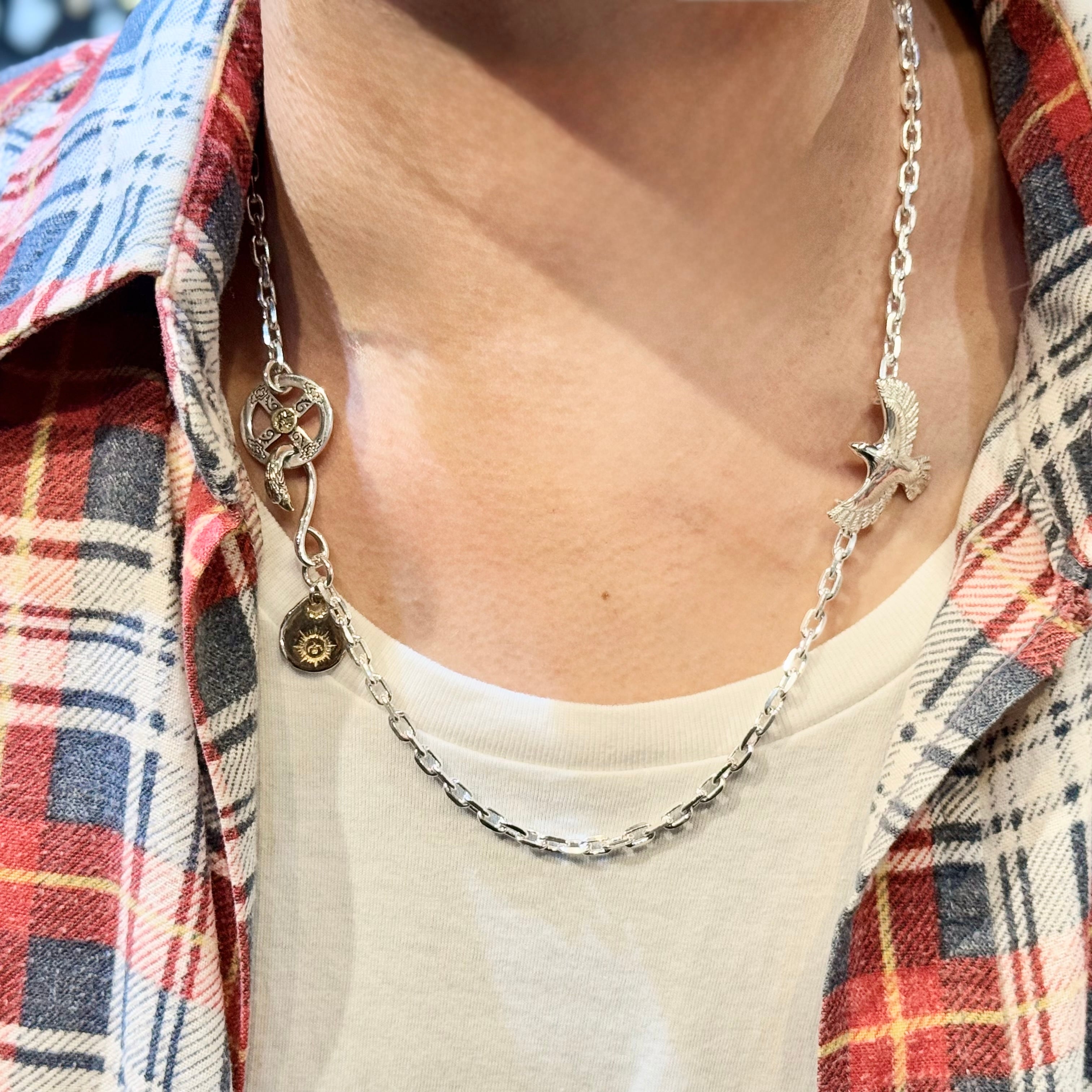 角あずきのネックレスチェーンにイーグルパーツとイーグルフックを組み合わせたインディアンジュエリー好きの方必見のネックレスチェーン。