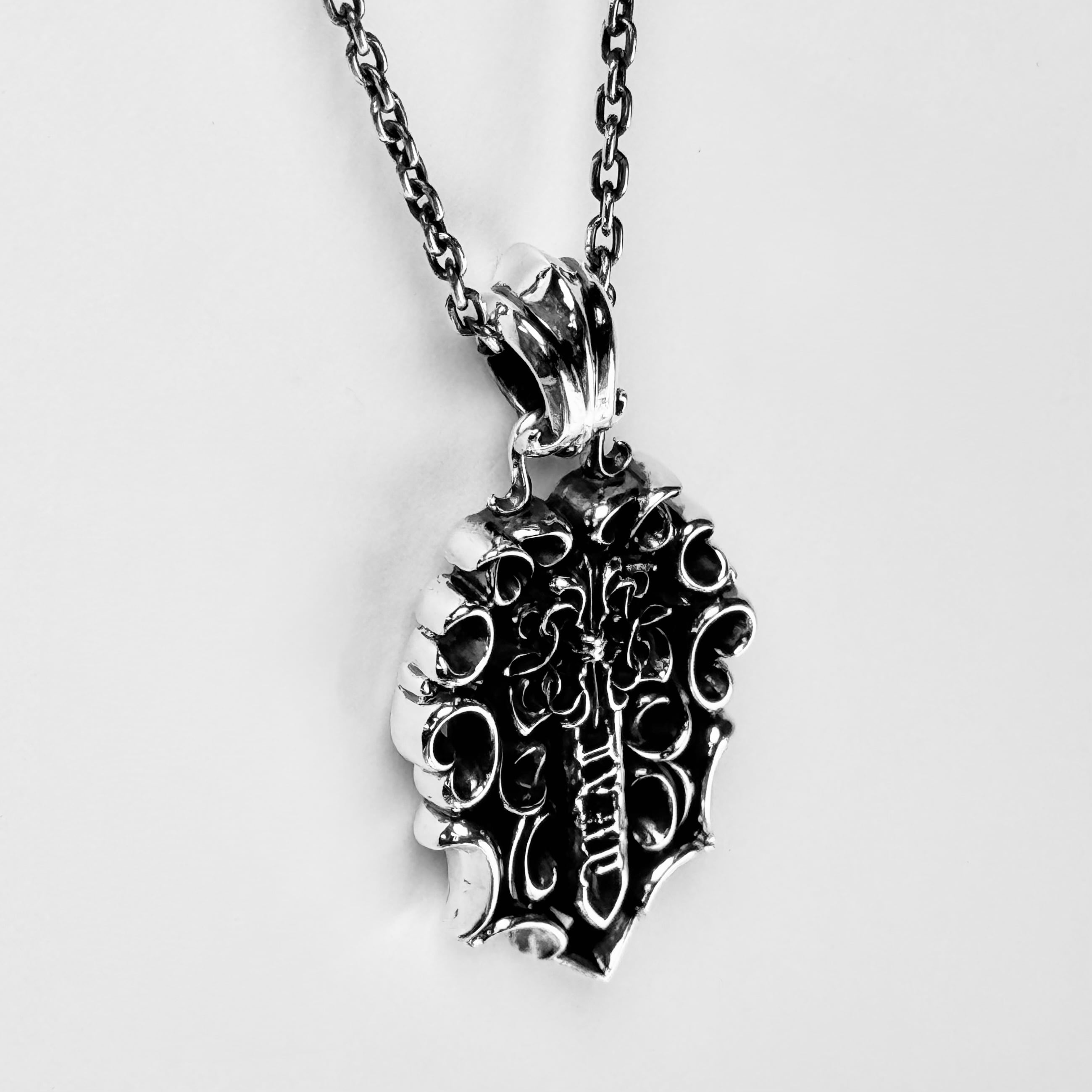 荘厳な彫刻でダガーを包み込むペンダントトップ。