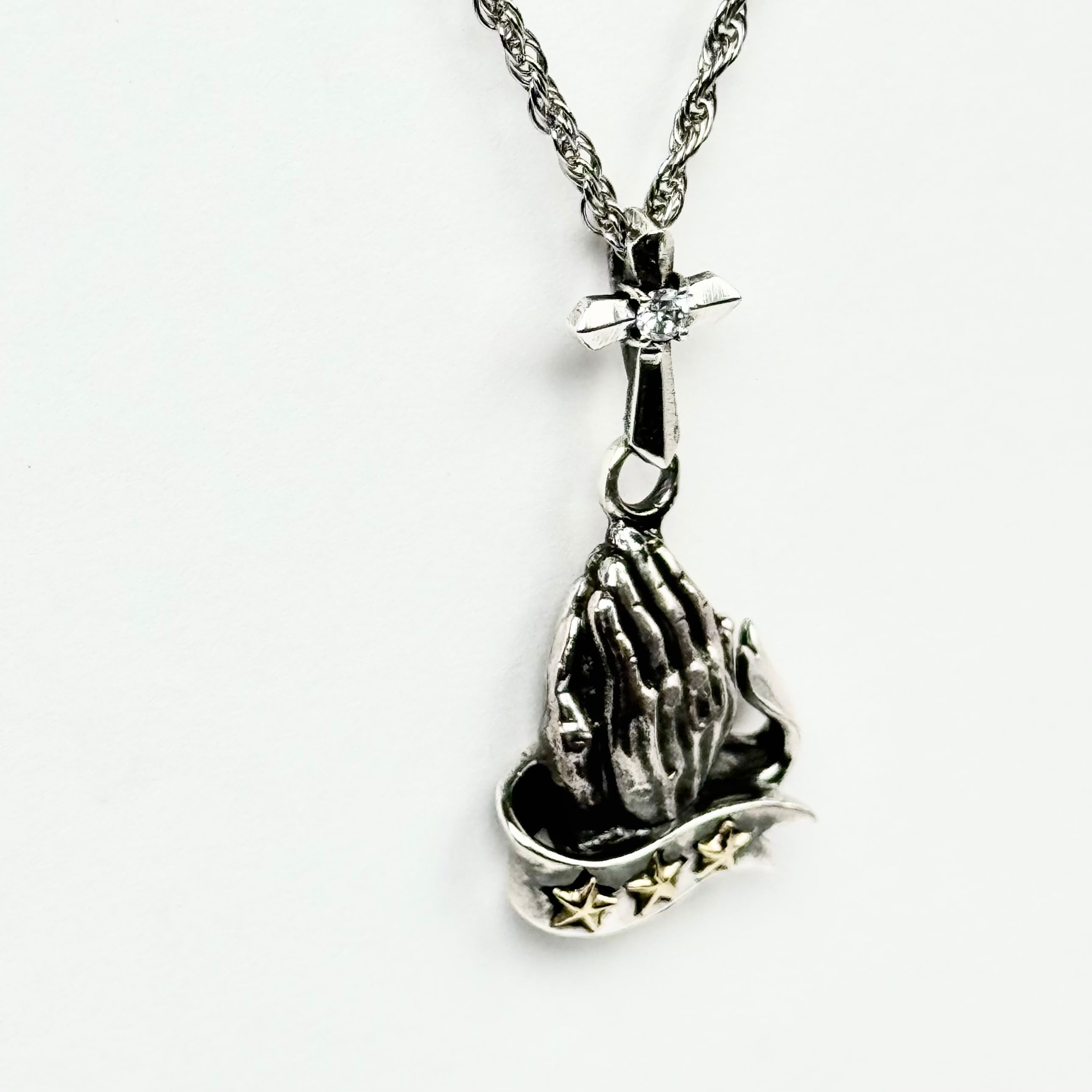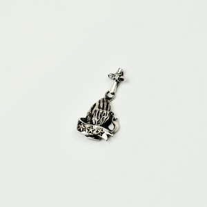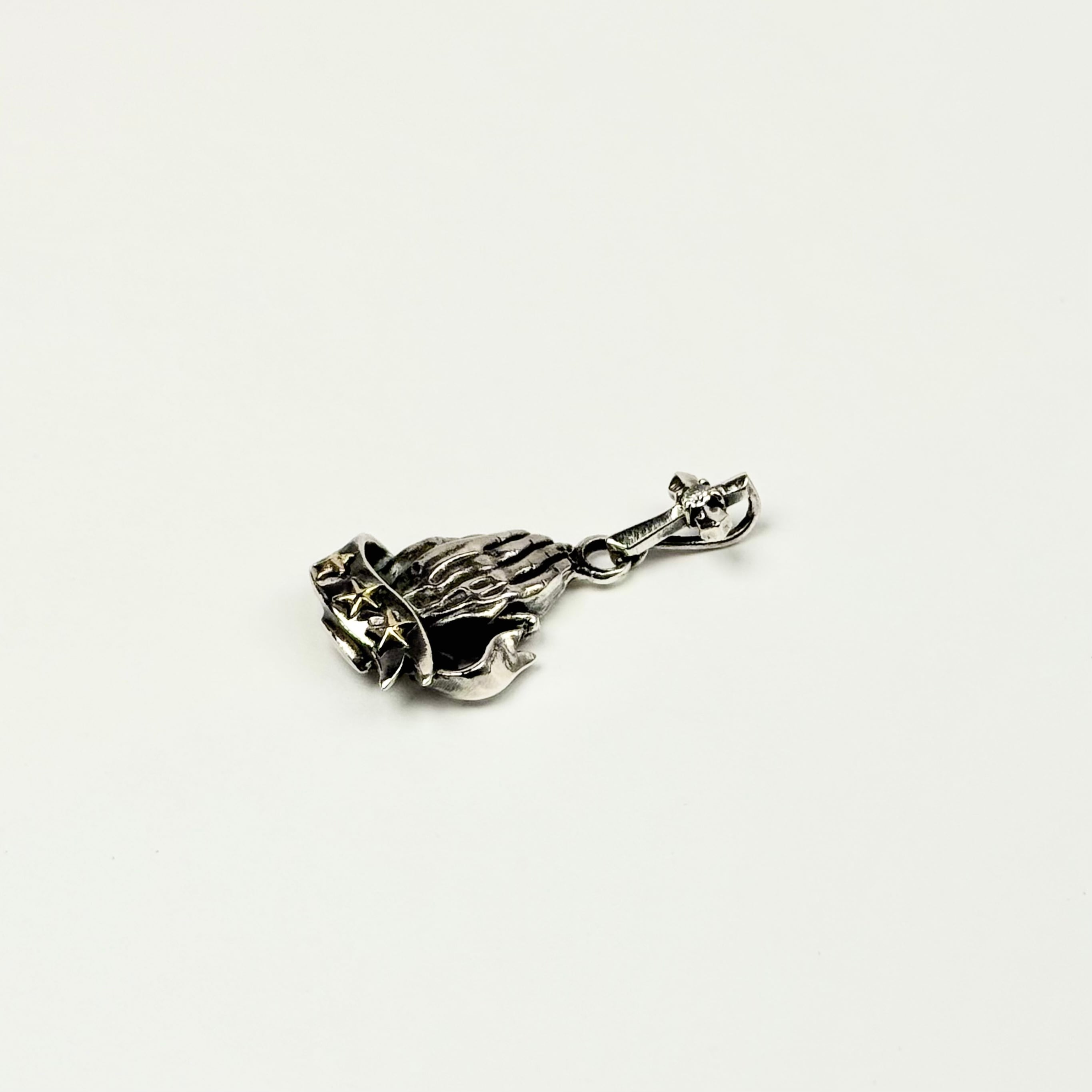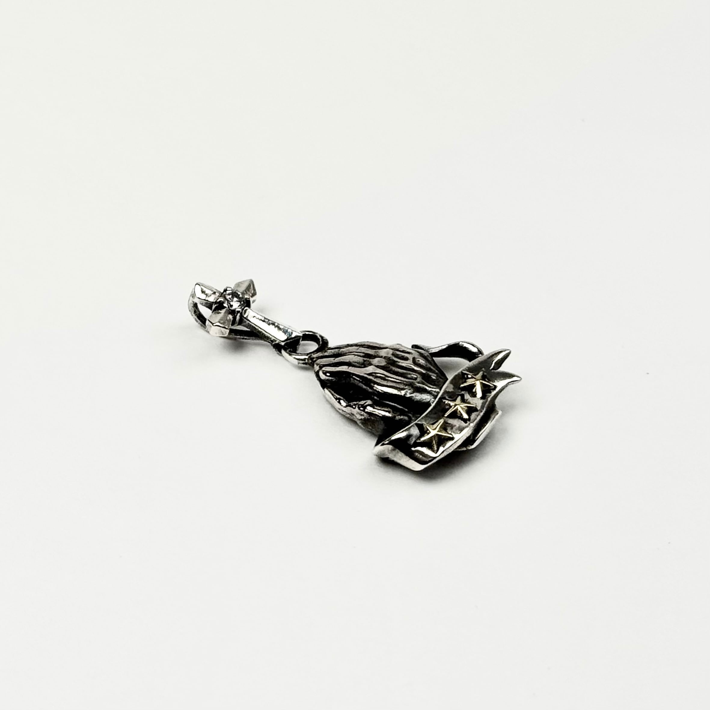 祈りの手をモチーフにリボンと星がデザインされたトップ。