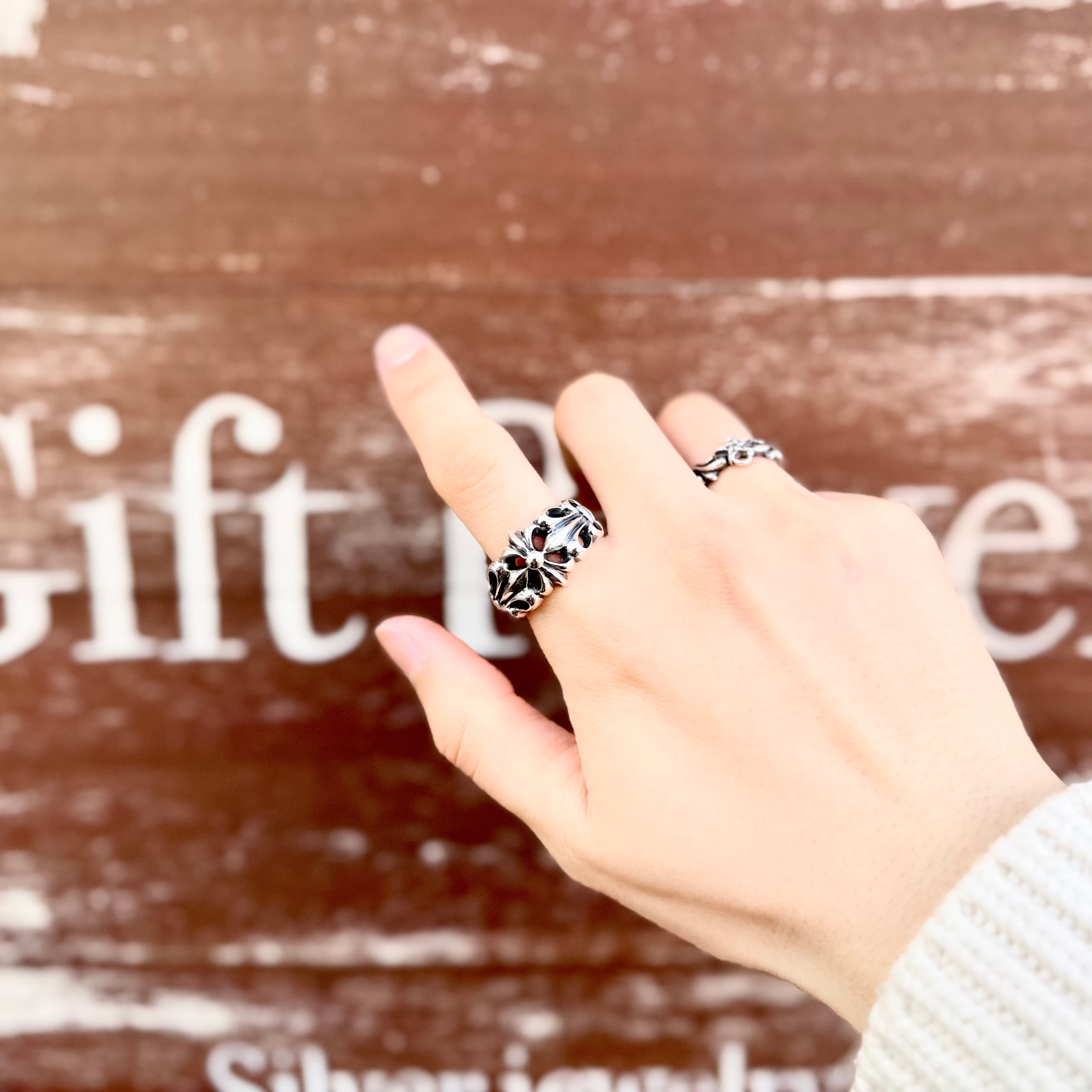 存在感の大きい幅で尚且つモチーフのひとつひとつも大きいので指のメインを飾るような一品となっております。