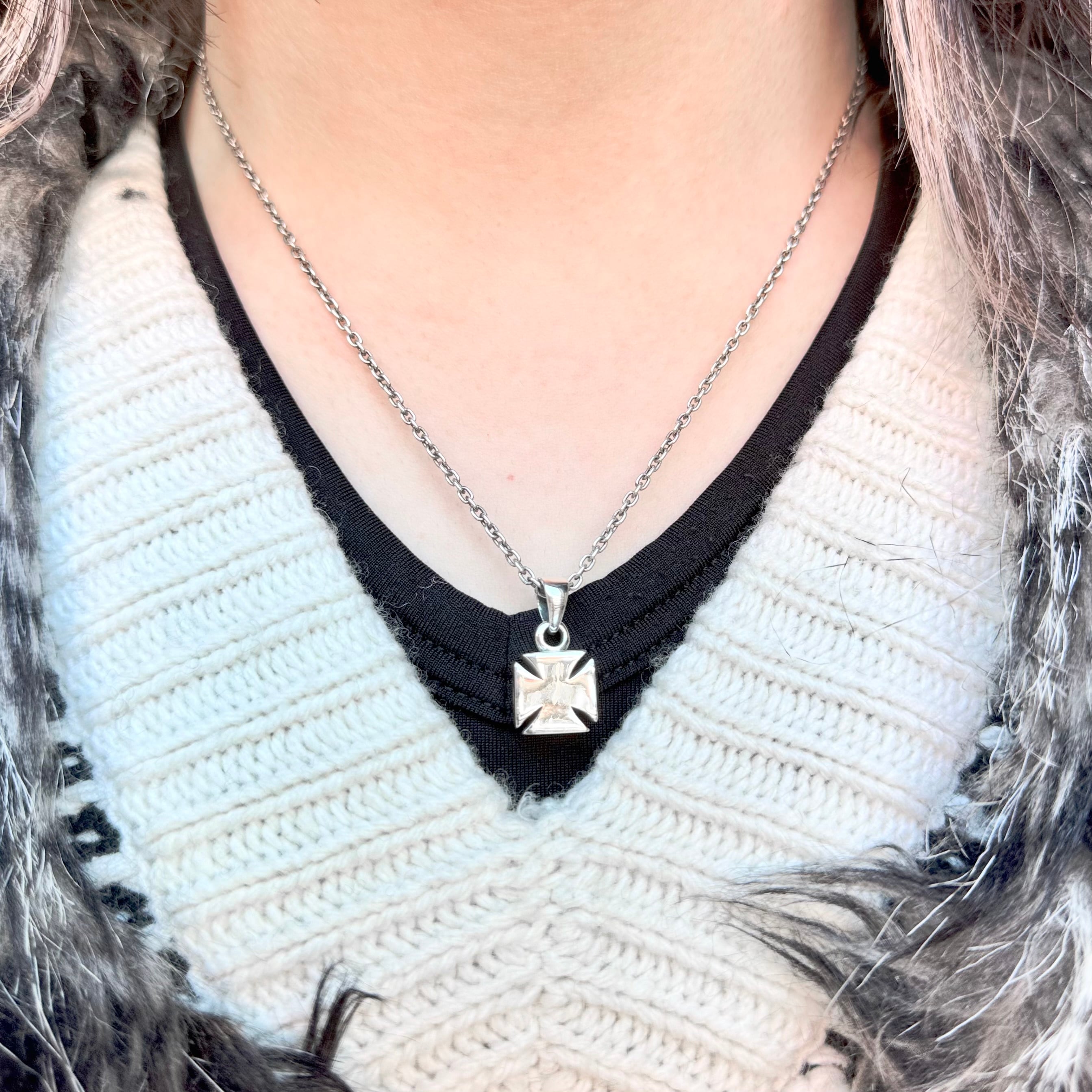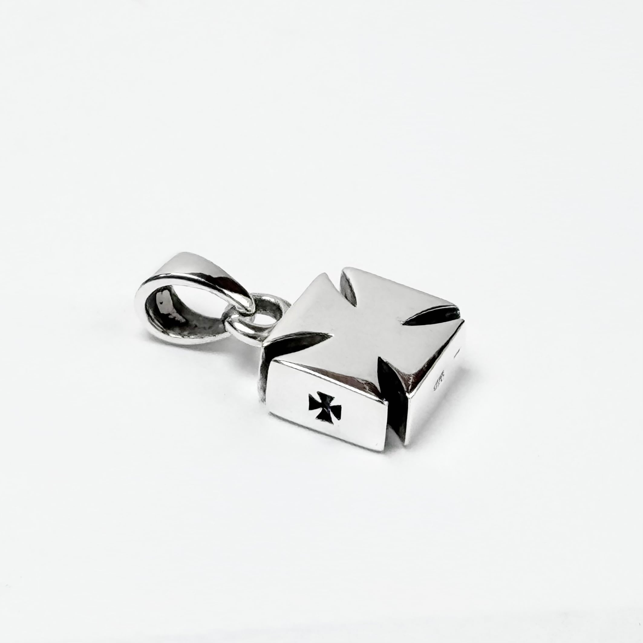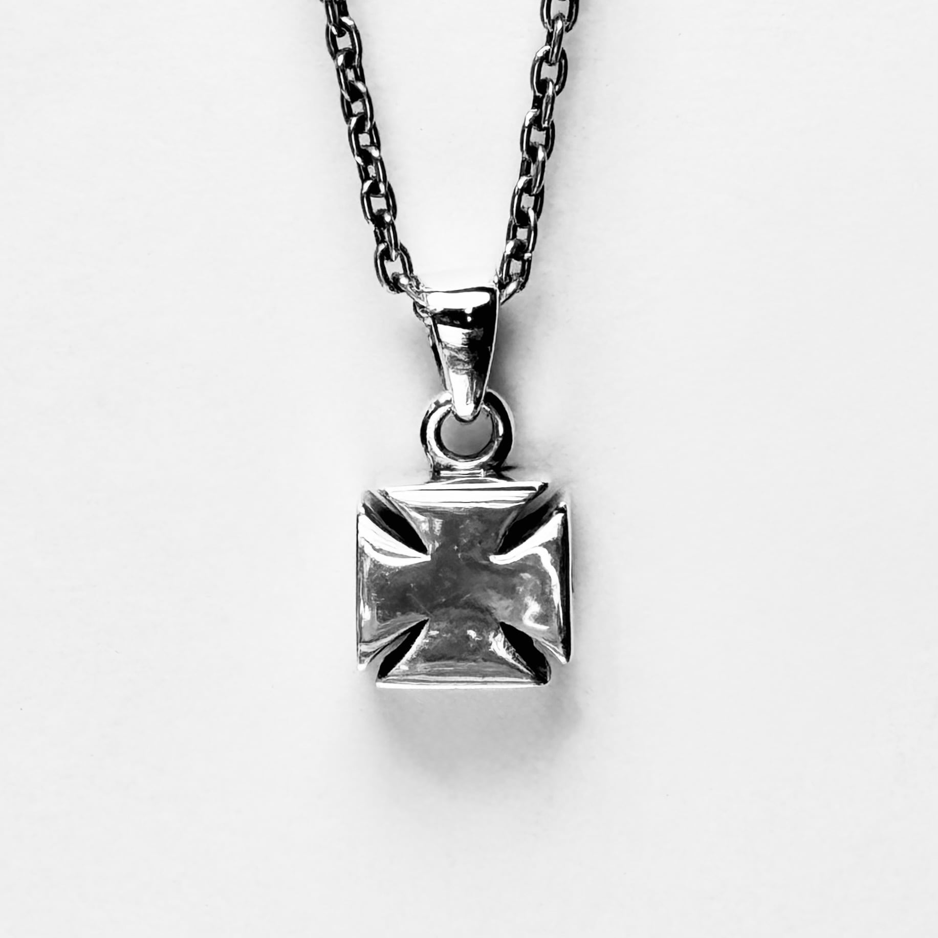 ふっくらとしたデザインのアイアンクロスモチーフのペンダント。