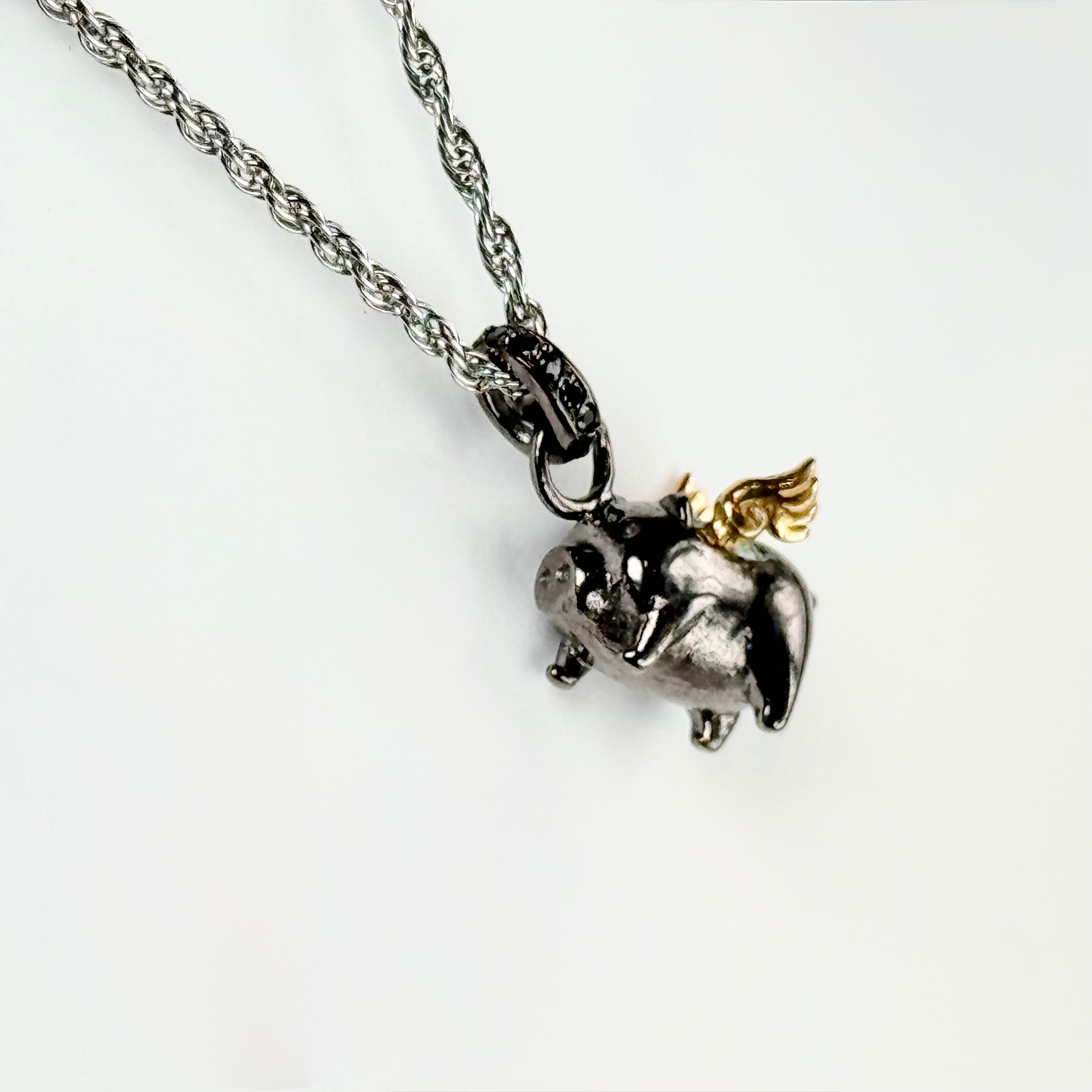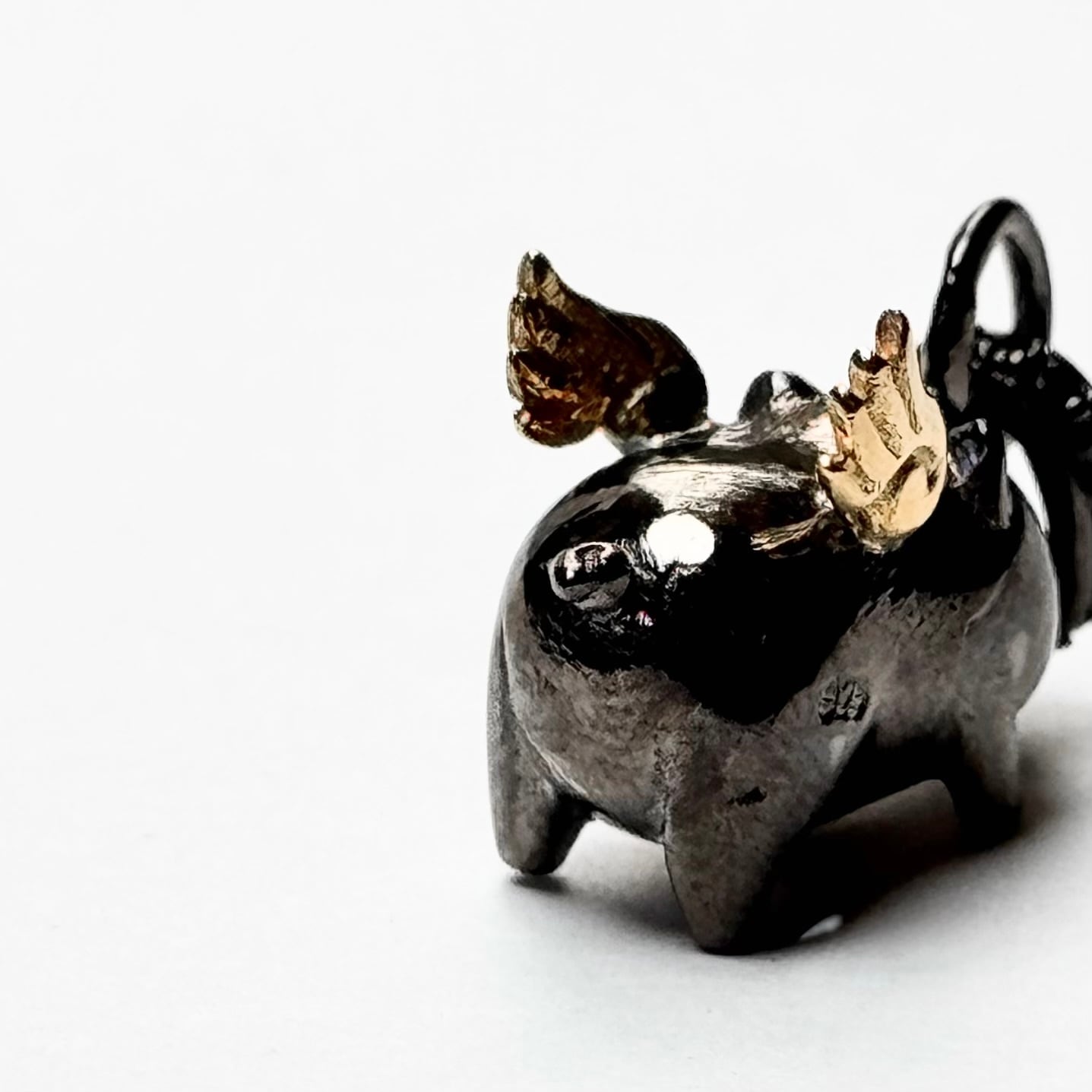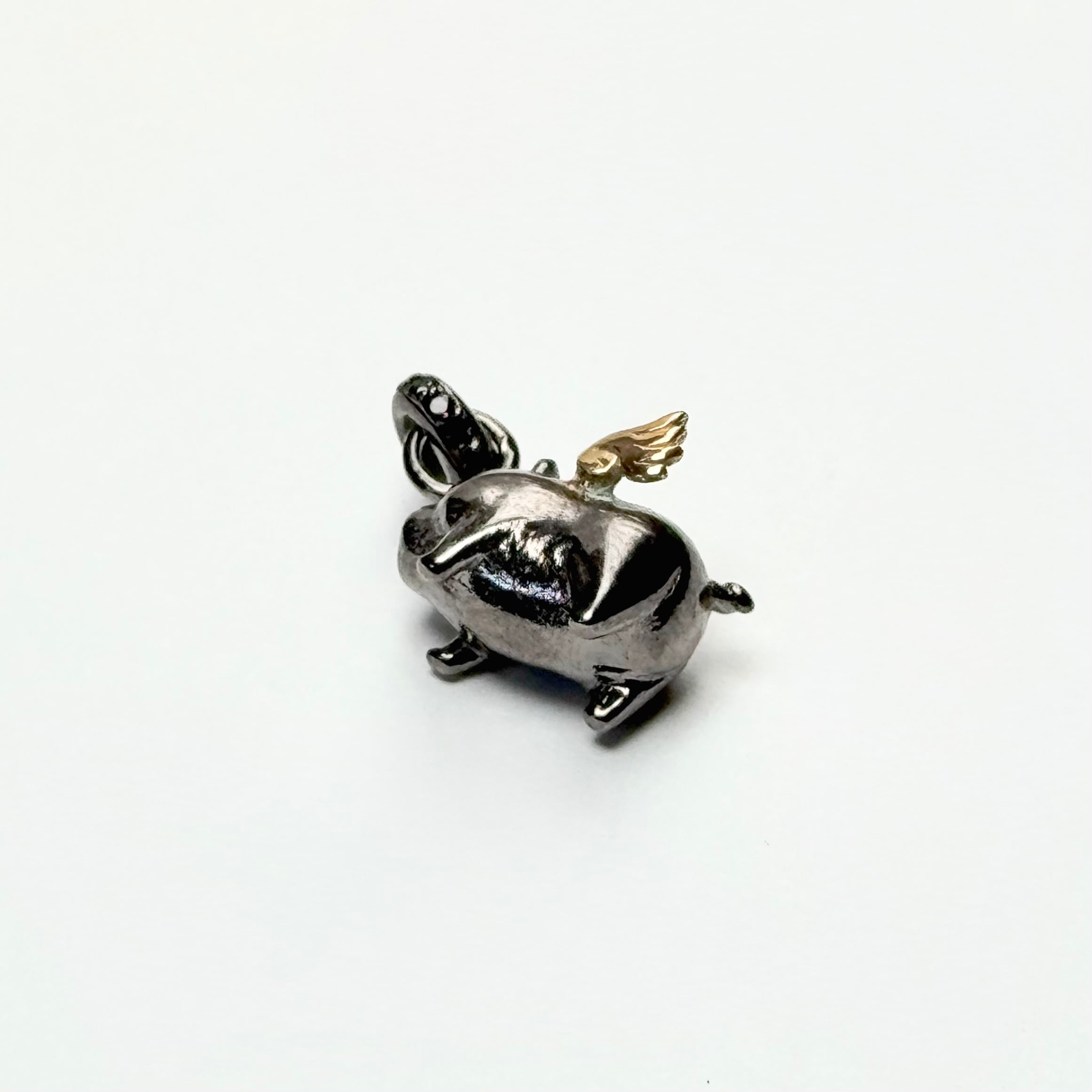 コロっとしたフォルムが非常に可愛らしい翼の生えた豚のペンダントトップ。