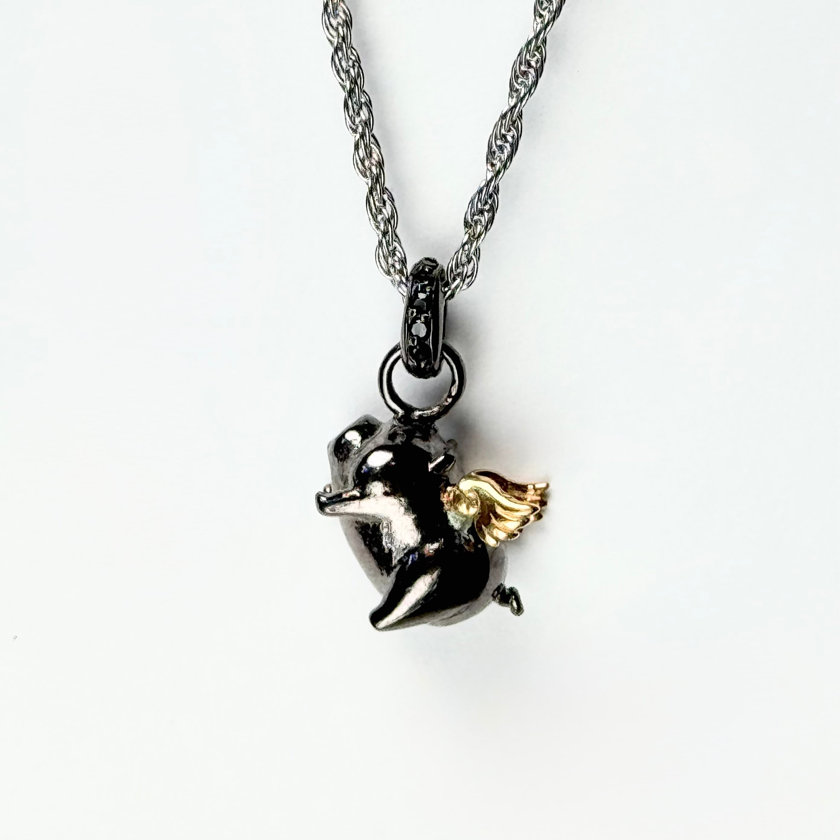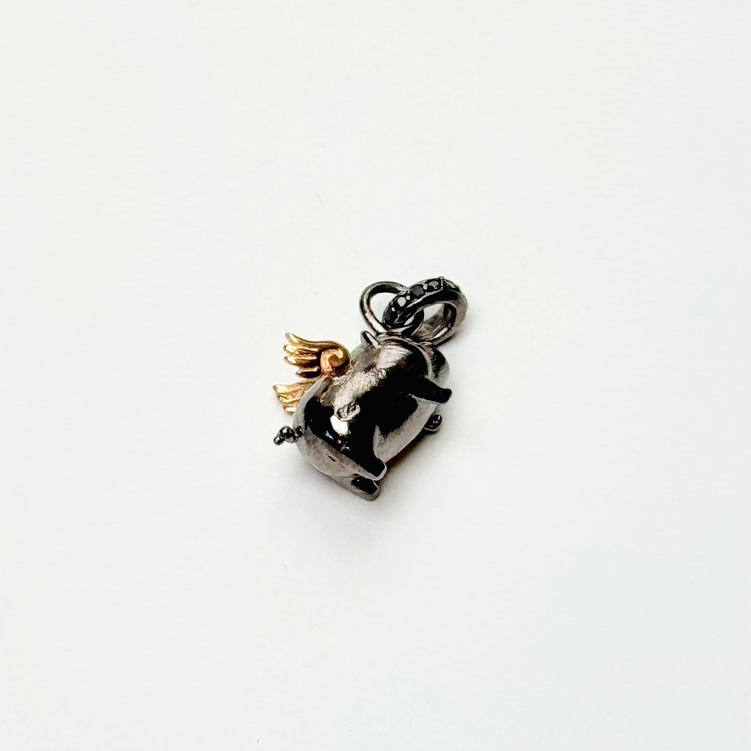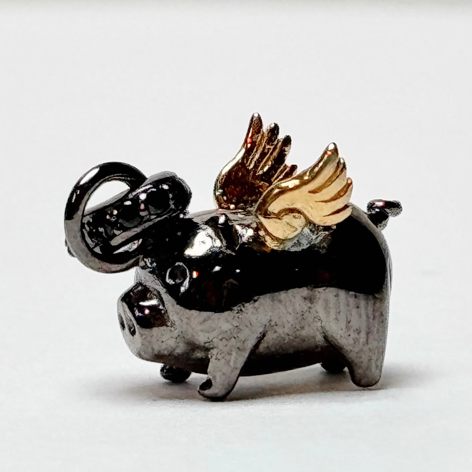 コロっとしたフォルムが非常に可愛らしい翼の生えた豚のペンダントトップ。