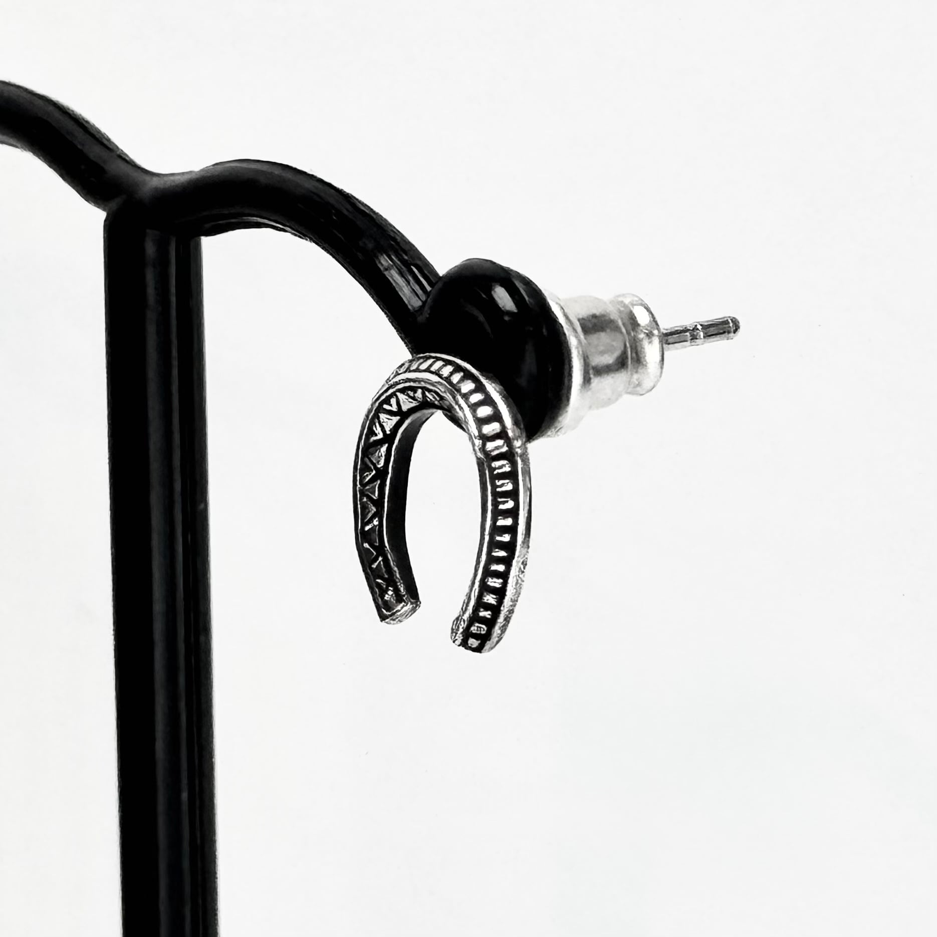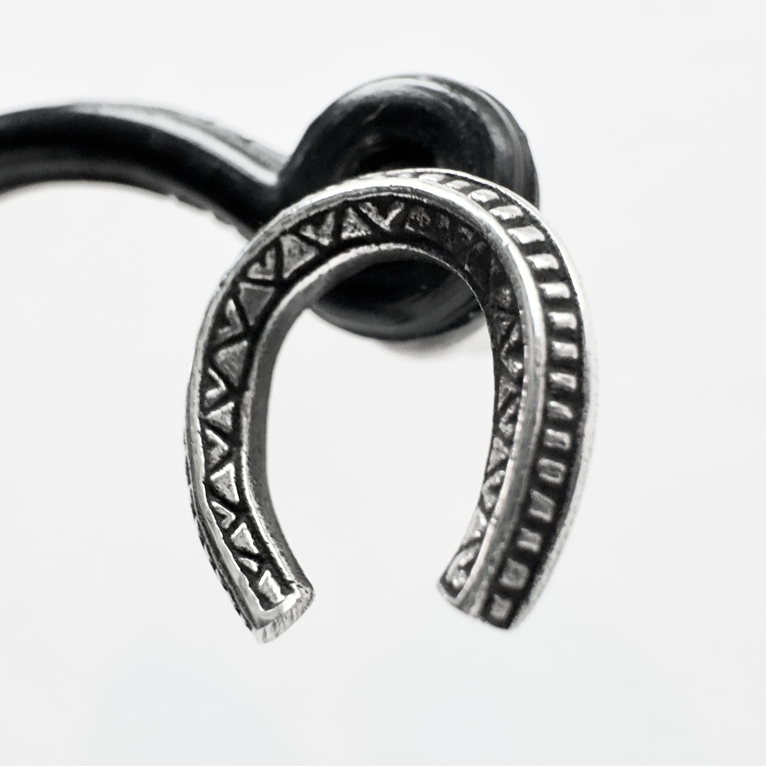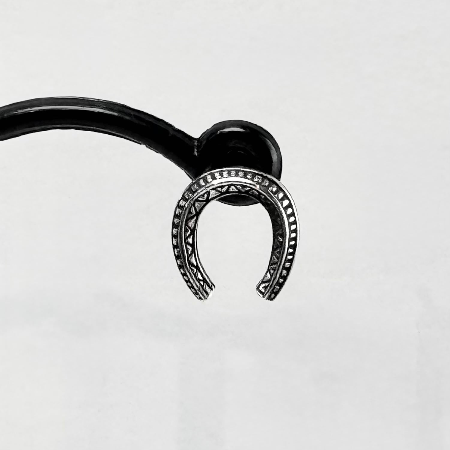 トライバルなデザインが施されたホースシューピアス。