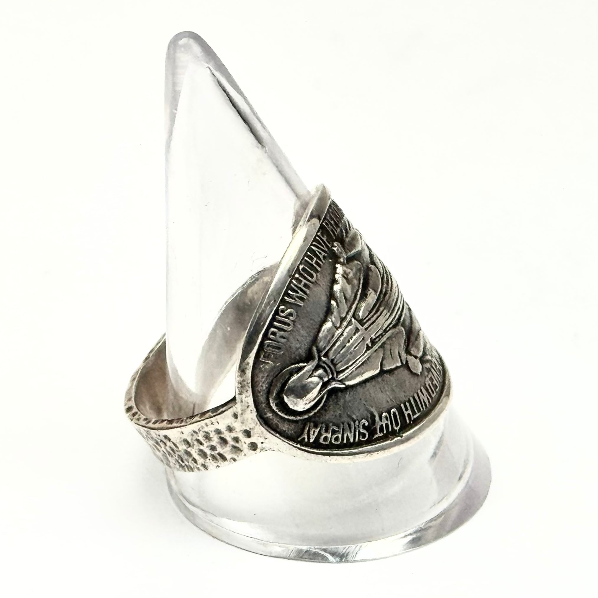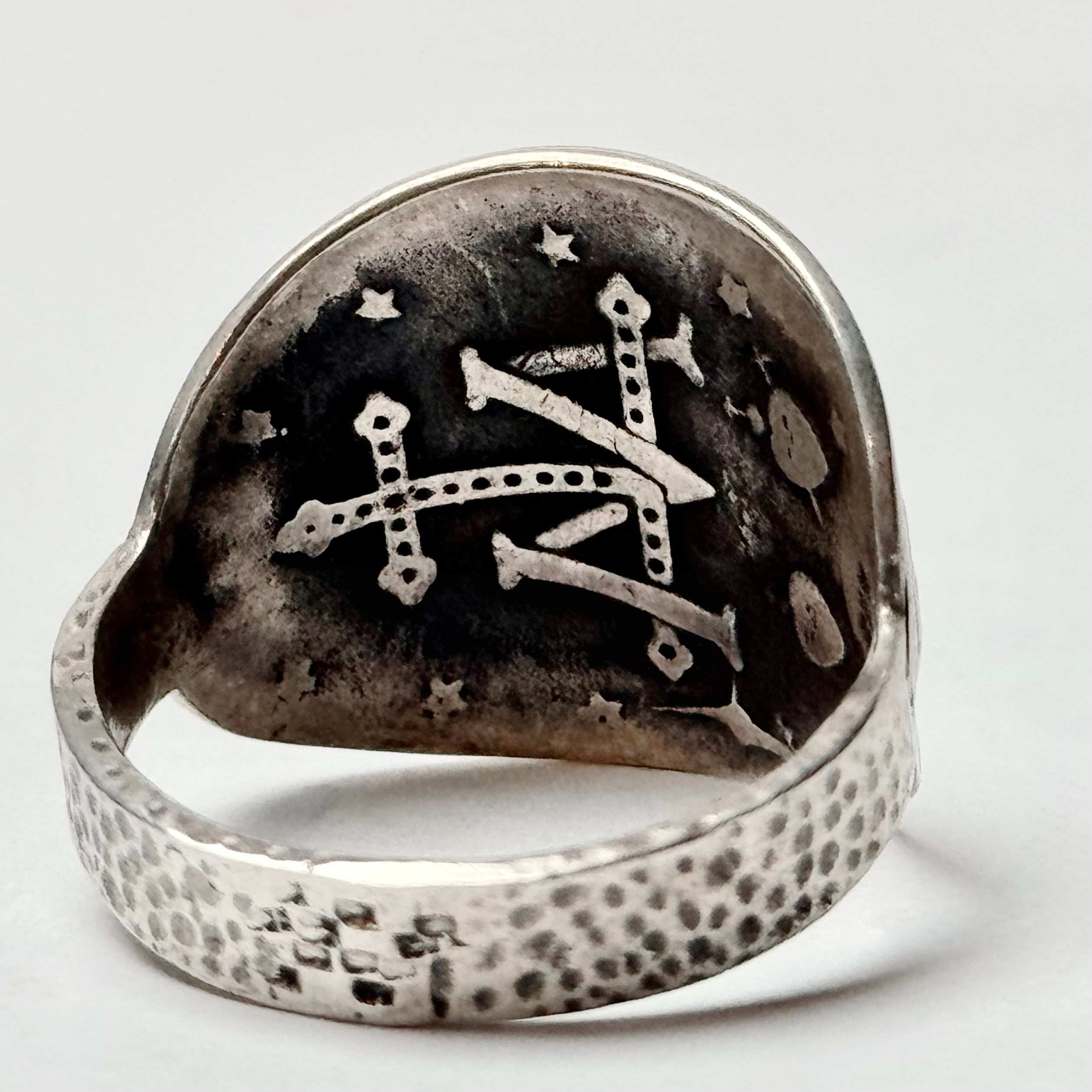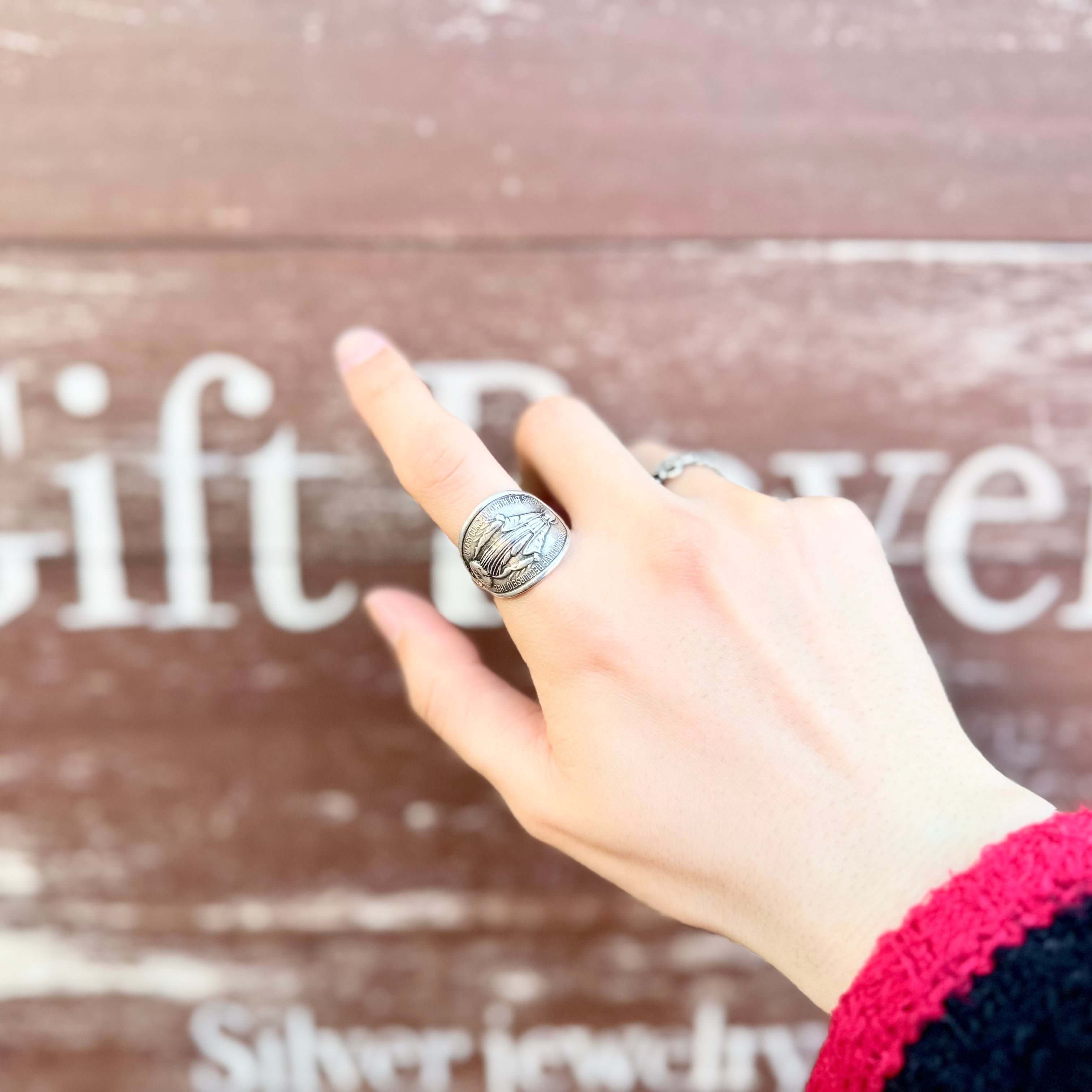 マリアをメインにヴィンテージ感漂うデザインのコインリング。