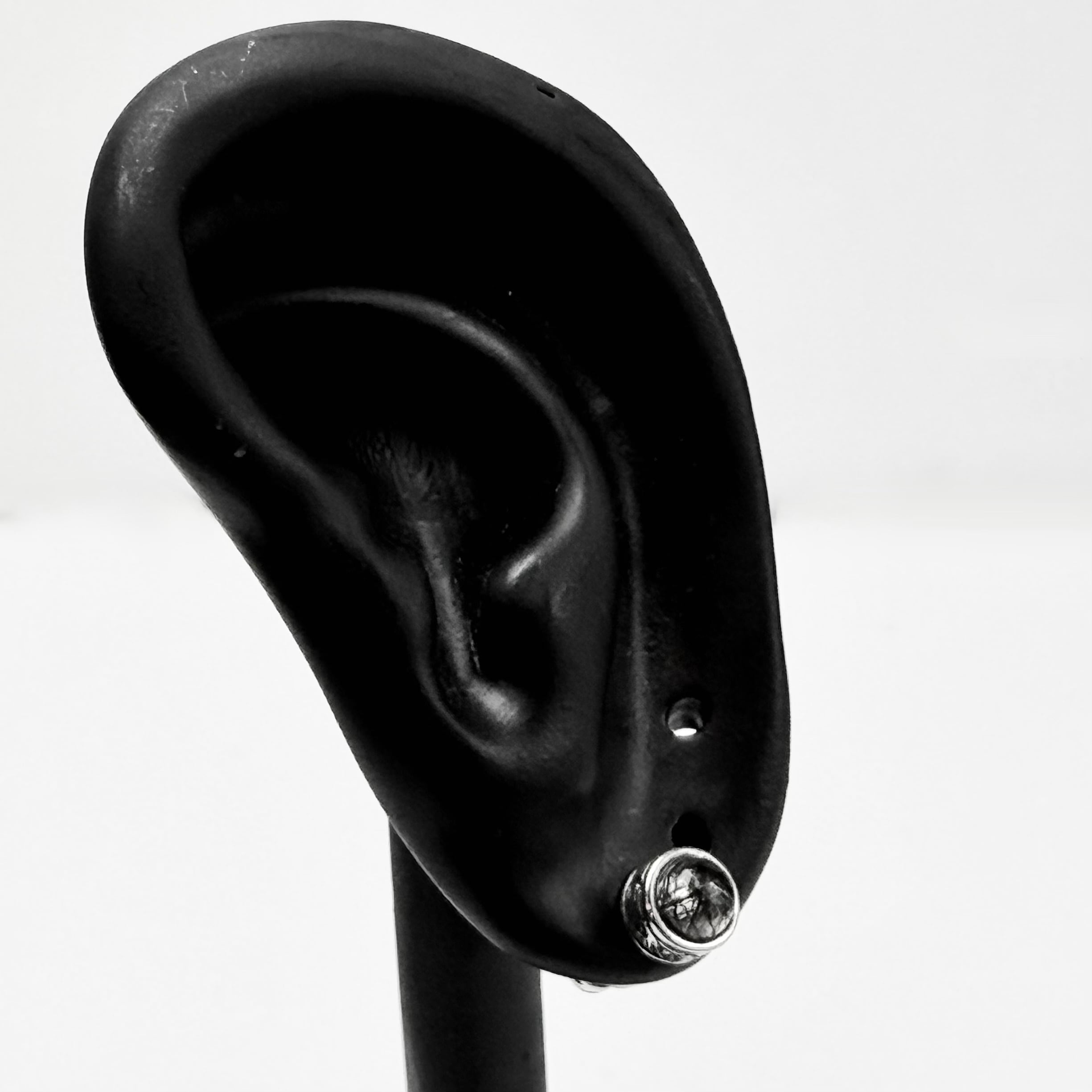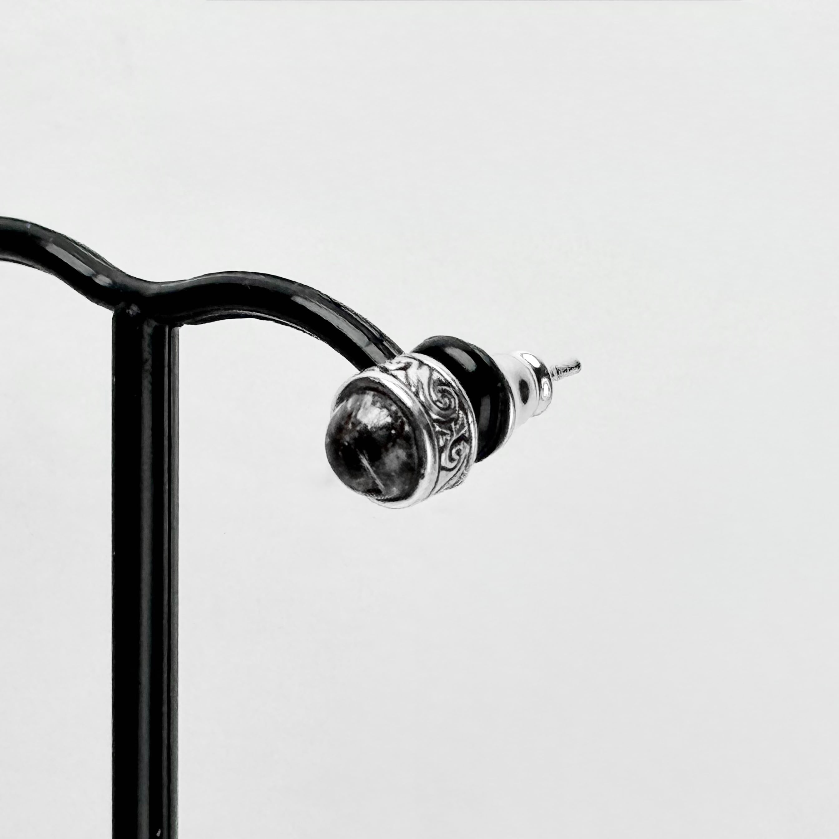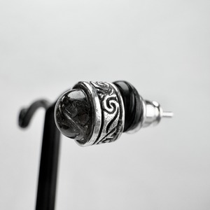 透明な石の中に黒い繊維が詰め込まれているような表情が特徴的なブラックルチルクォーツのピアス。