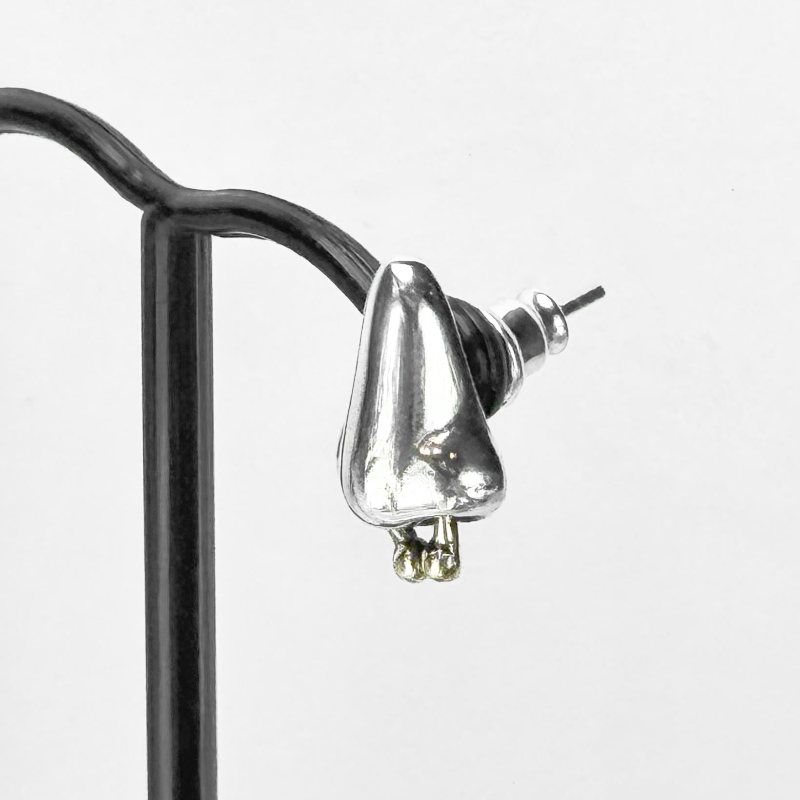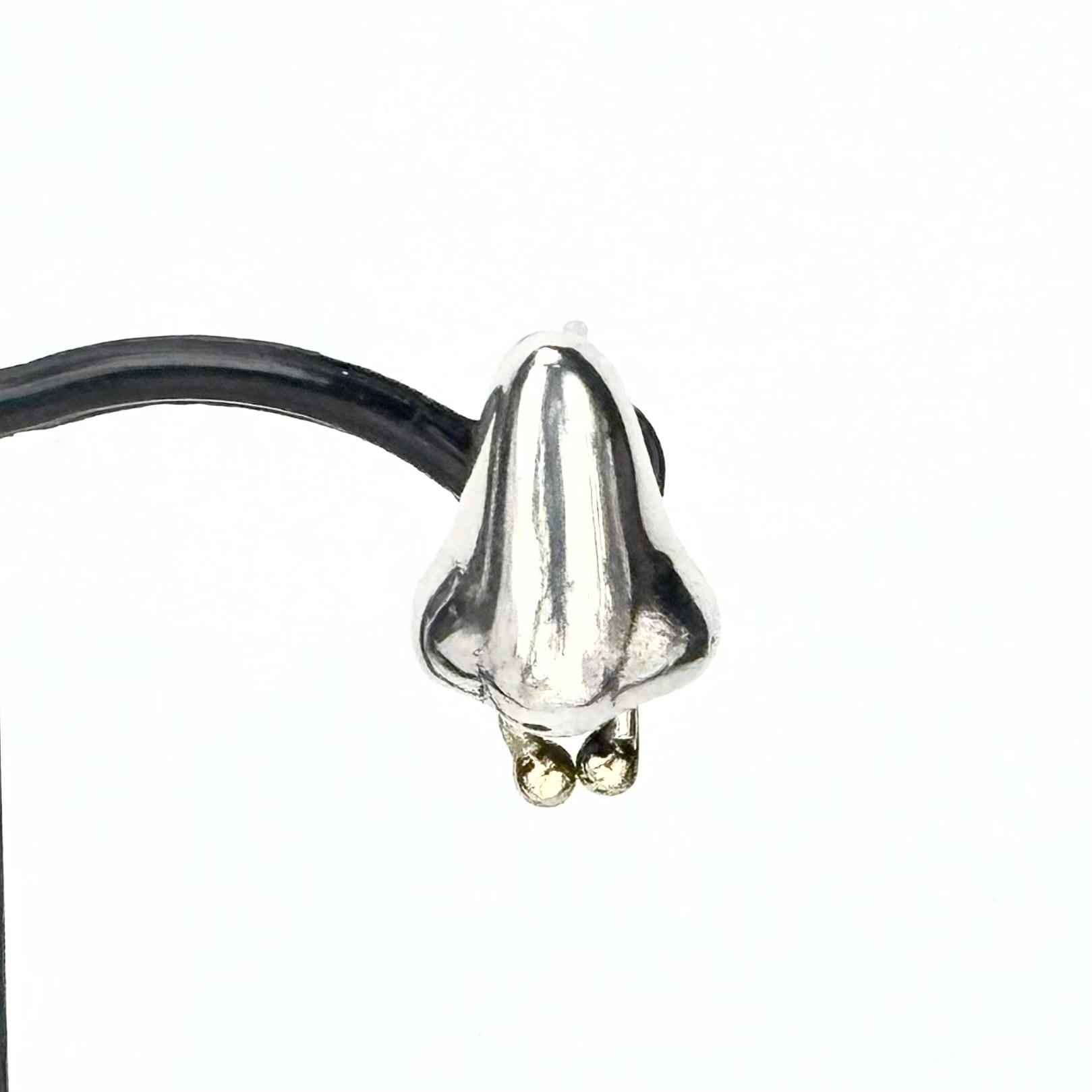 セプタムを着けている大きめの鼻をモチーフとしたユニークでファンキーなピアス。