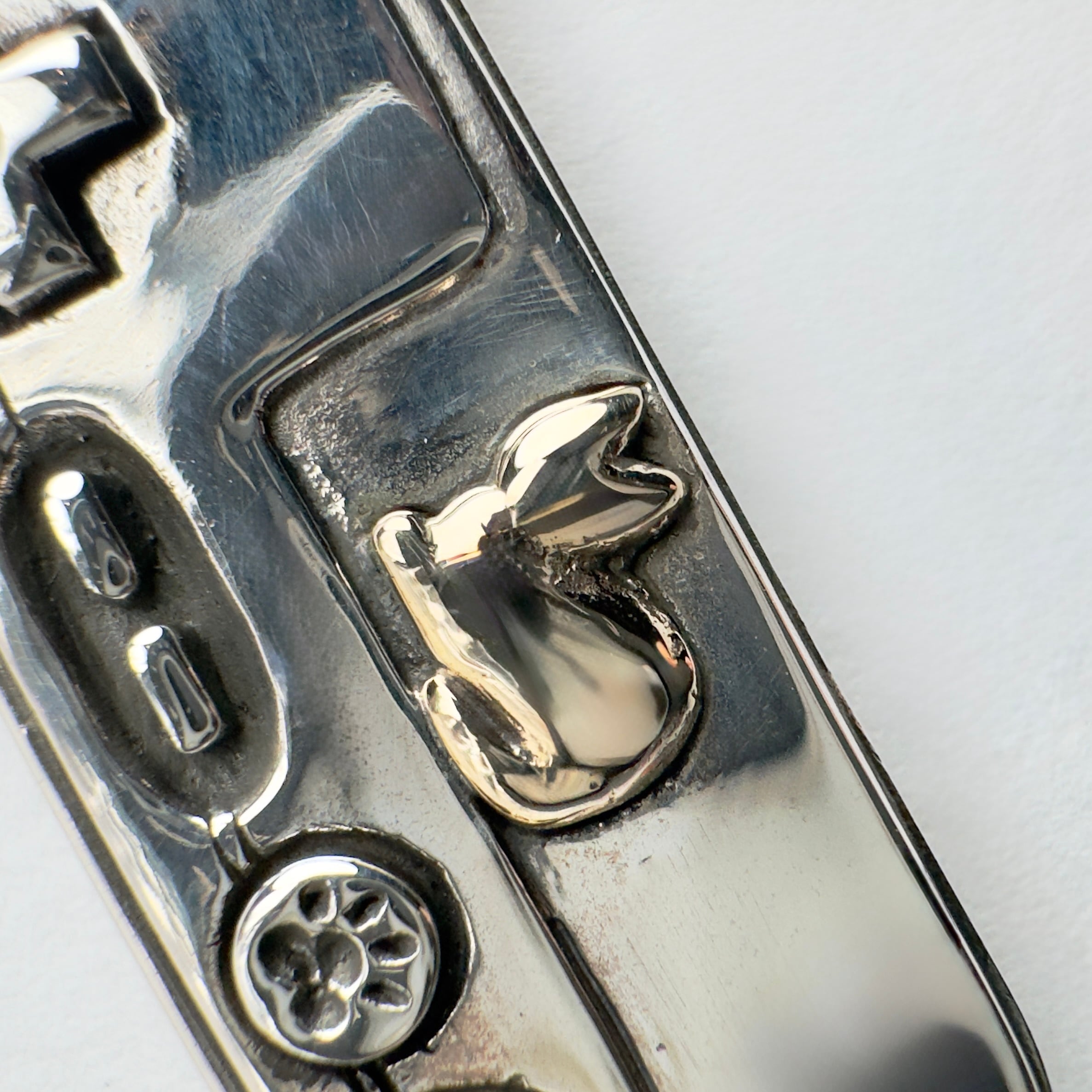 中央に猫が寝そべったデザイン、ボタンに肉球のデザインがされており非常に可愛らしい仕上がりになっております。