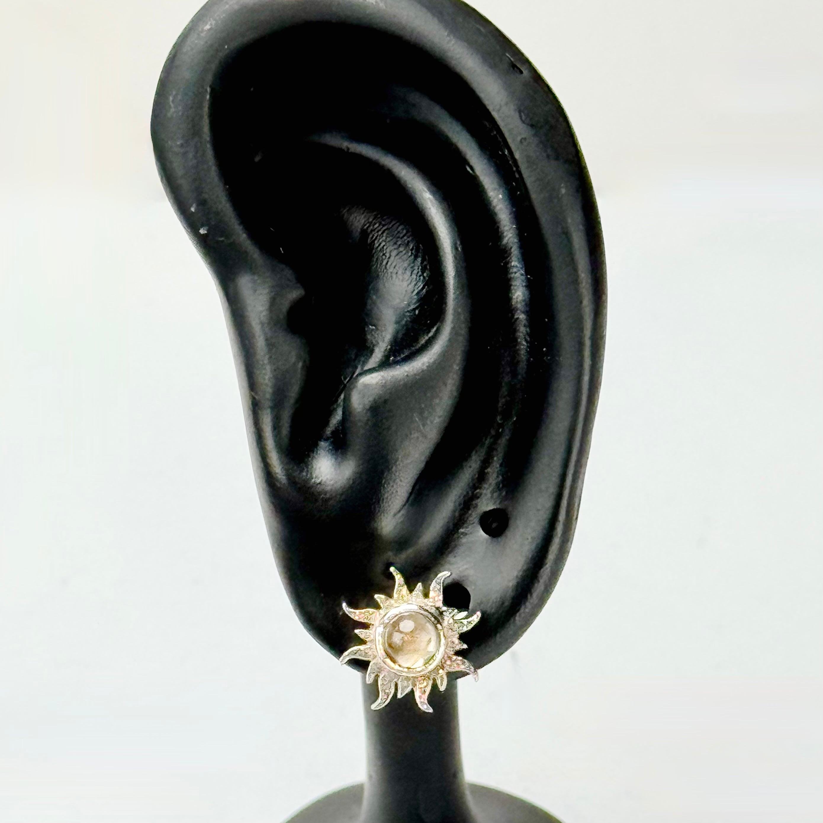 ゴールドチルがあしらわれた太陽がモチーフのピアス。