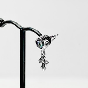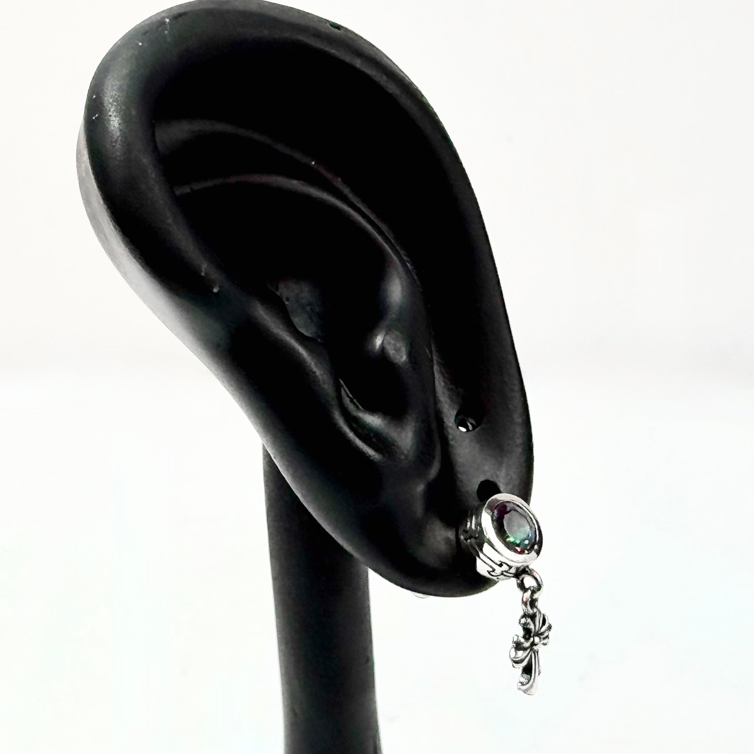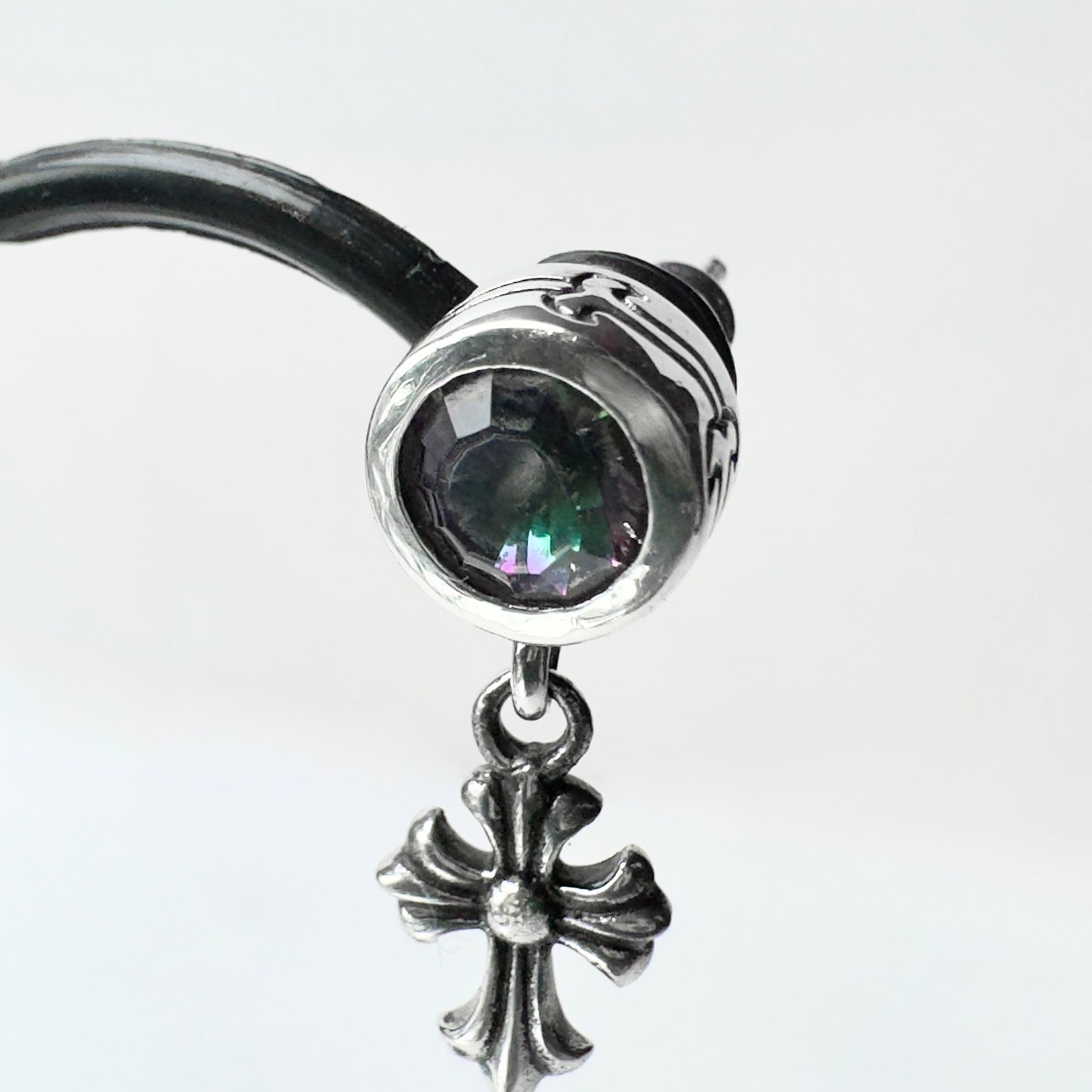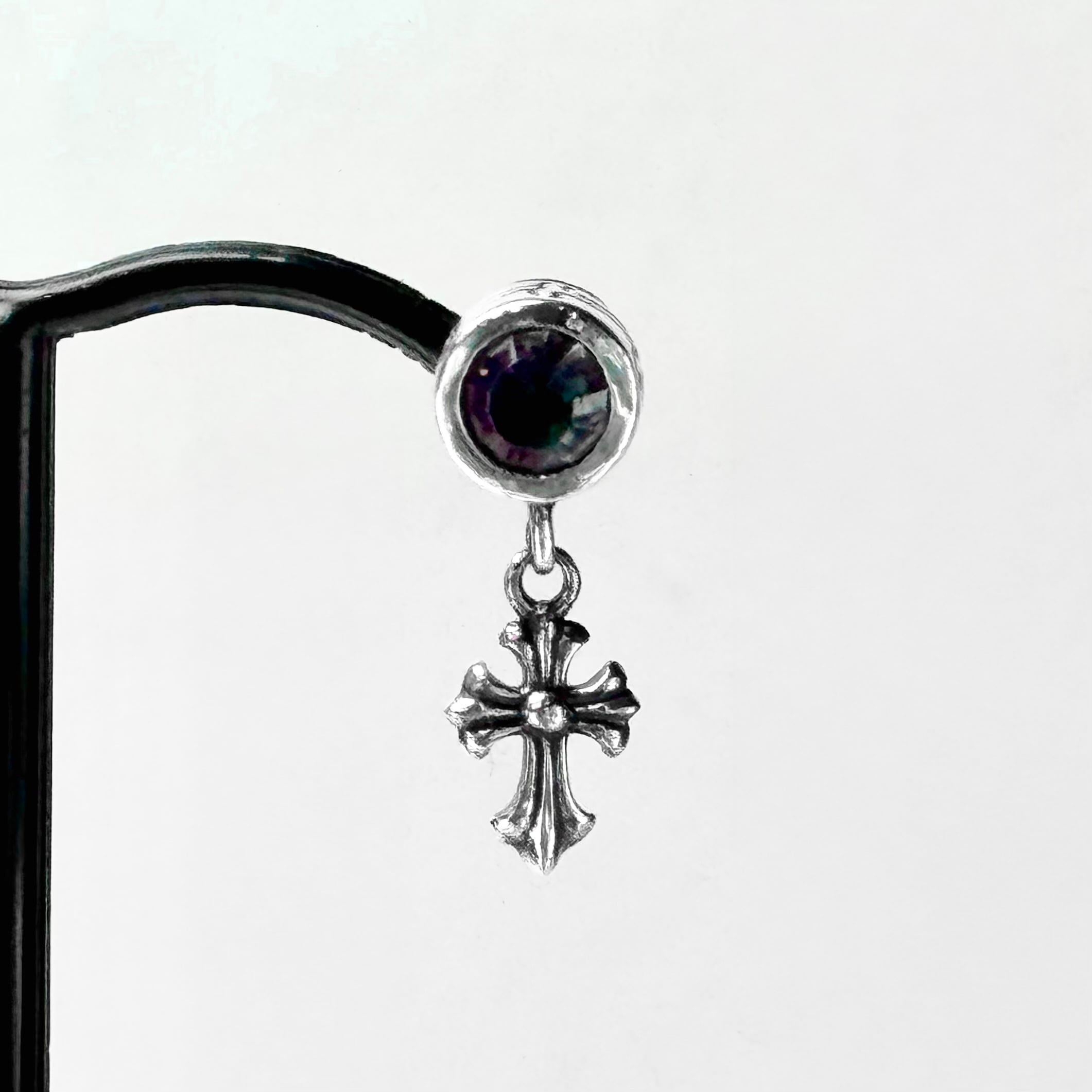 王道のゴシッククロスをモチーフにミスティッククォーツをあしらったピアス。