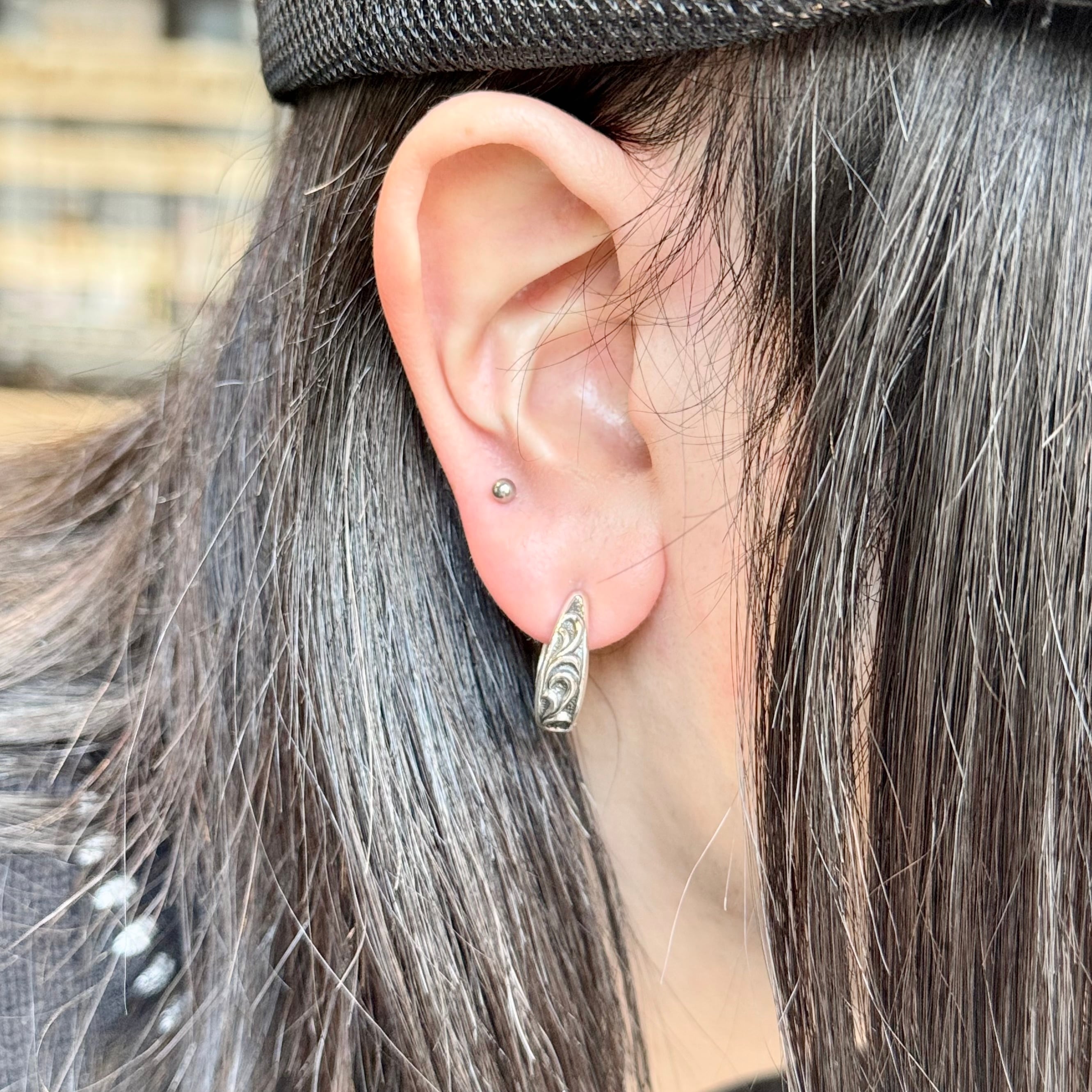 しっかりとした厚みがあるのでぱっと見ピアスに見えるのはもちろん、挟む部分が平らで丸い加工がされているので長時間着用していても痛くなりにくく、ストレスの感じない一品となっております。