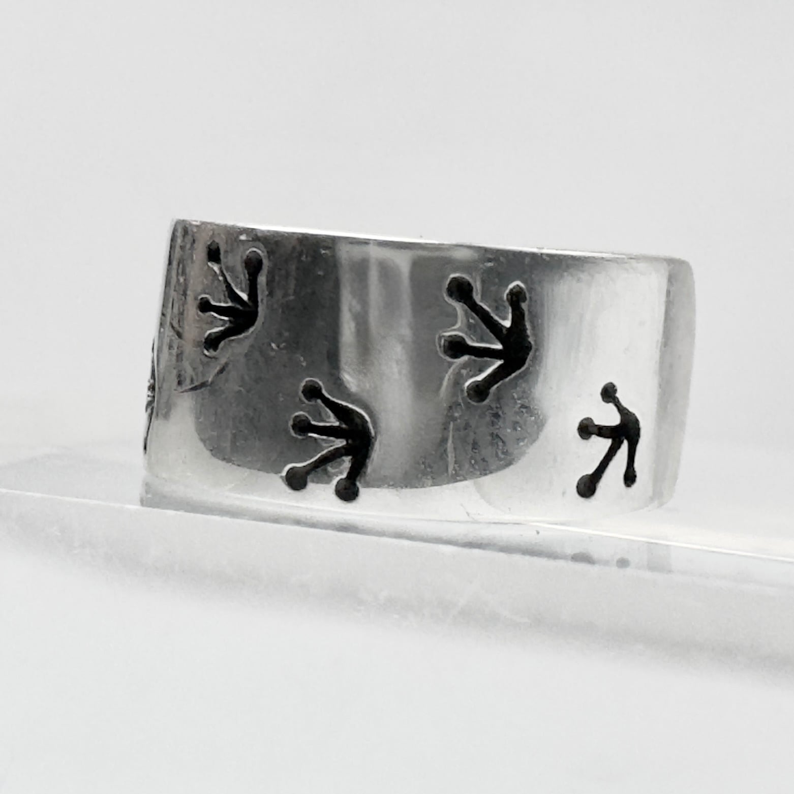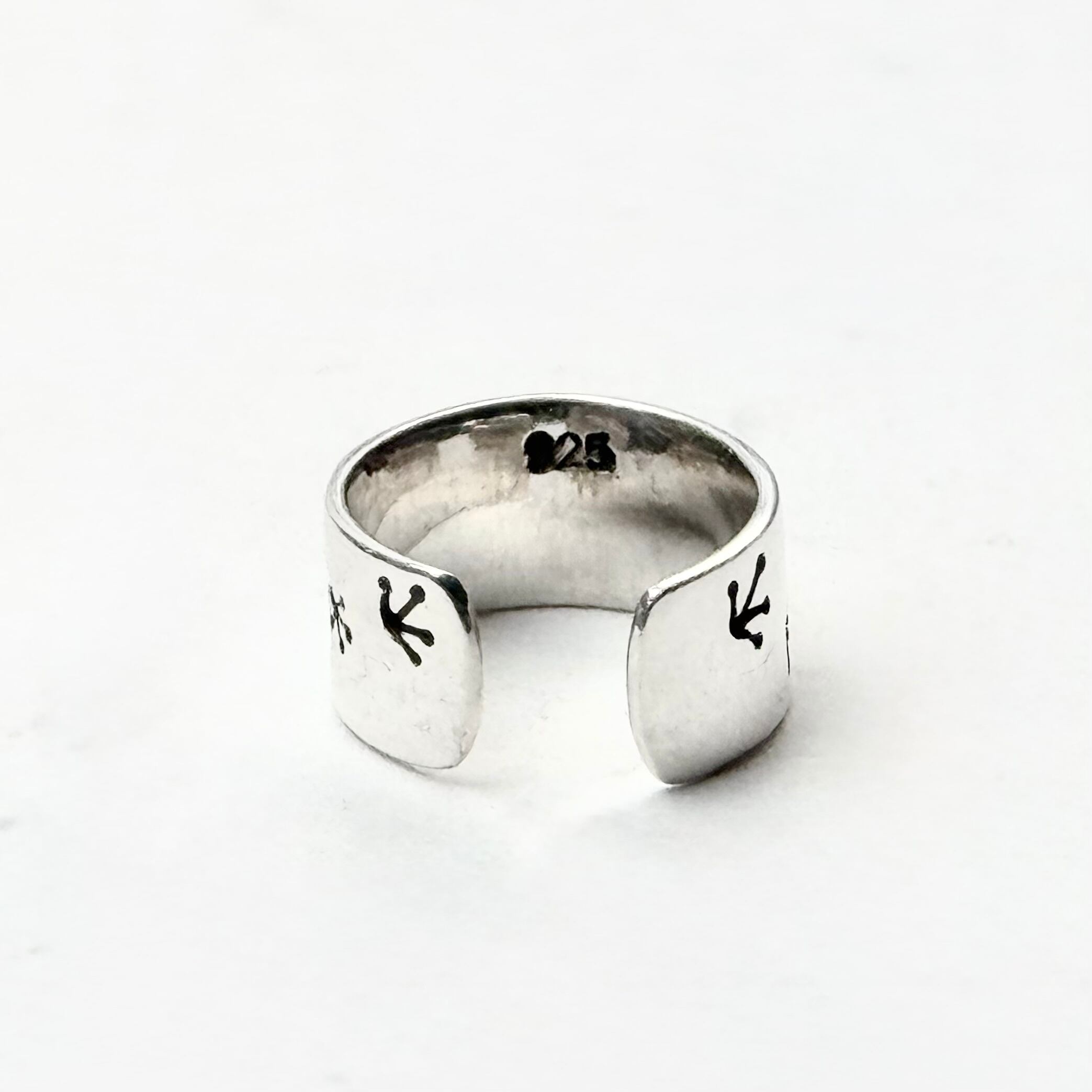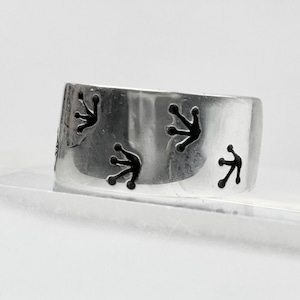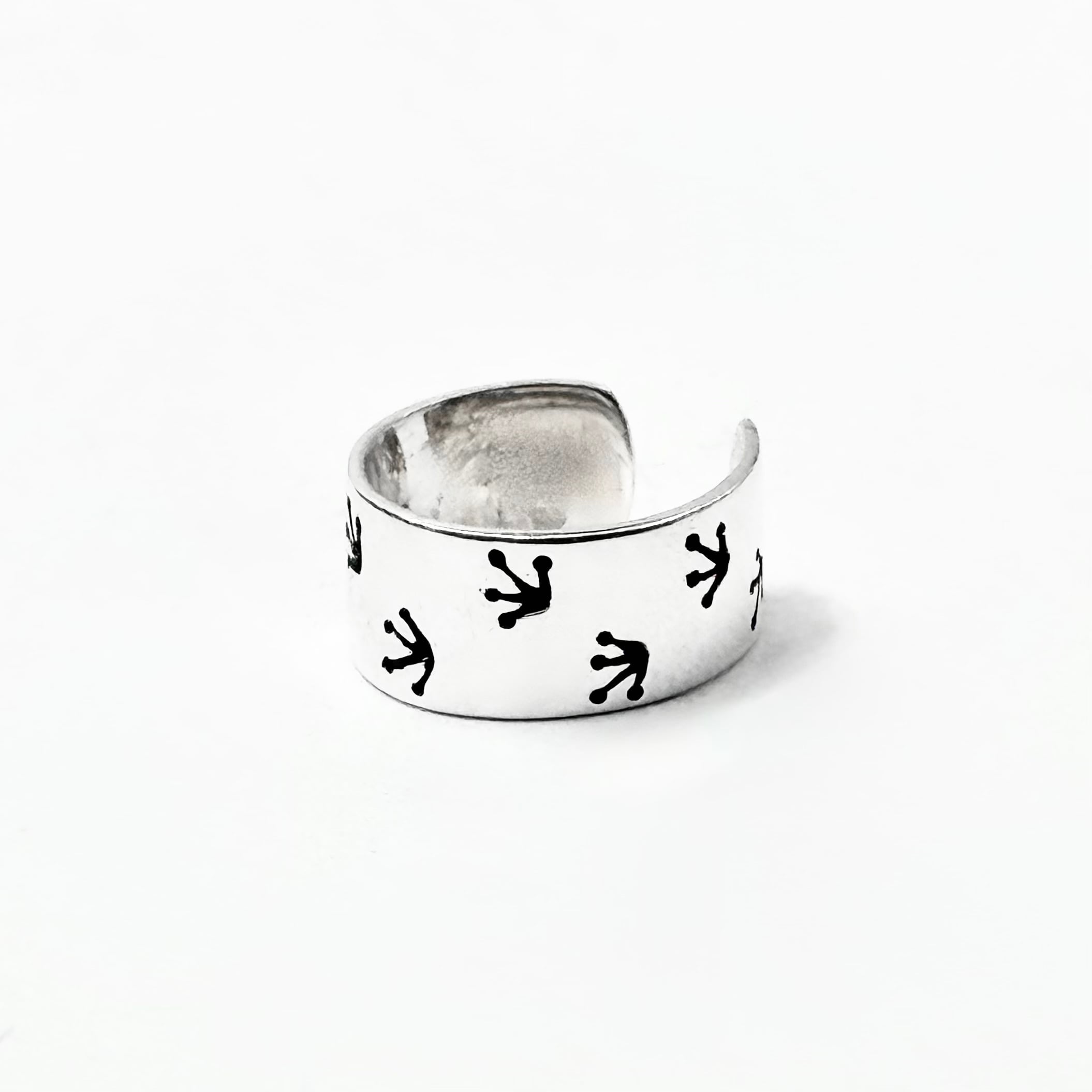 カエルとカエルの足跡がデザインされた可愛らしいイヤーカフ。