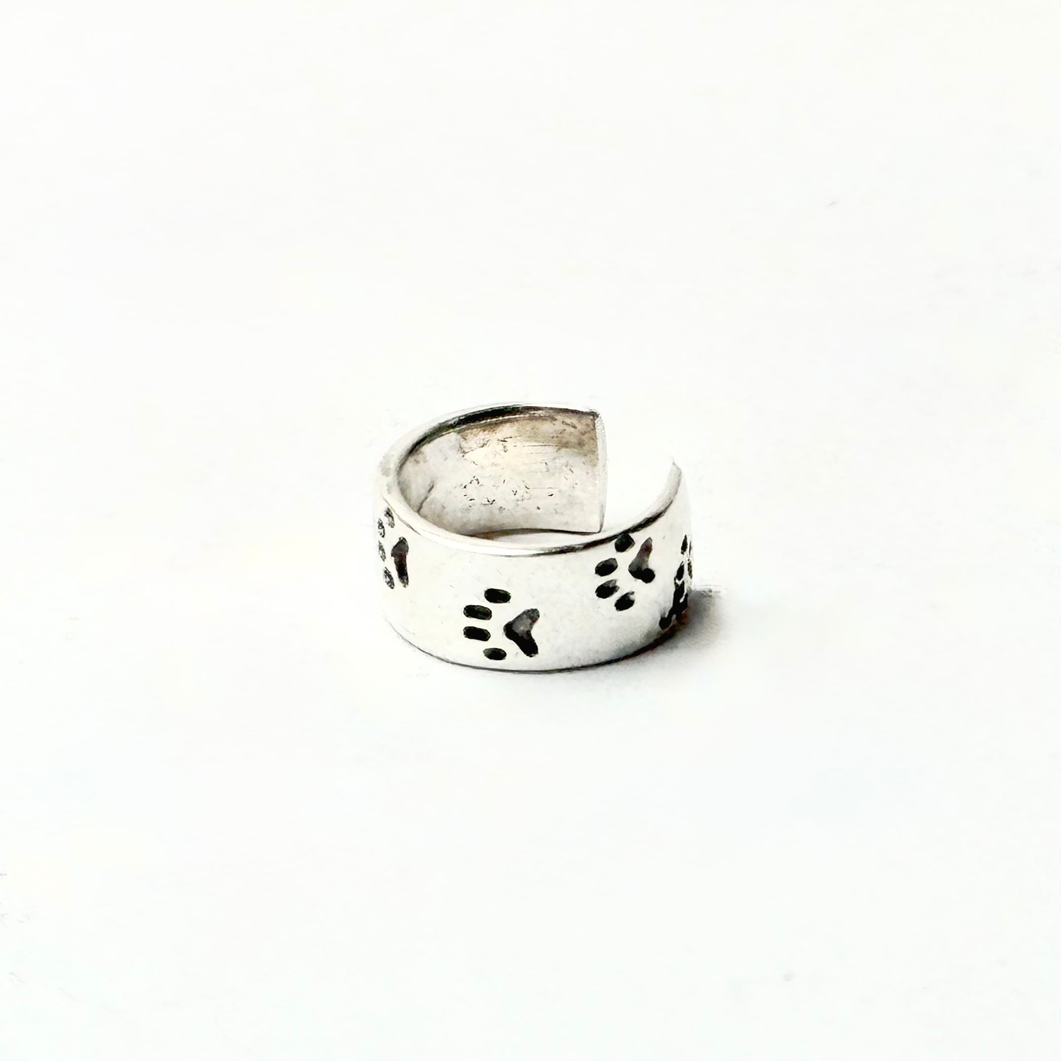 犬の足跡が全体にデザインされたイヤーカフ。