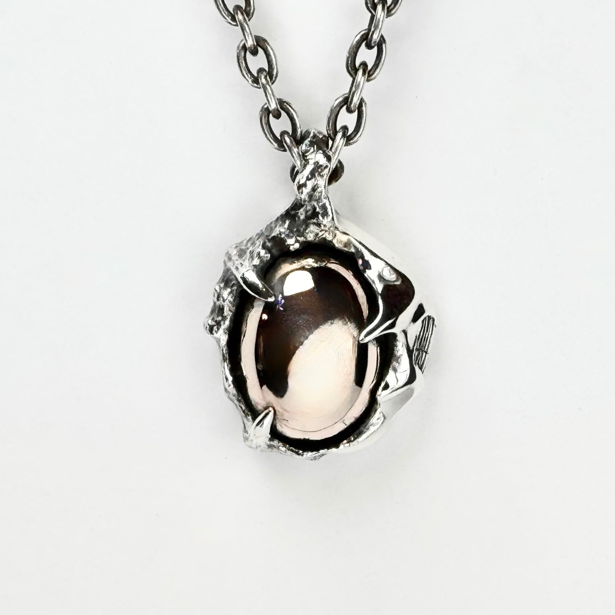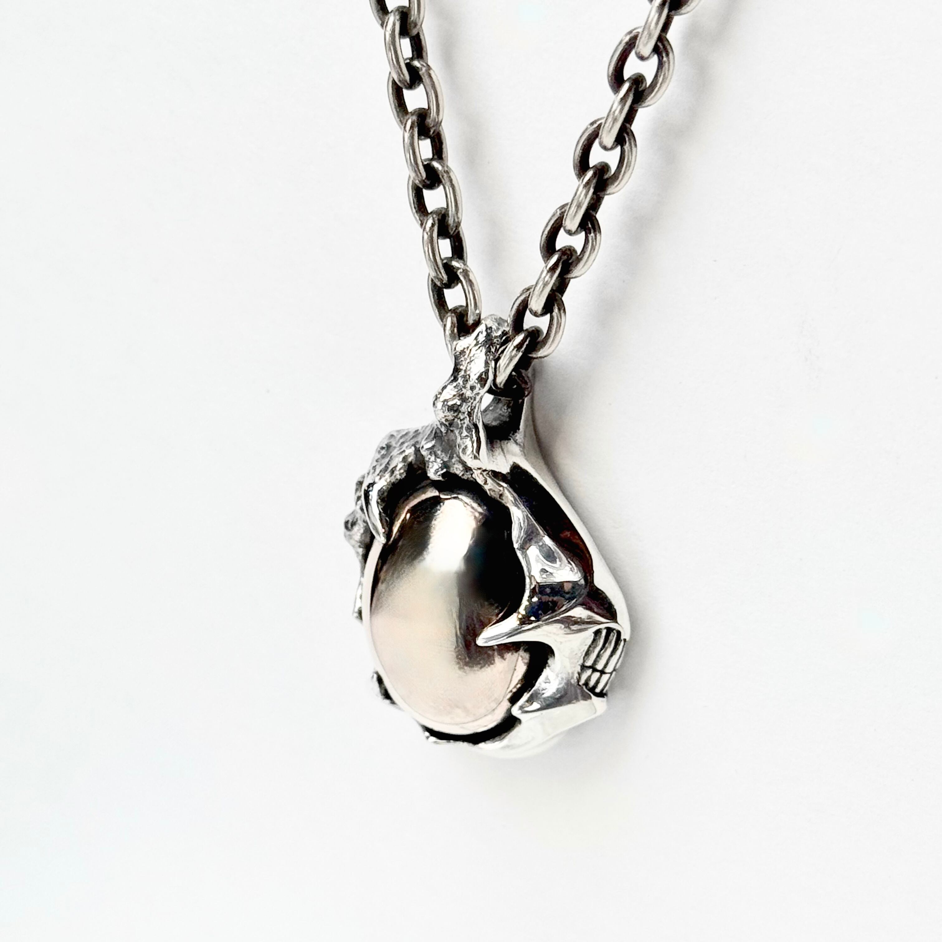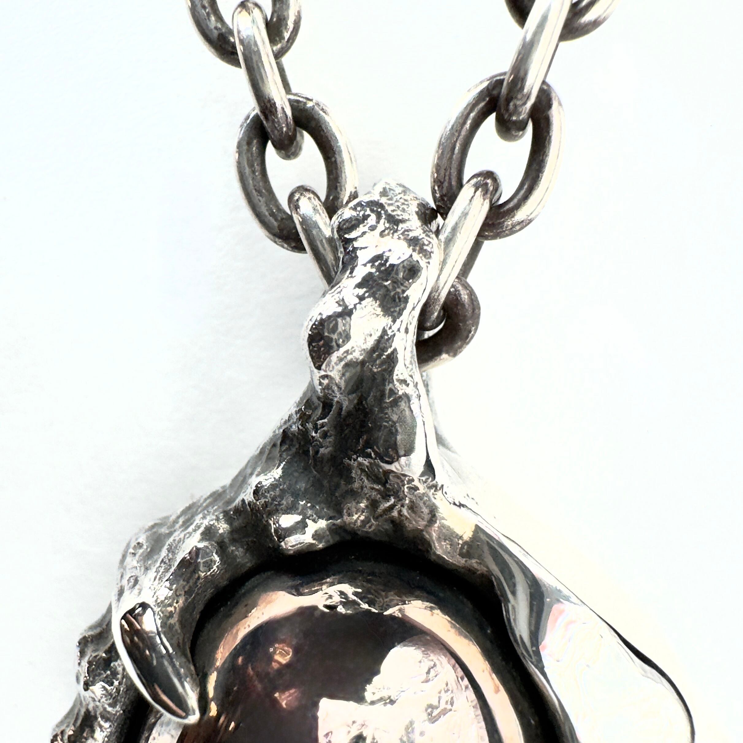 異形の生物とそこに浮き出ているスカルを描いたペンダント。
