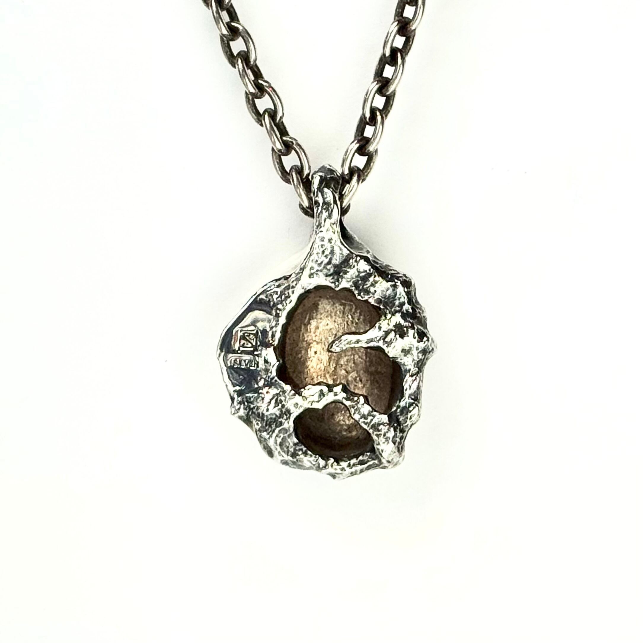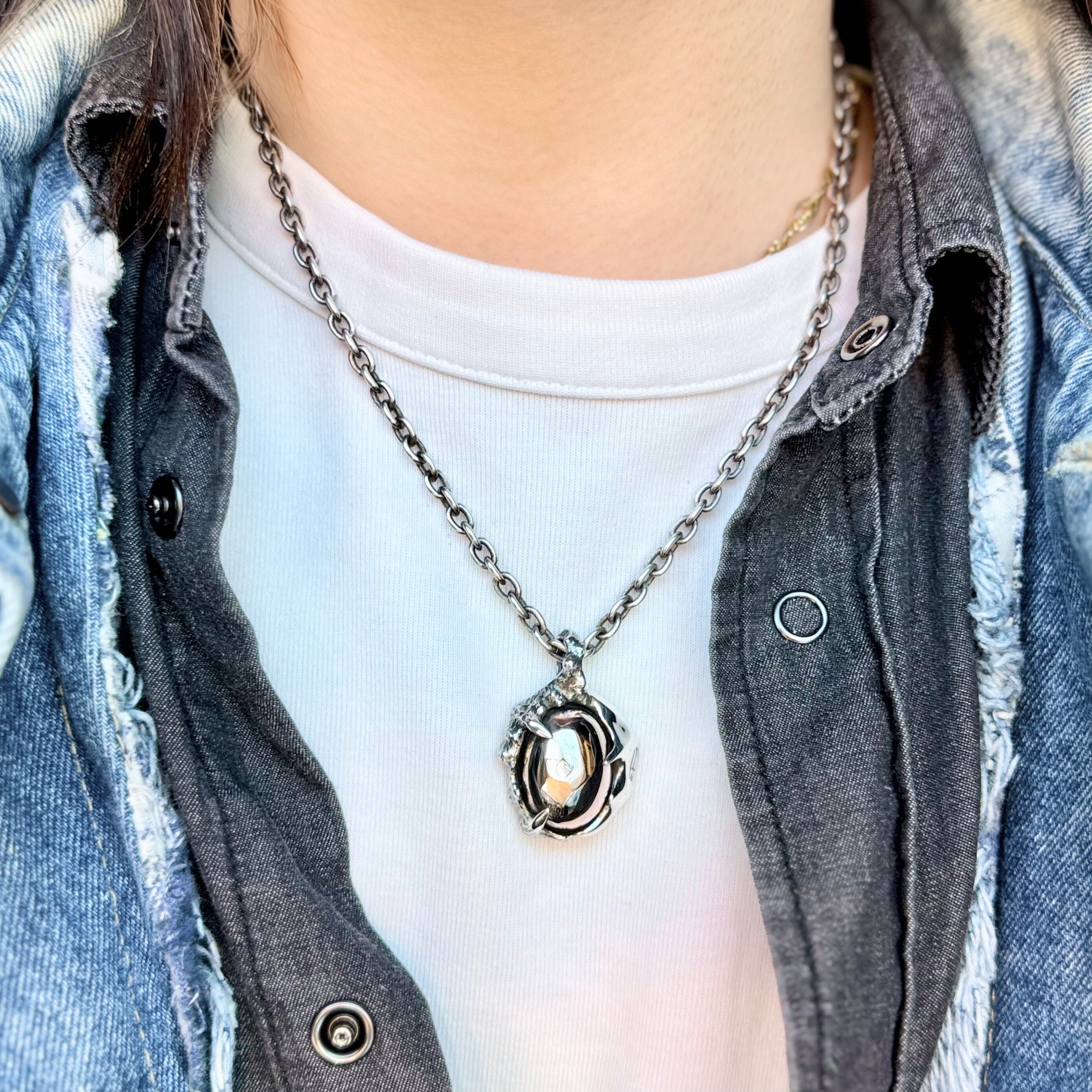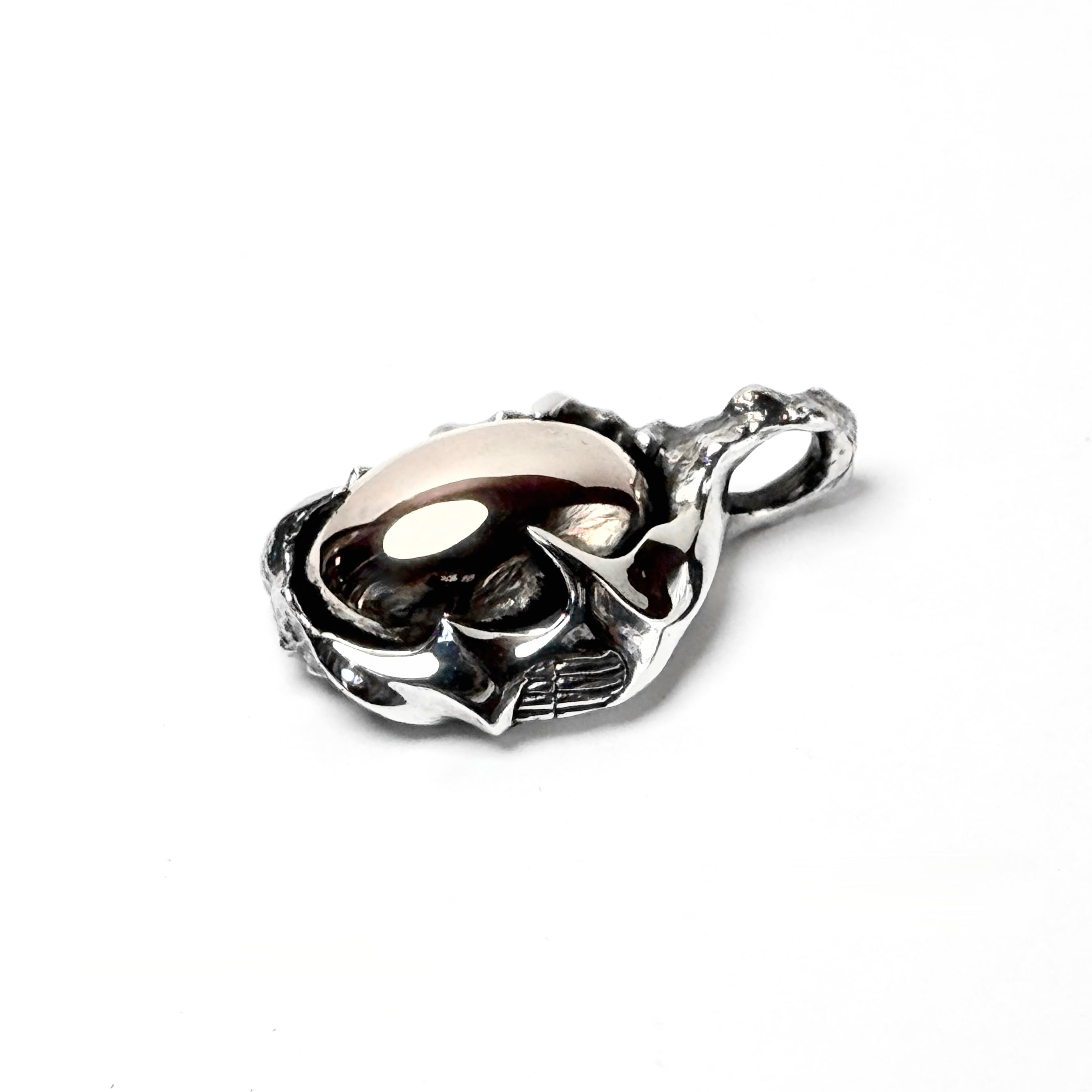 異形の生物とそこに浮き出ているスカルを描いたペンダント。