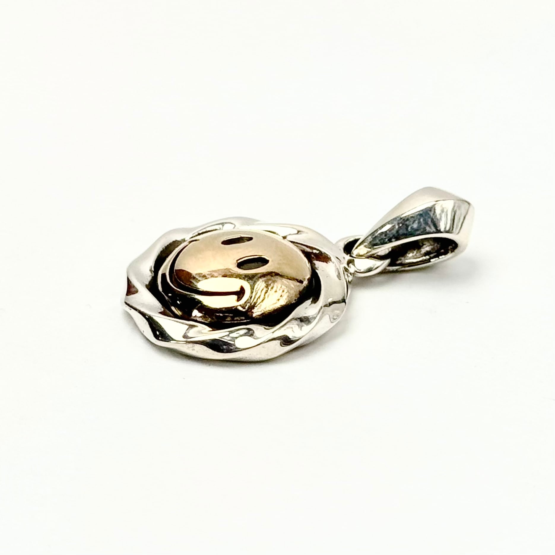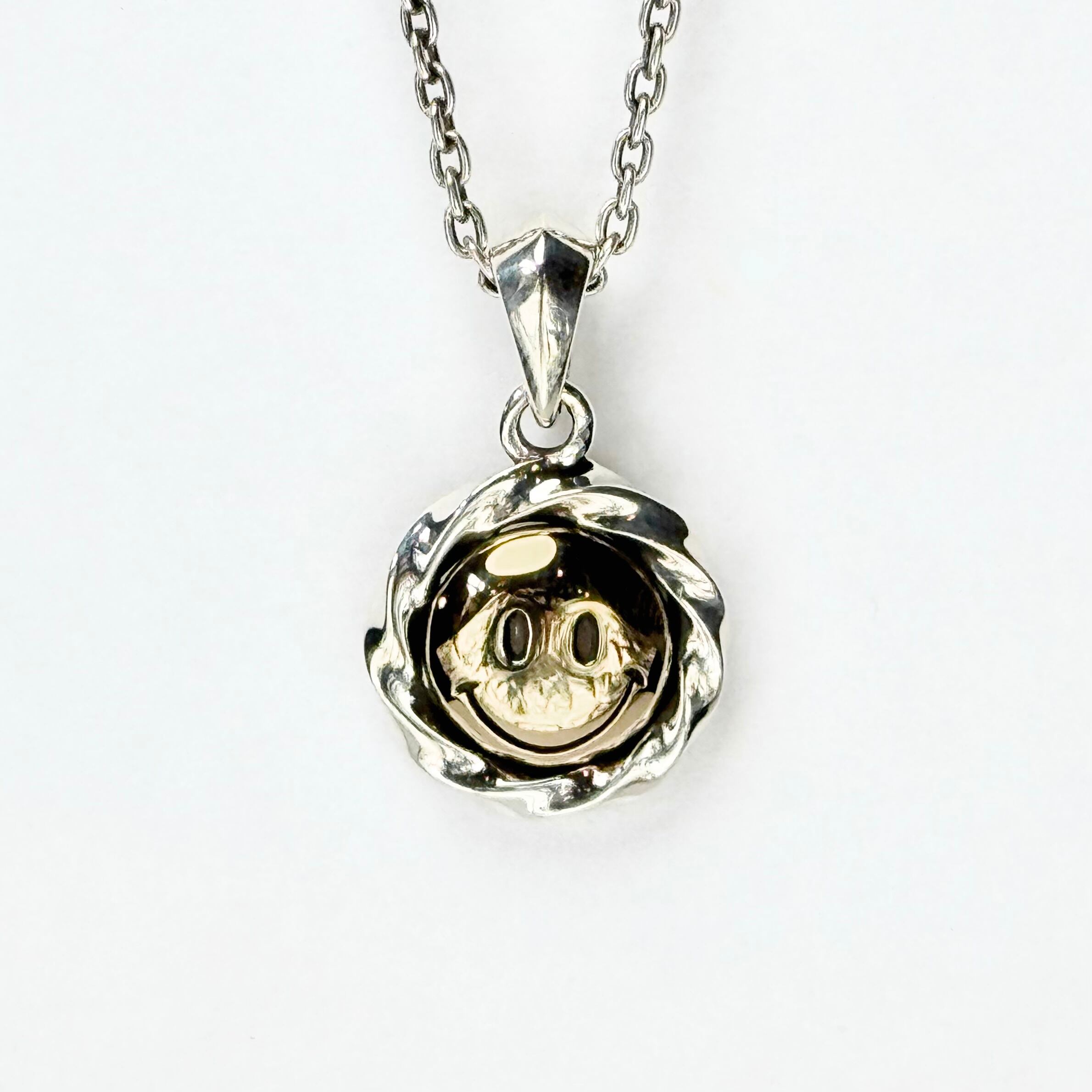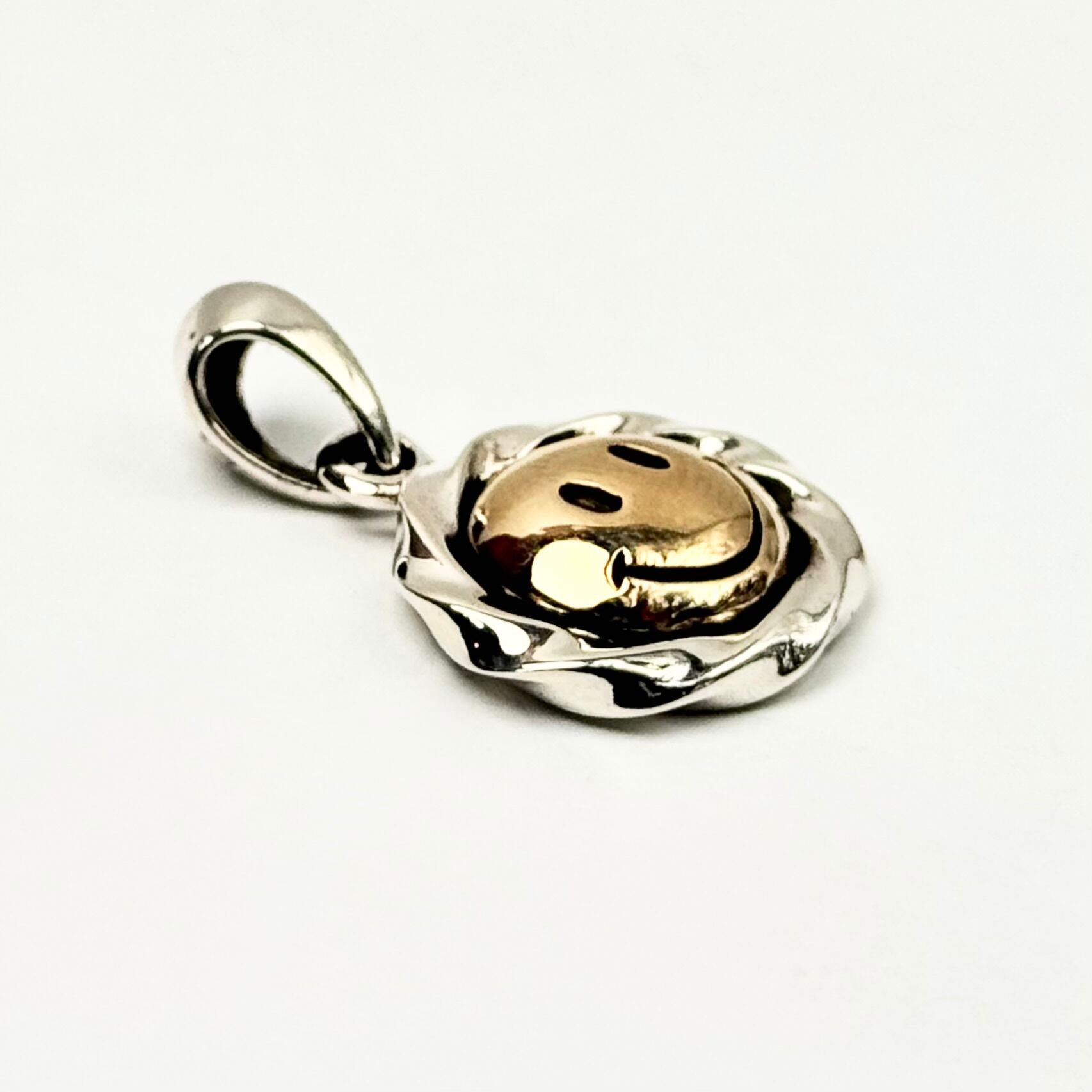 ツイスト形状のコインフレームにスマイルマークをデザインしたトップ。