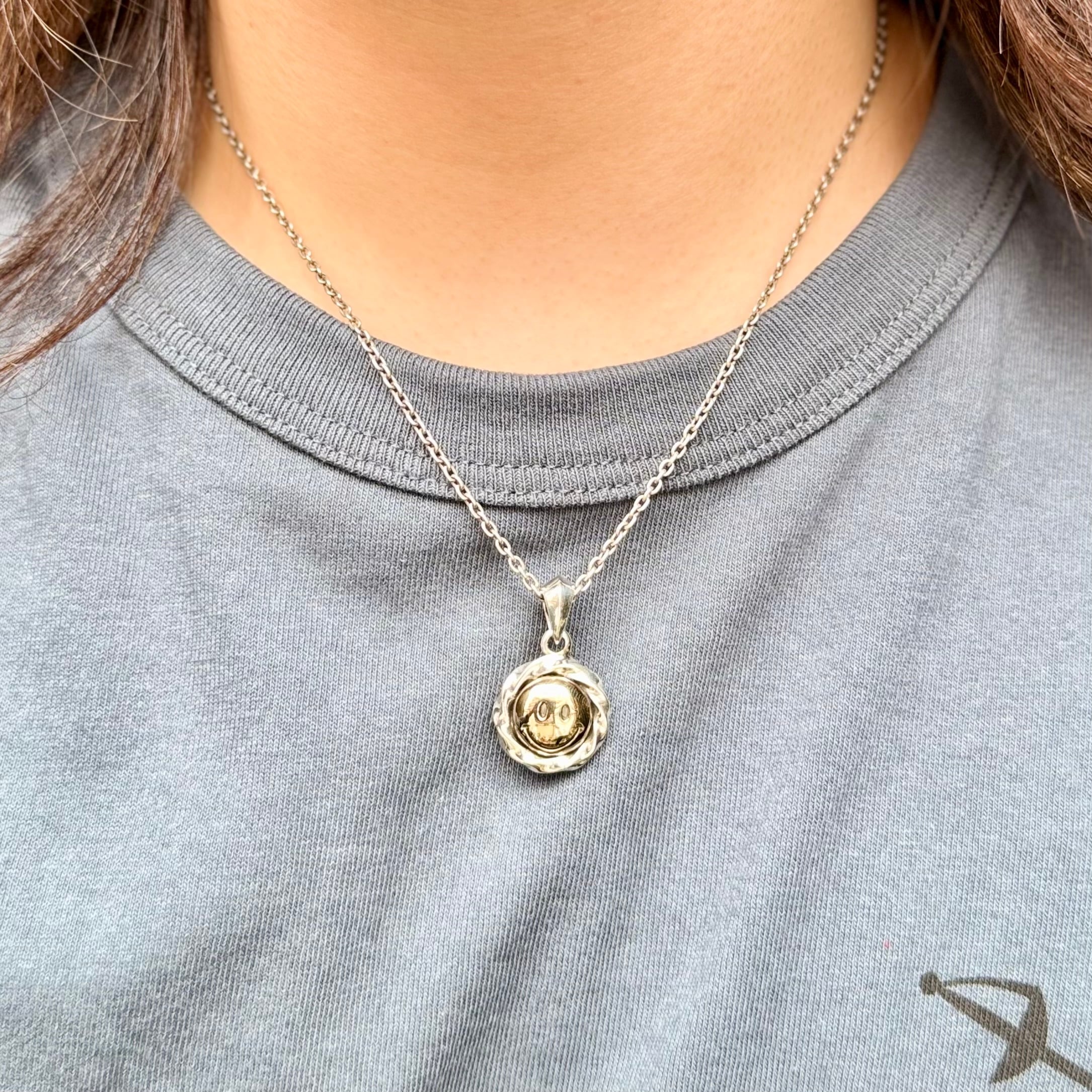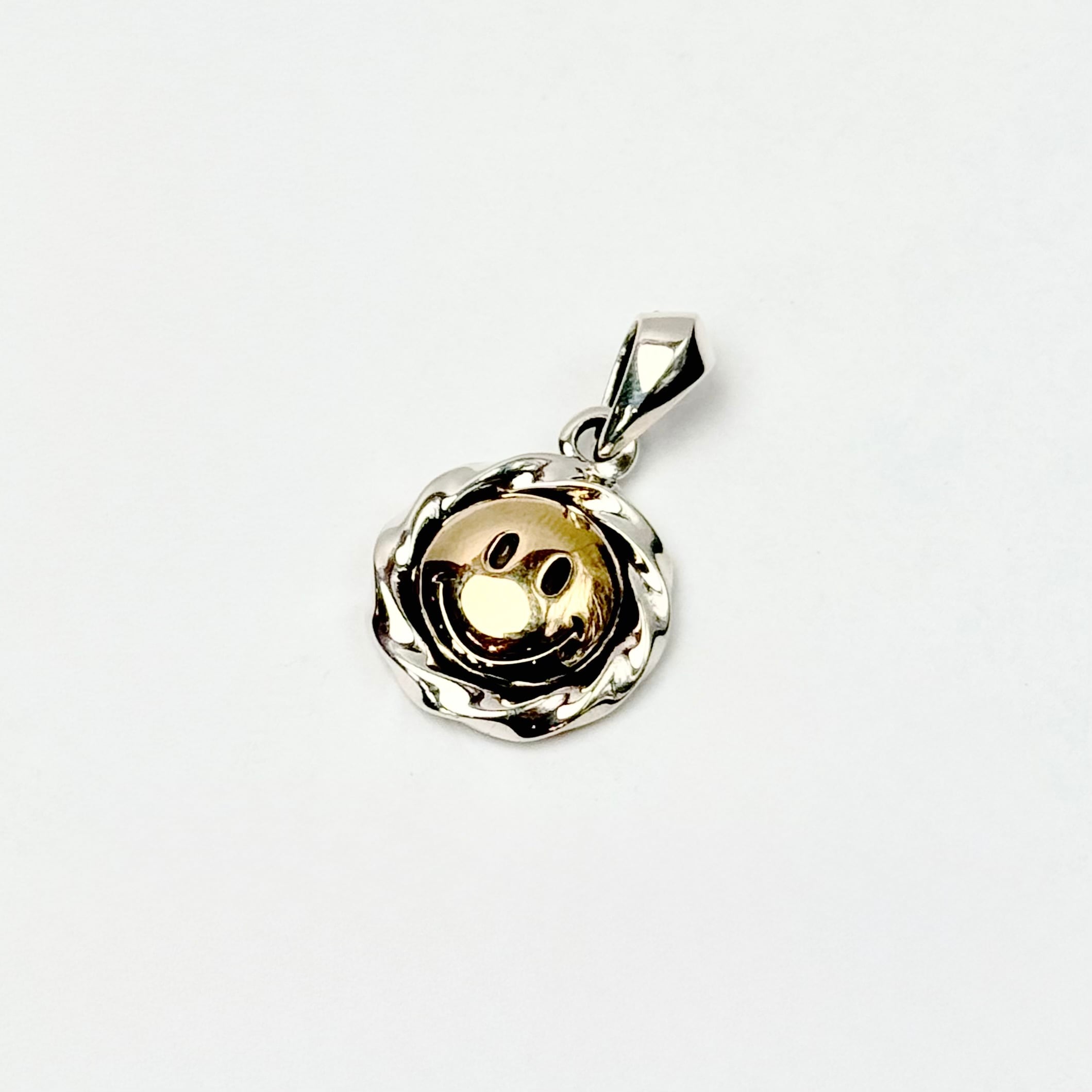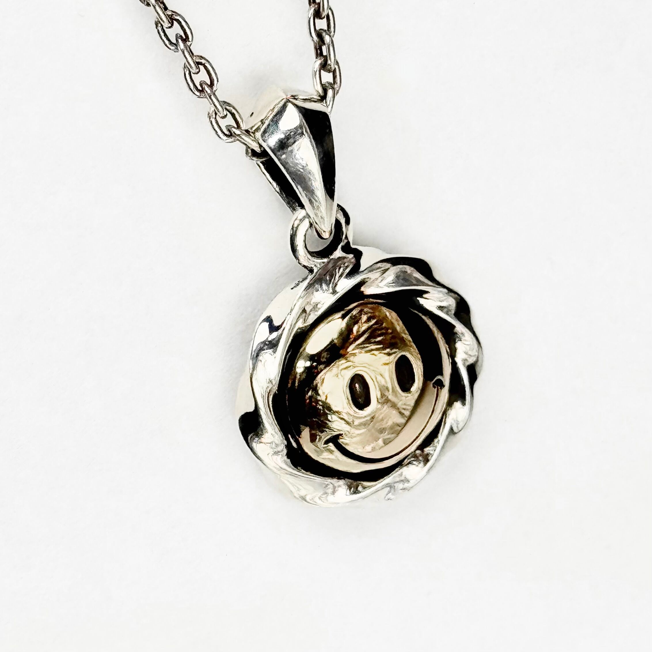 ツイスト形状のコインフレームにスマイルマークをデザインしたトップ。